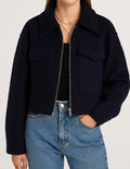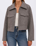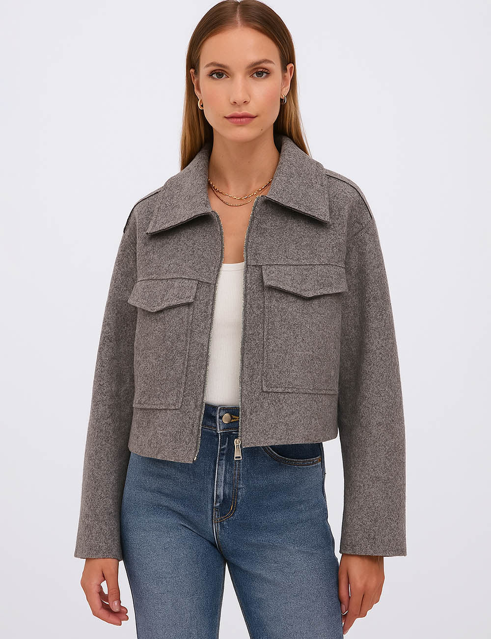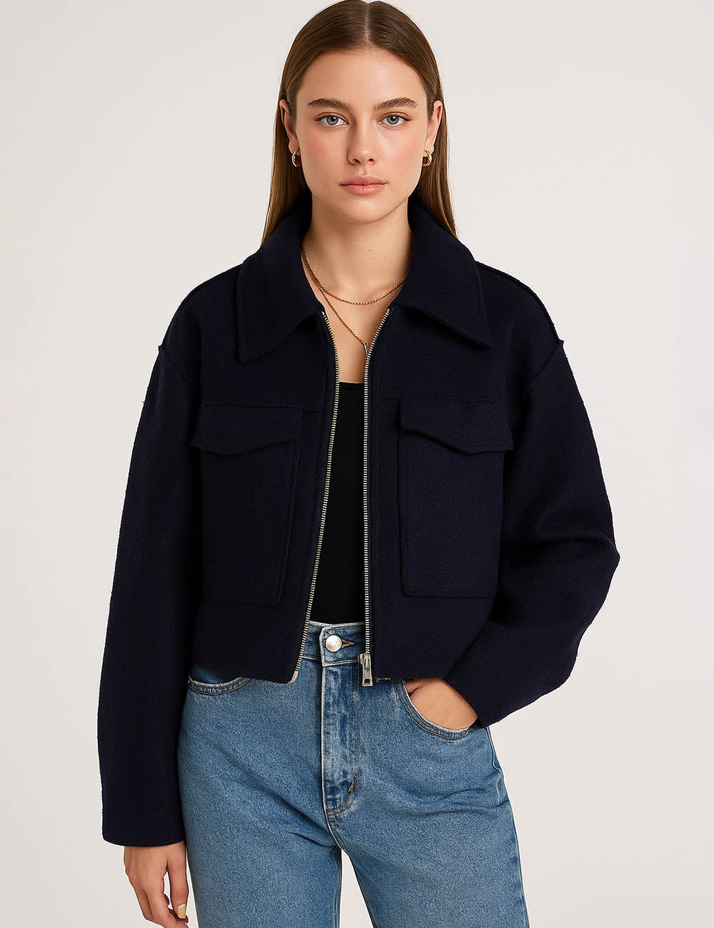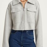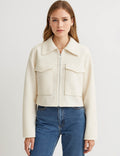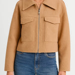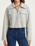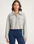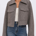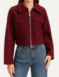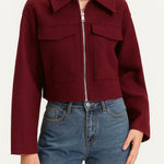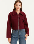 Ladies Turn Down Collar Boxy Cropped Wool Blend Jacket