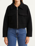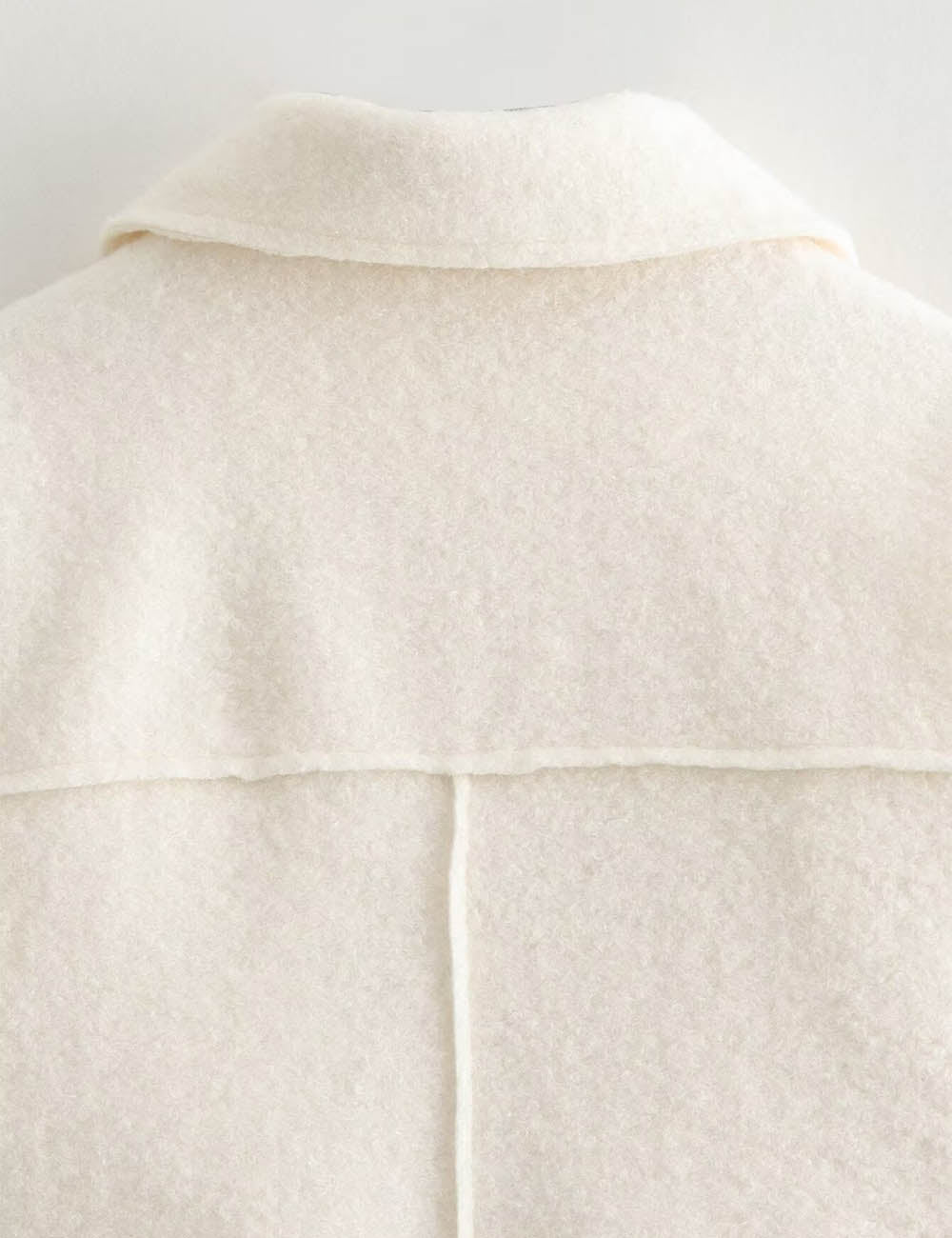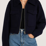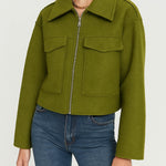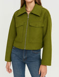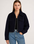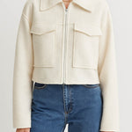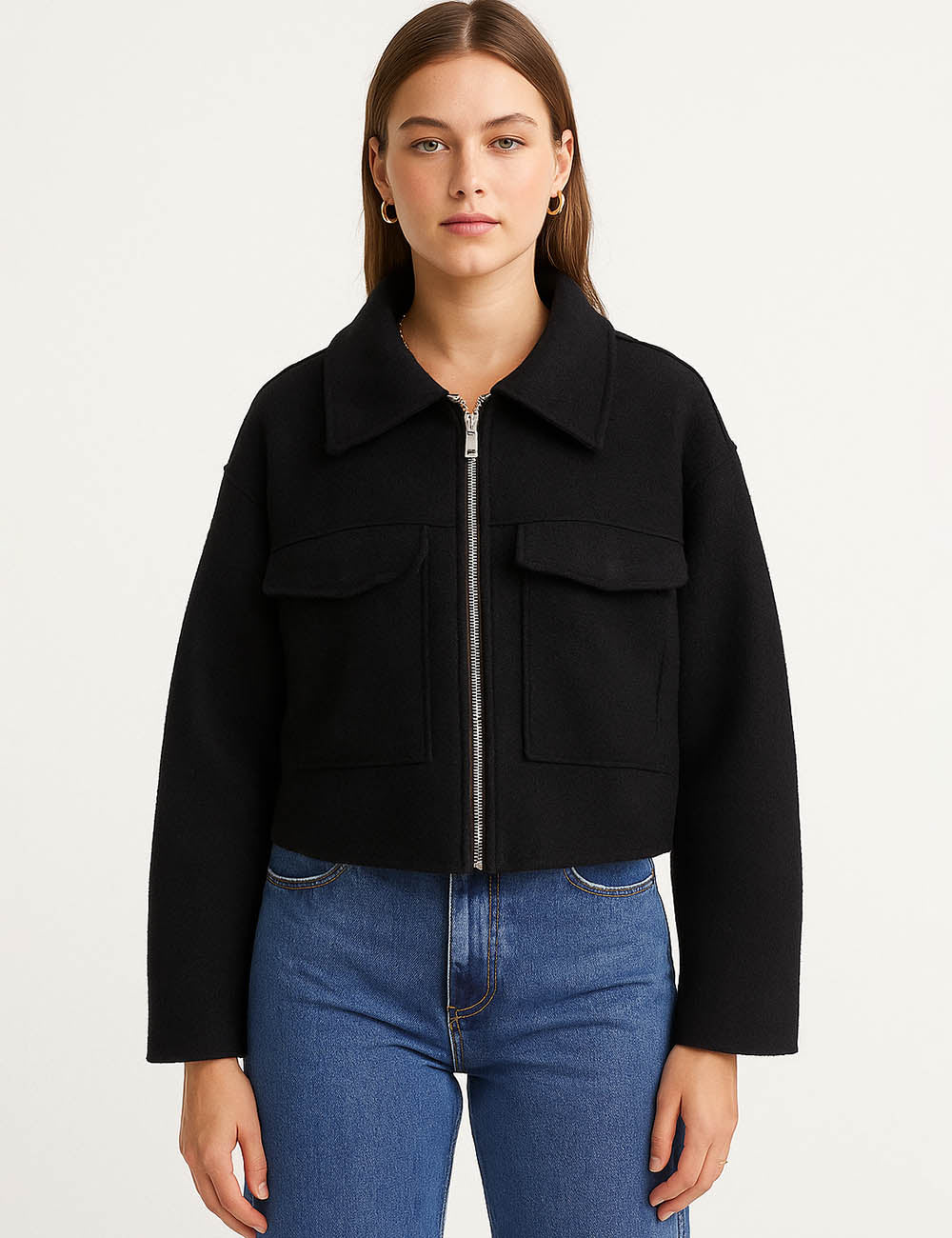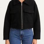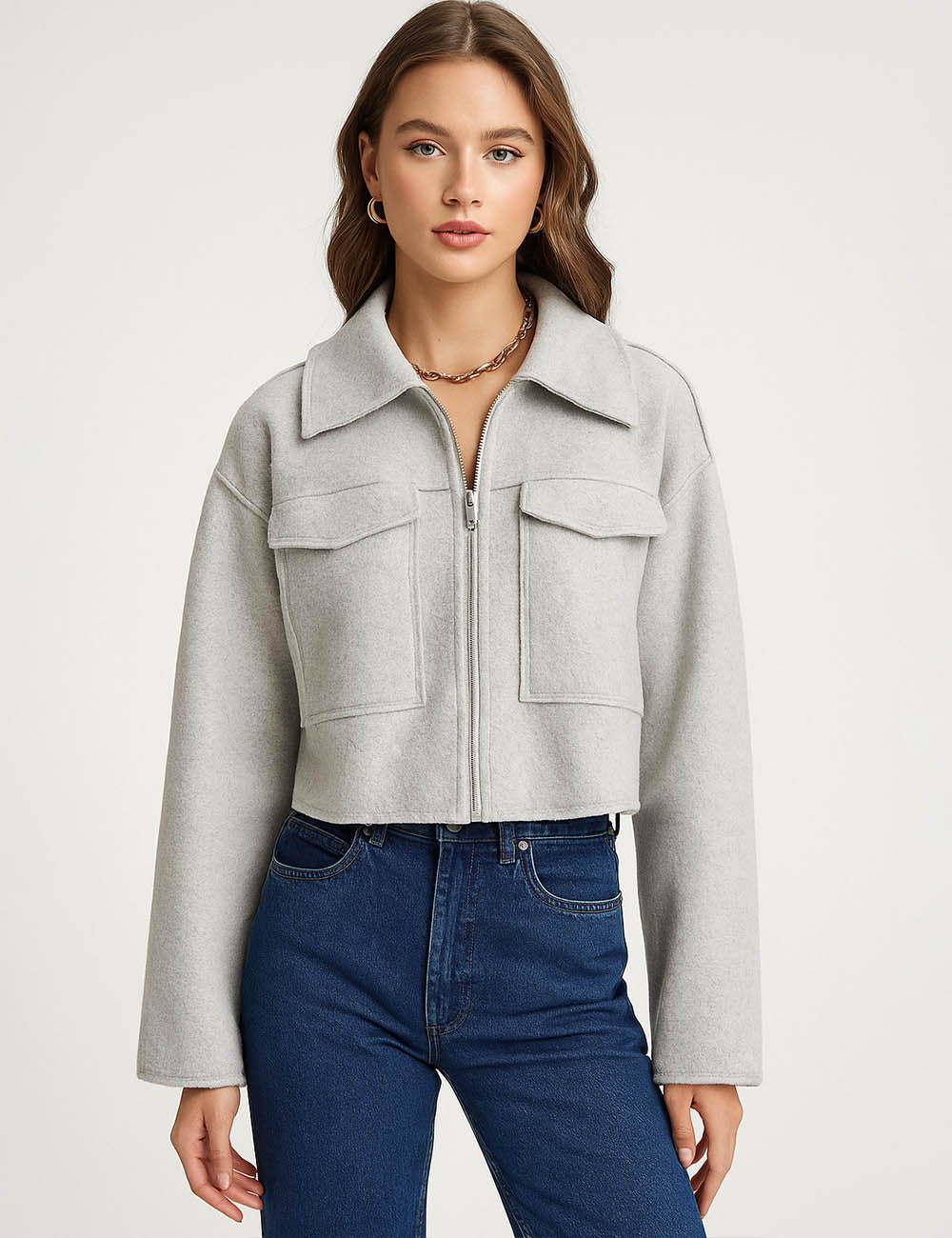 Ladies Turn Down Collar Boxy Cropped Wool Blend Jacket