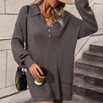 Ladies Turn-Down Collar Daily Short Knit Dress E2332