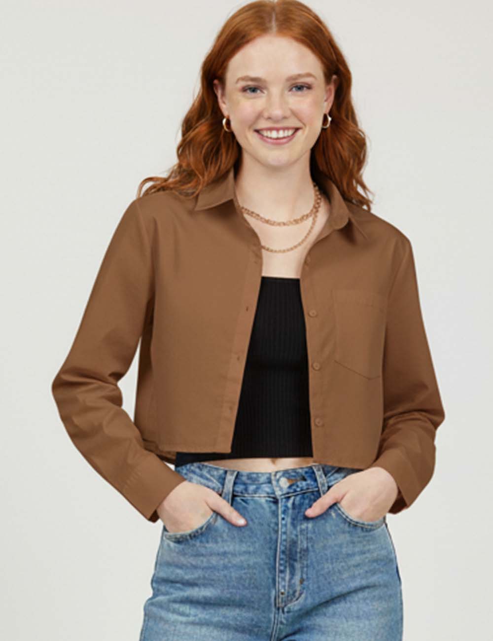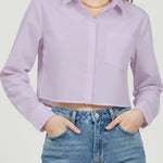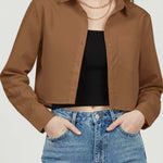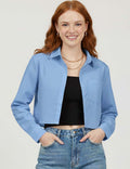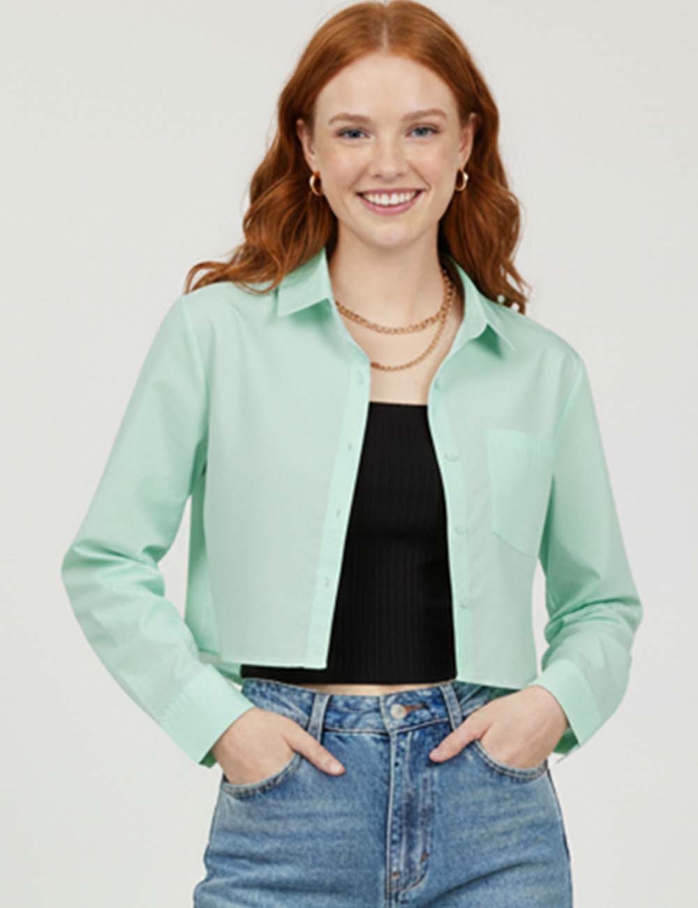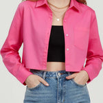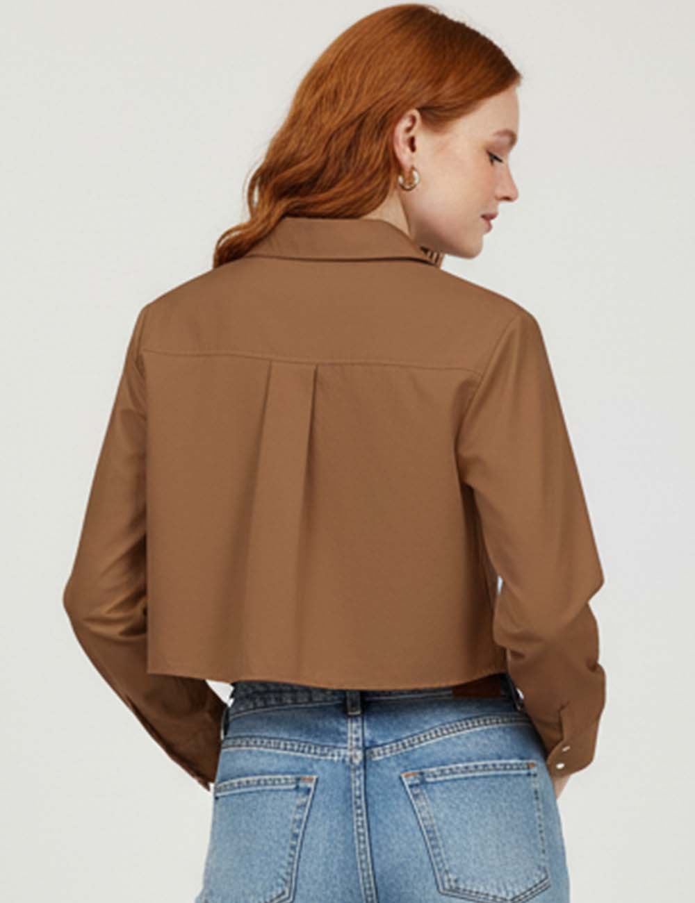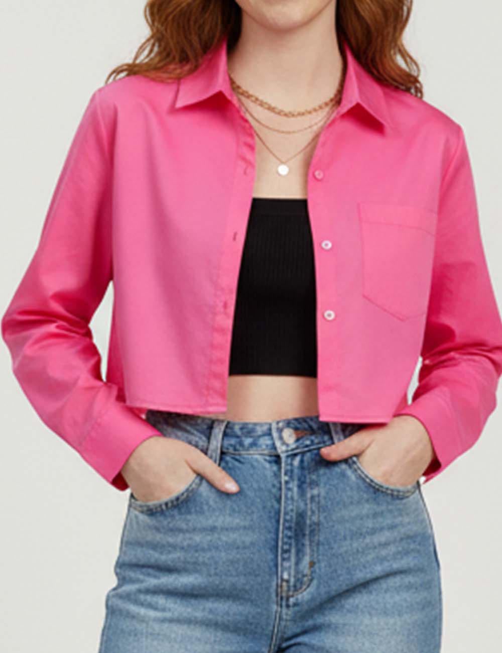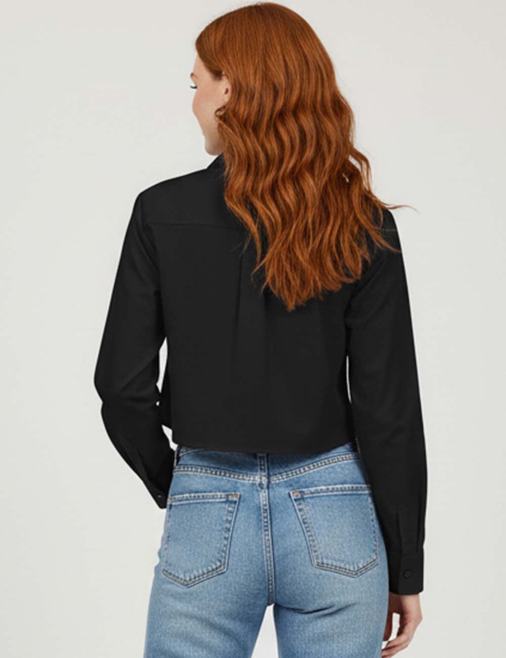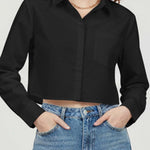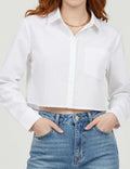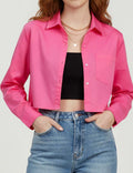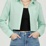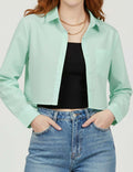 Ladies Turn Down Collar Long Sleeves Cropped Shirt