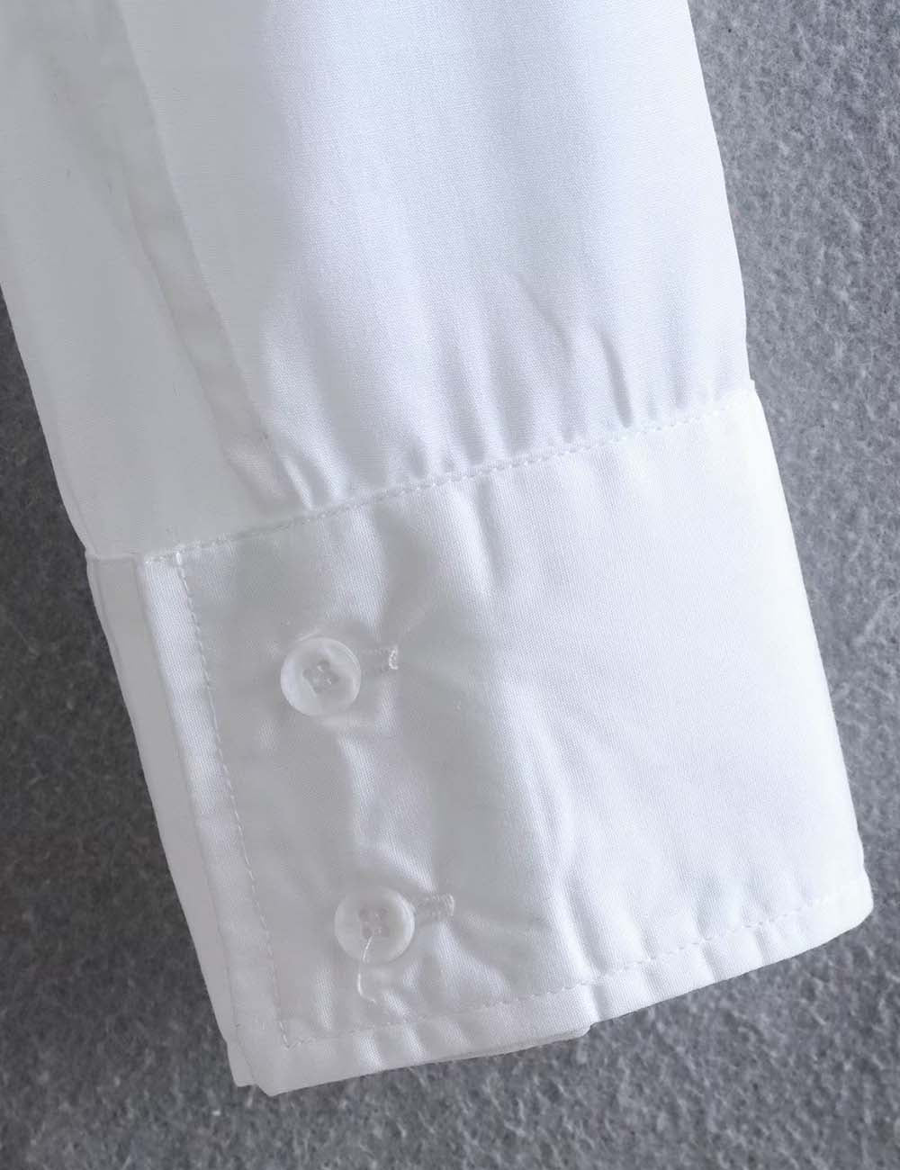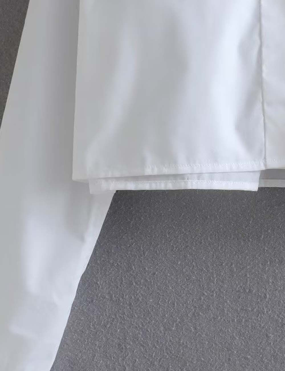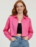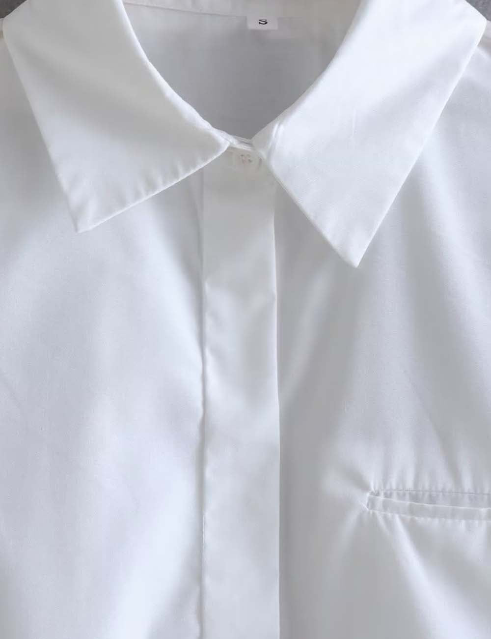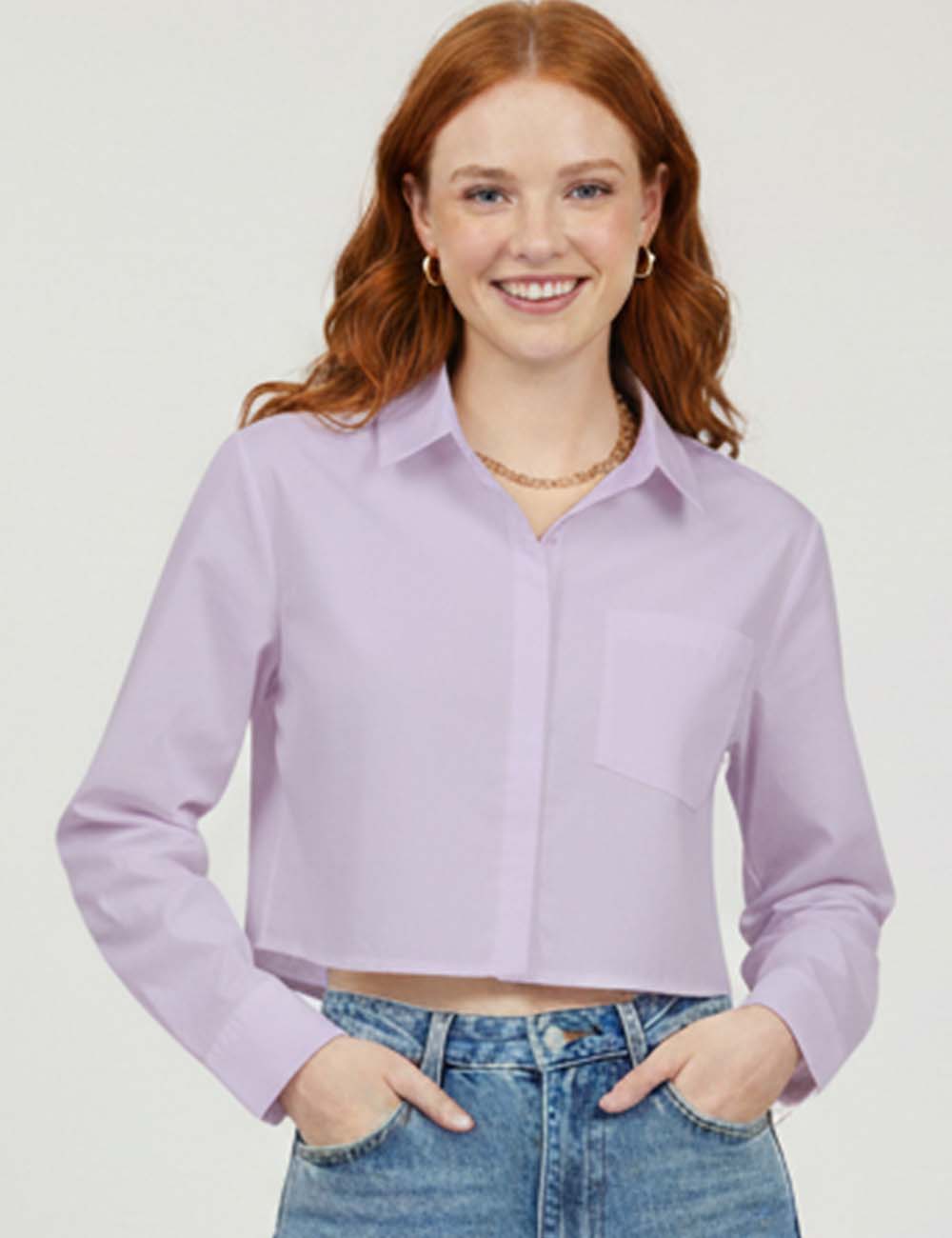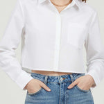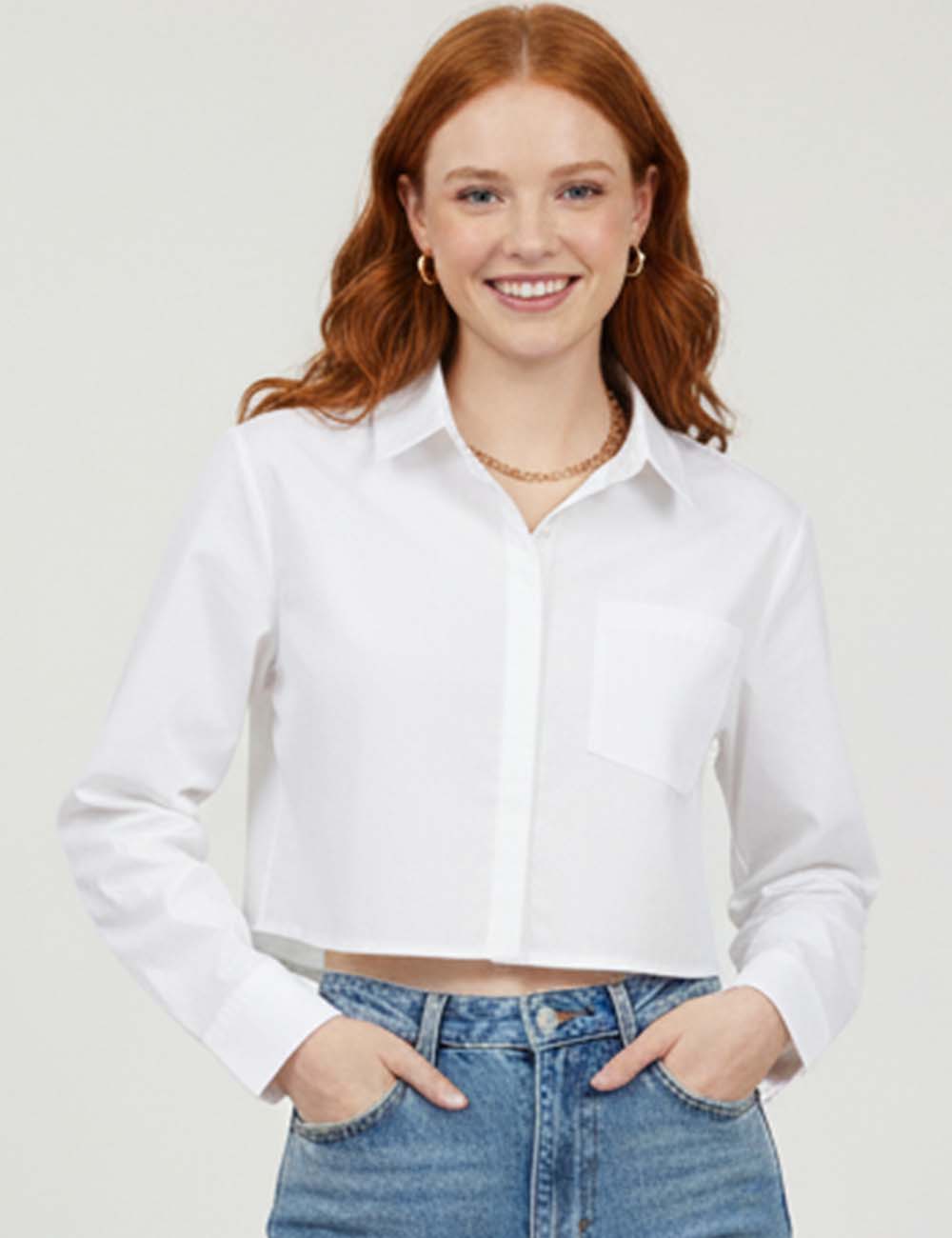 Ladies Turn Down Collar Long Sleeves Cropped Shirt
