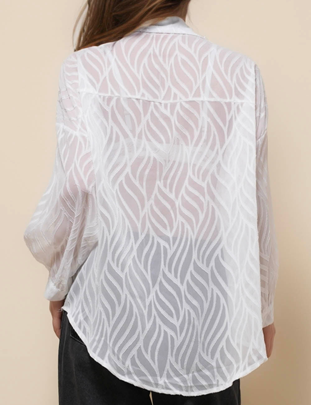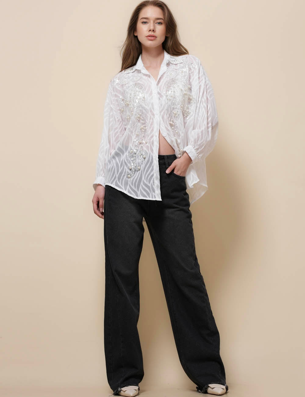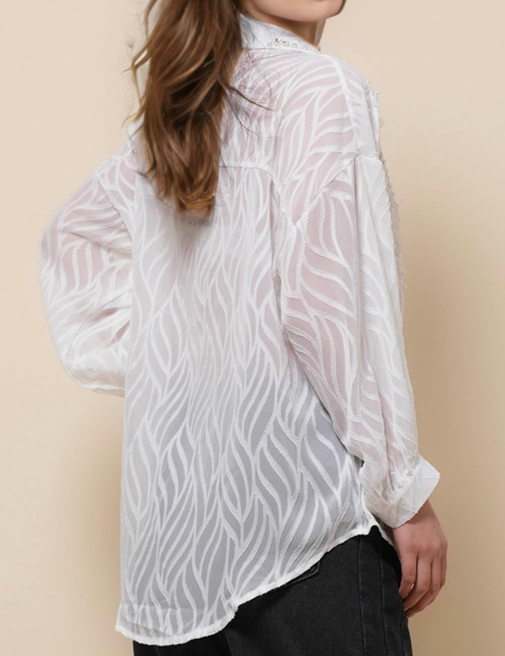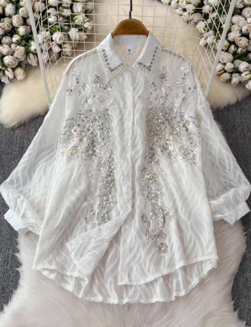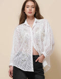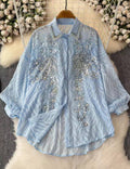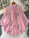 Ladies Turndown Collar Long Sleeves Embroidery Shirt SKT51186