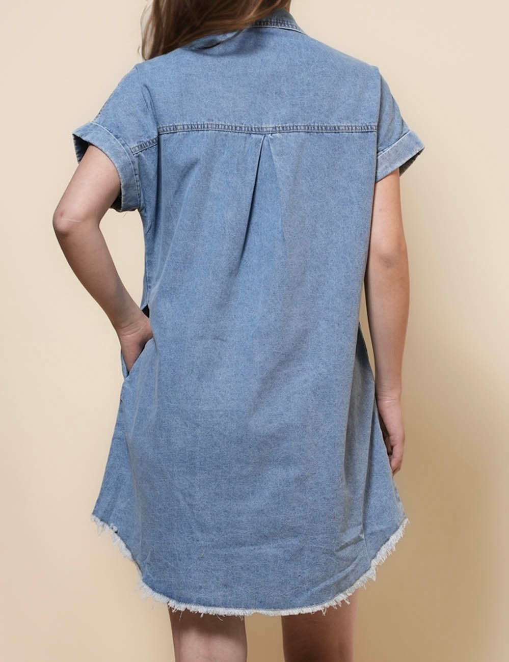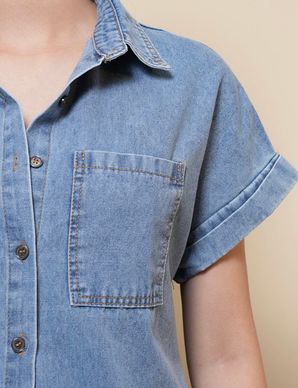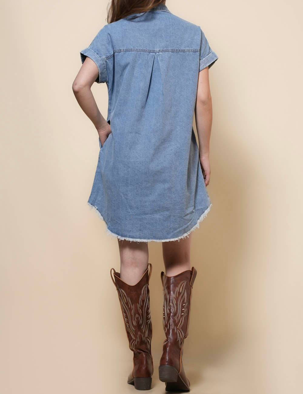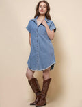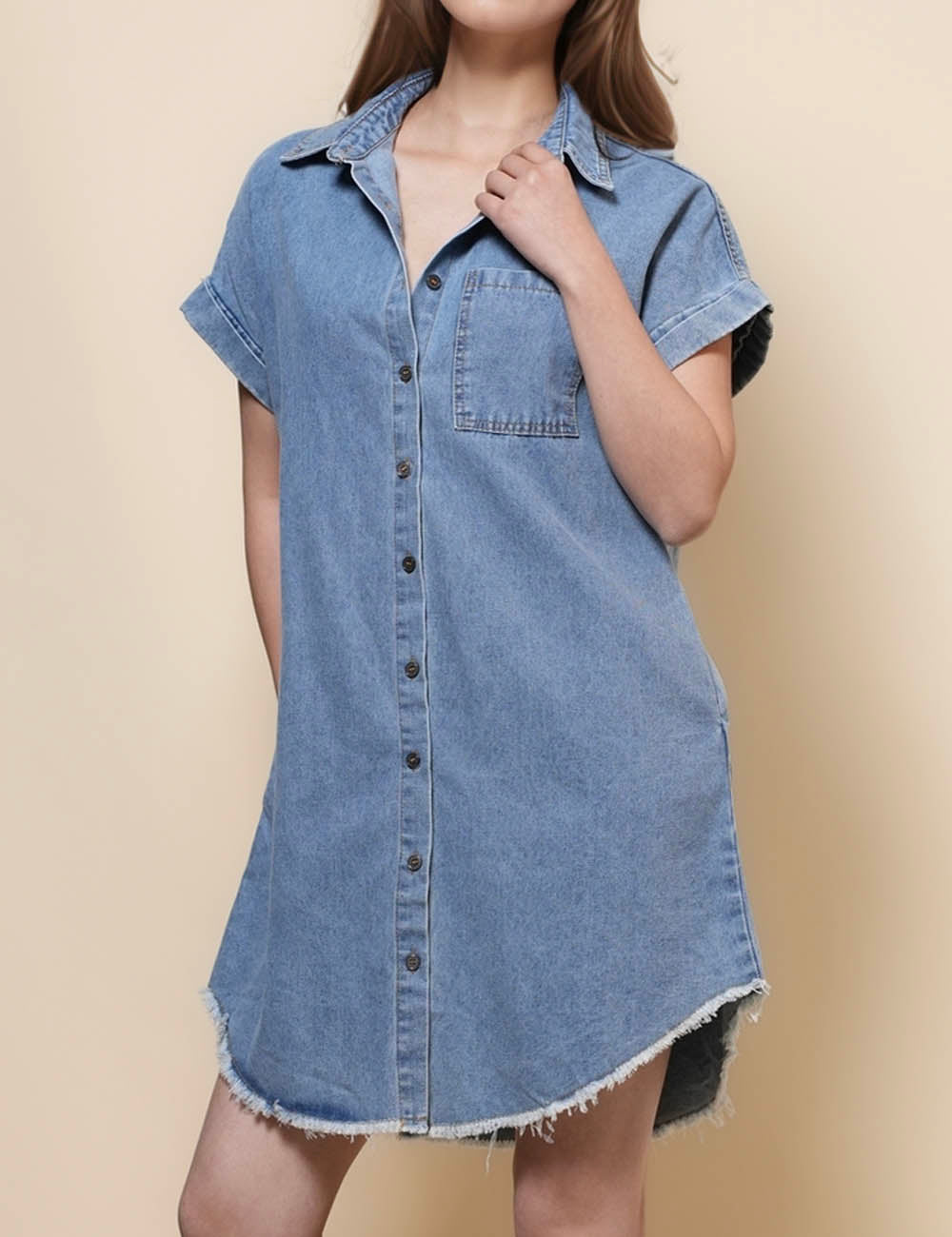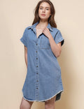 Ladies Turndown Collar Short Sleeves Denim Mini Dress SKD50021