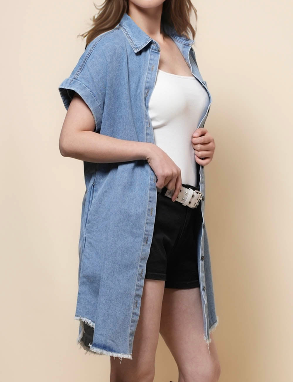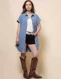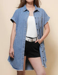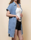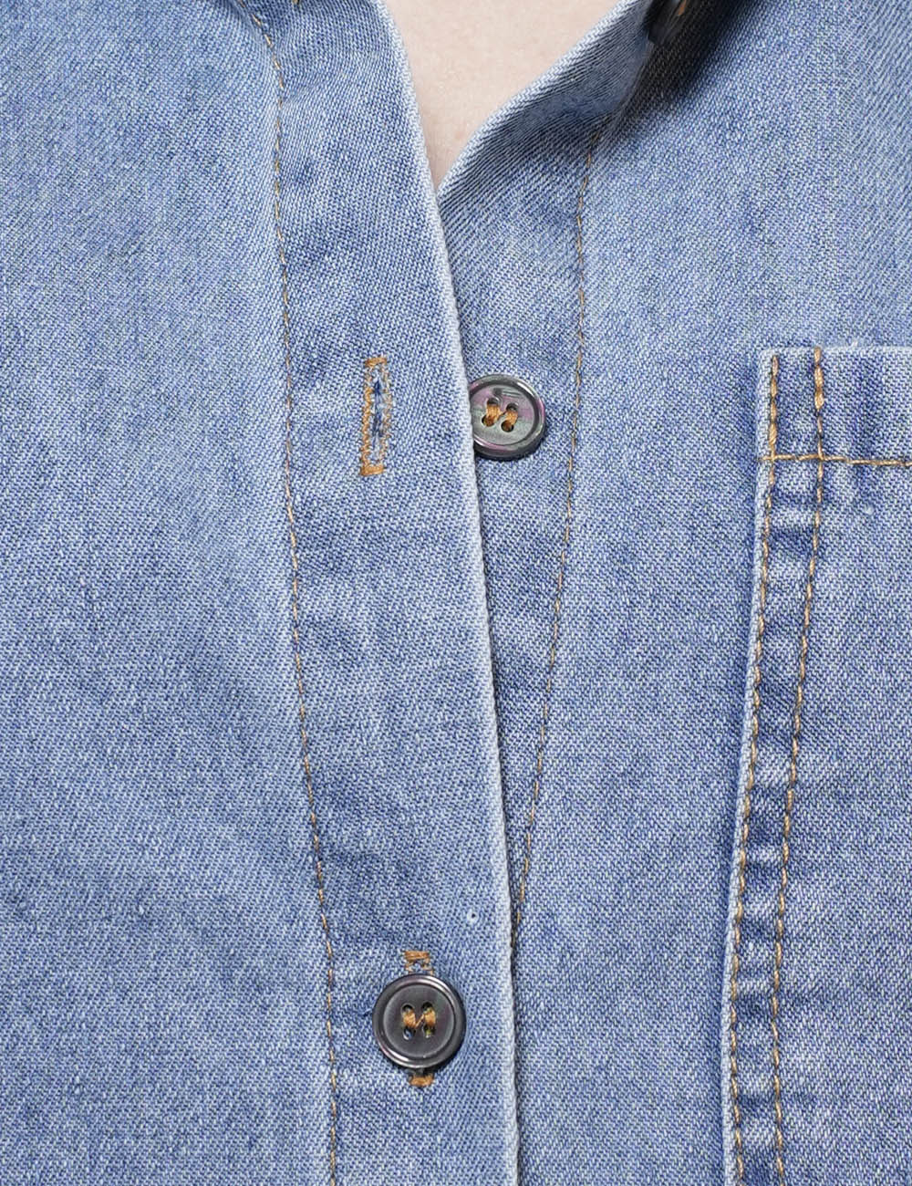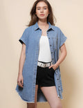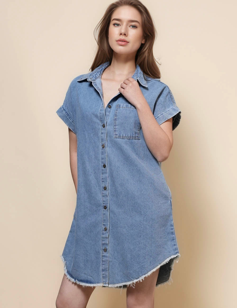 Ladies Turndown Collar Short Sleeves Denim Mini Dress SKD50021