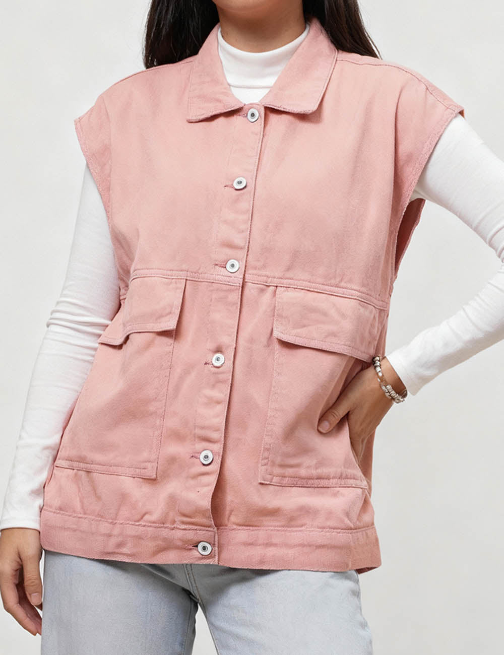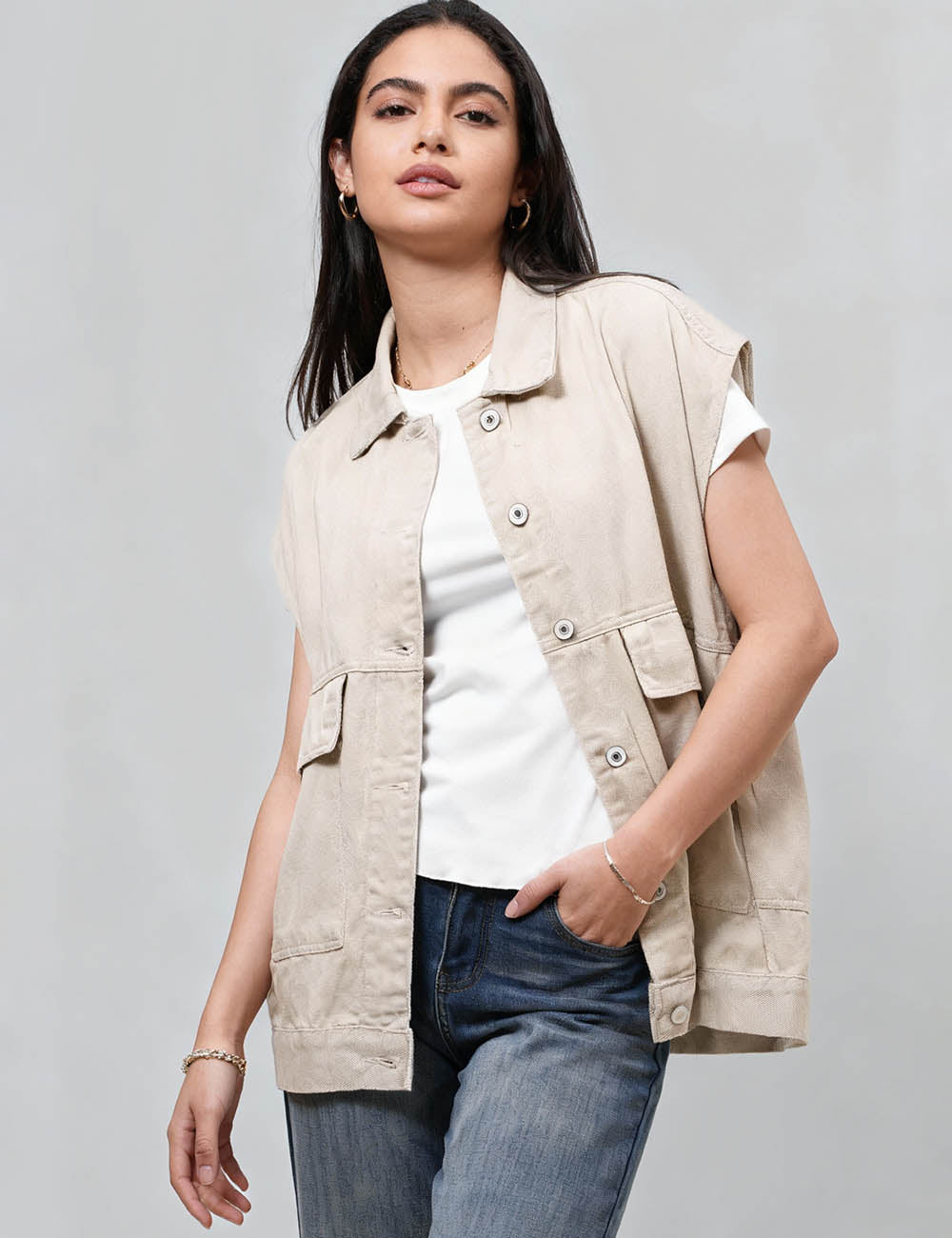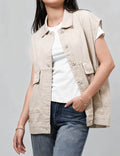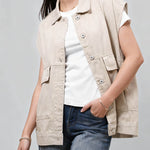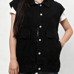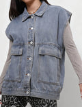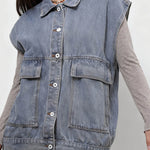 Ladies Turndown Collar Sleeveless Denim Vest SKT4957