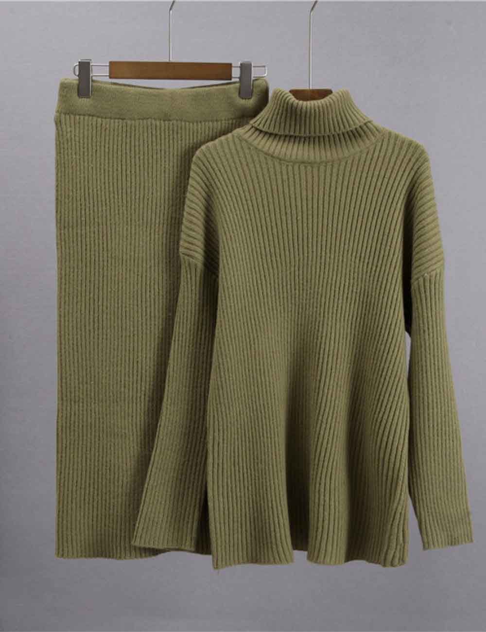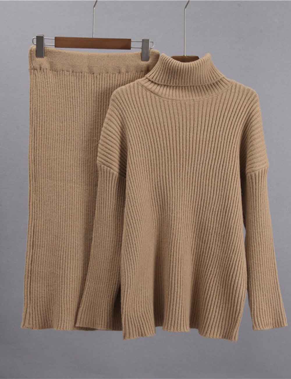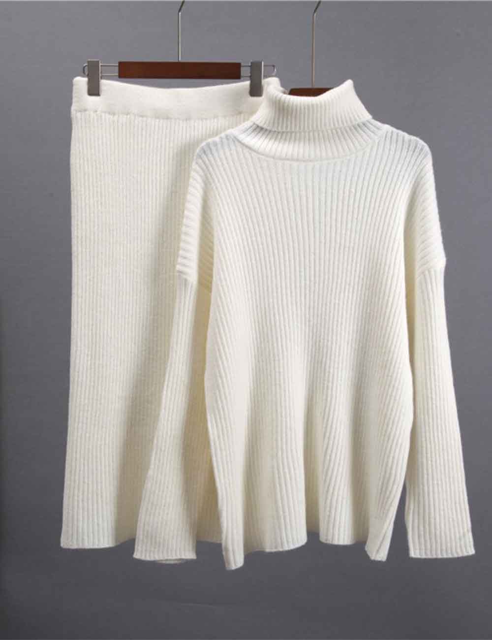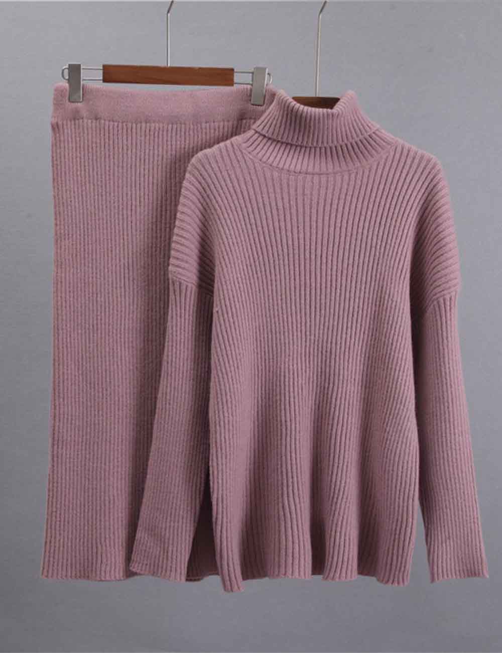 Ladies Turtle Neck Long Sleeves Knit Sweater Set