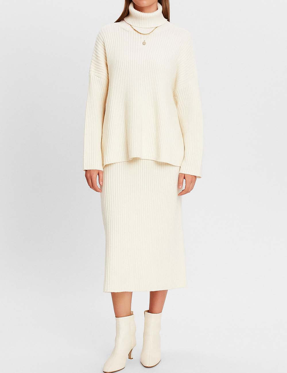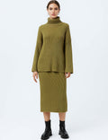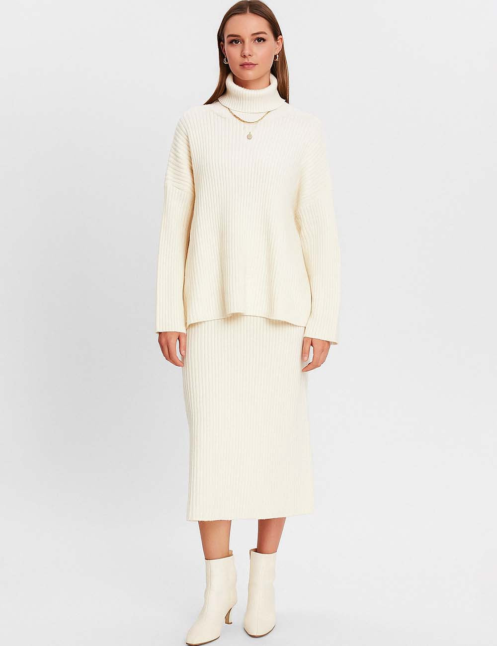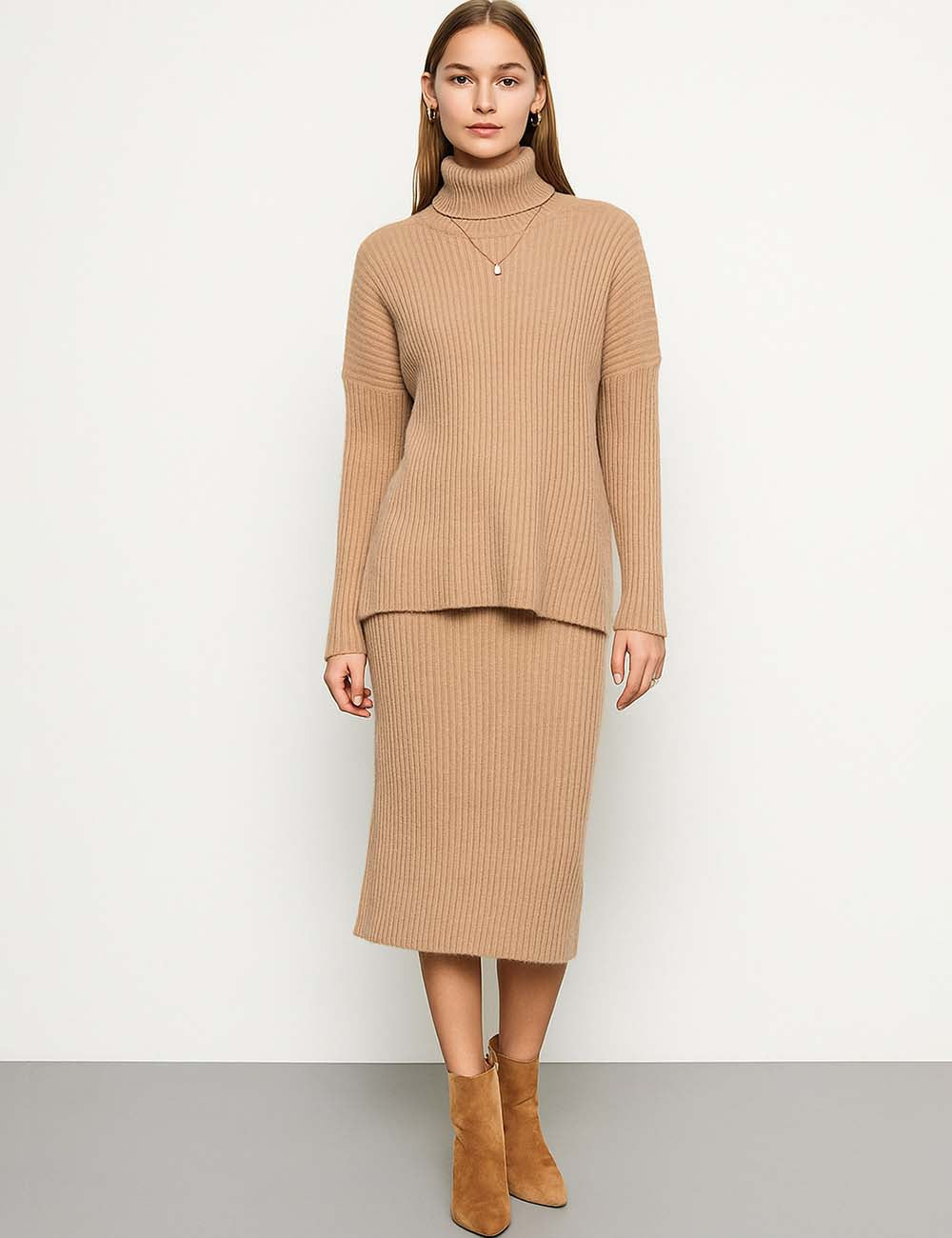 Ladies Turtle Neck Long Sleeves Knit Sweater Set