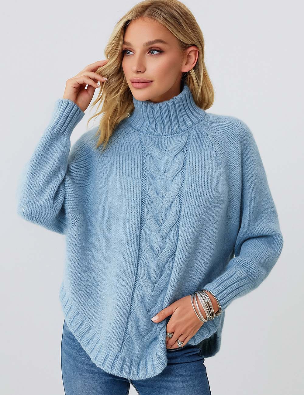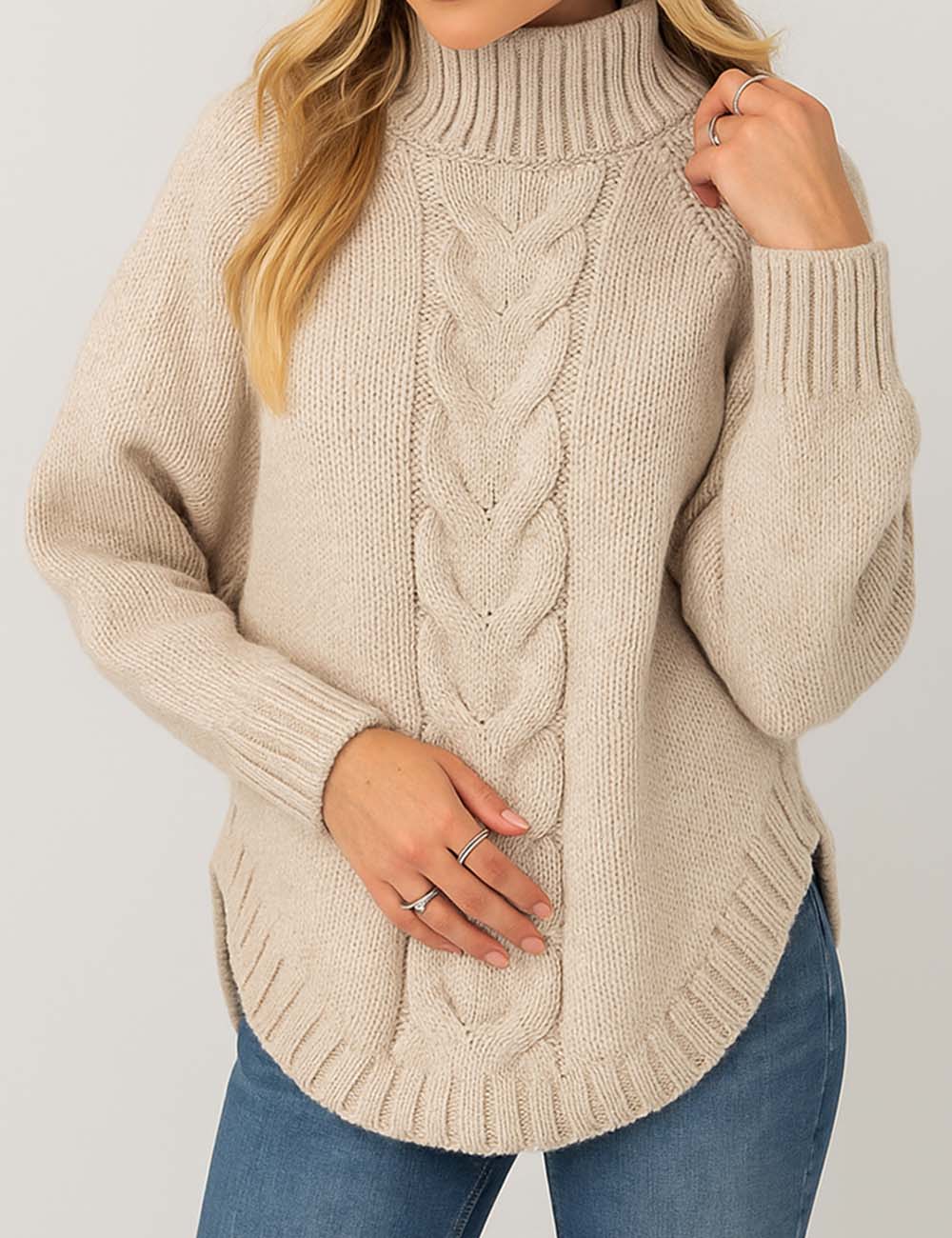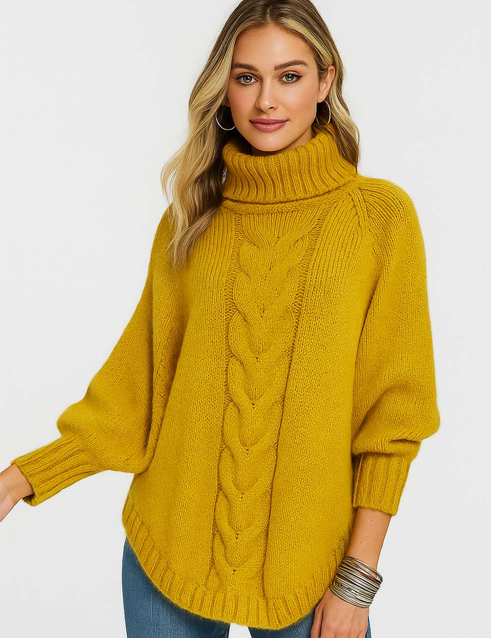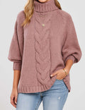 Ladies Turtle Neck Long Sleeves Pullover Knit Sweater