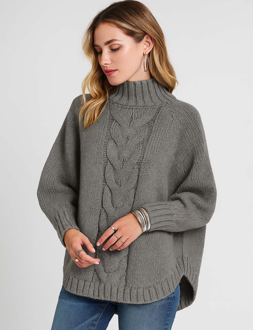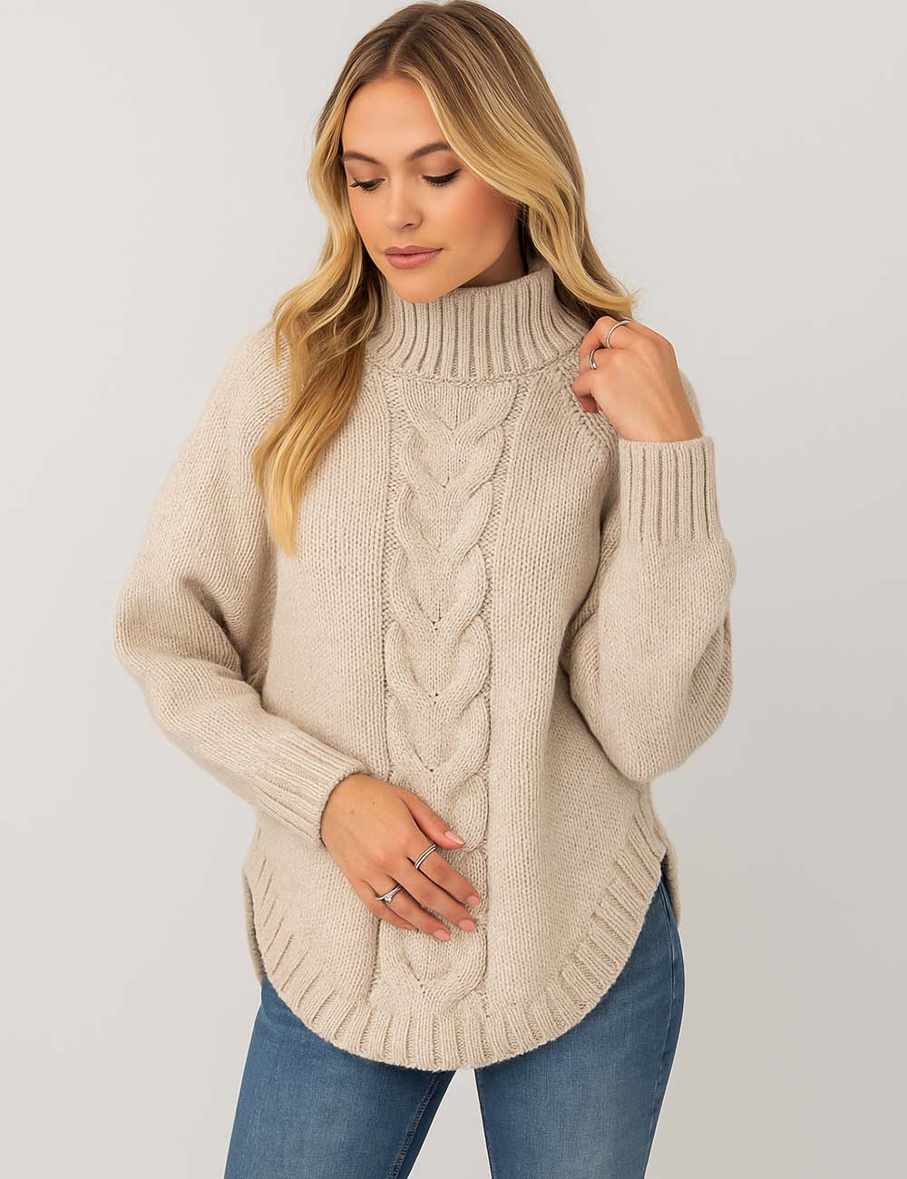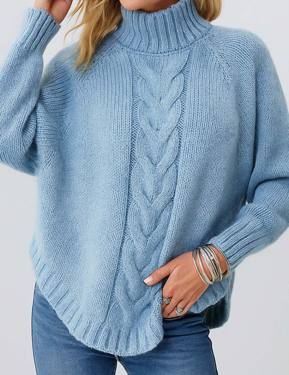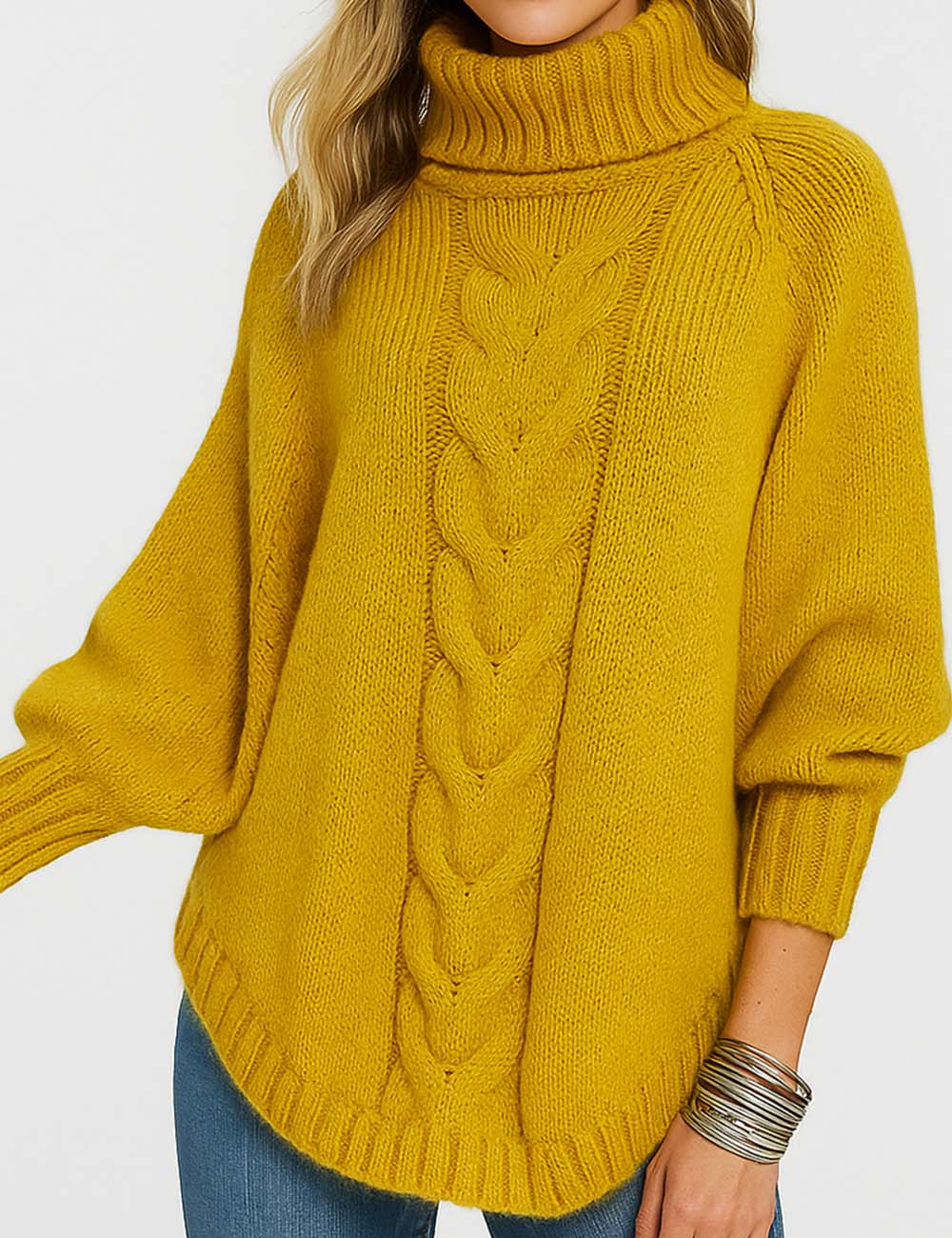 Ladies Turtle Neck Long Sleeves Pullover Knit Sweater