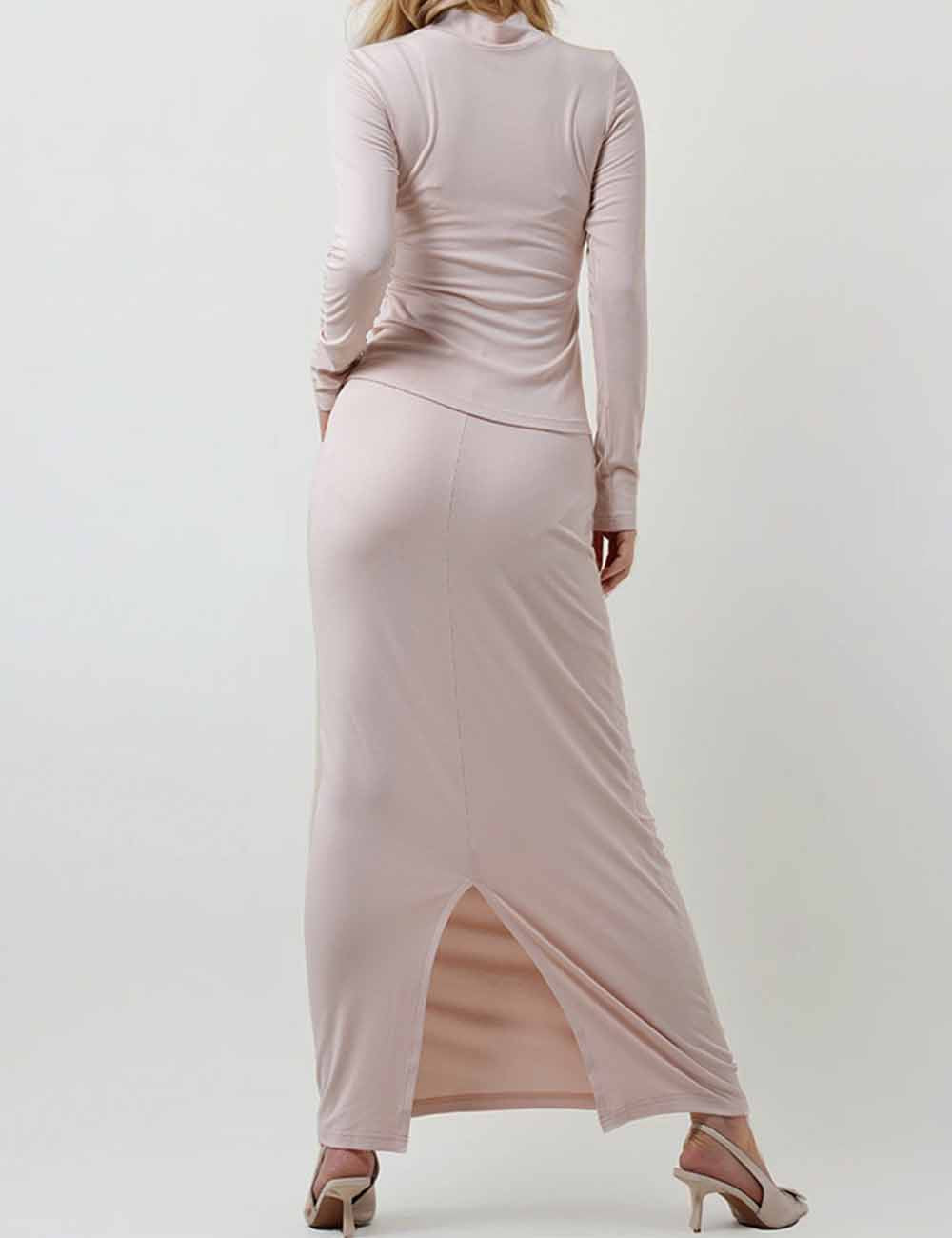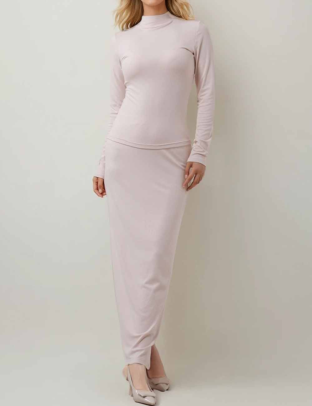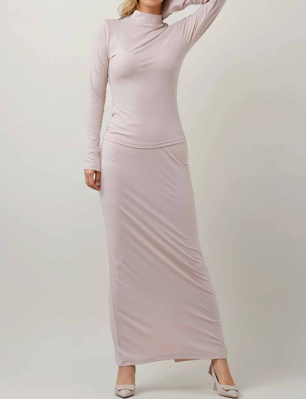 Ladies Turtleneck Collar Solid Color Long Sleeves Top & Skirt Set
