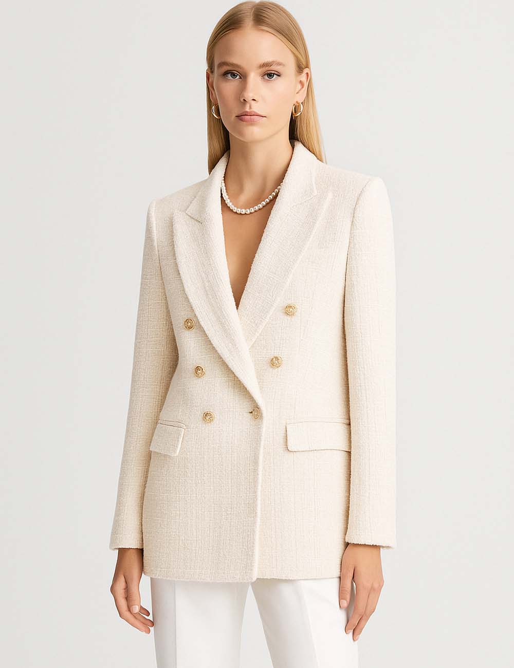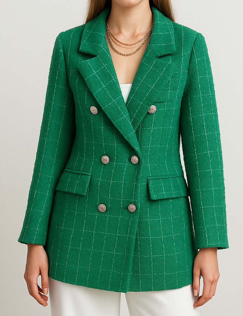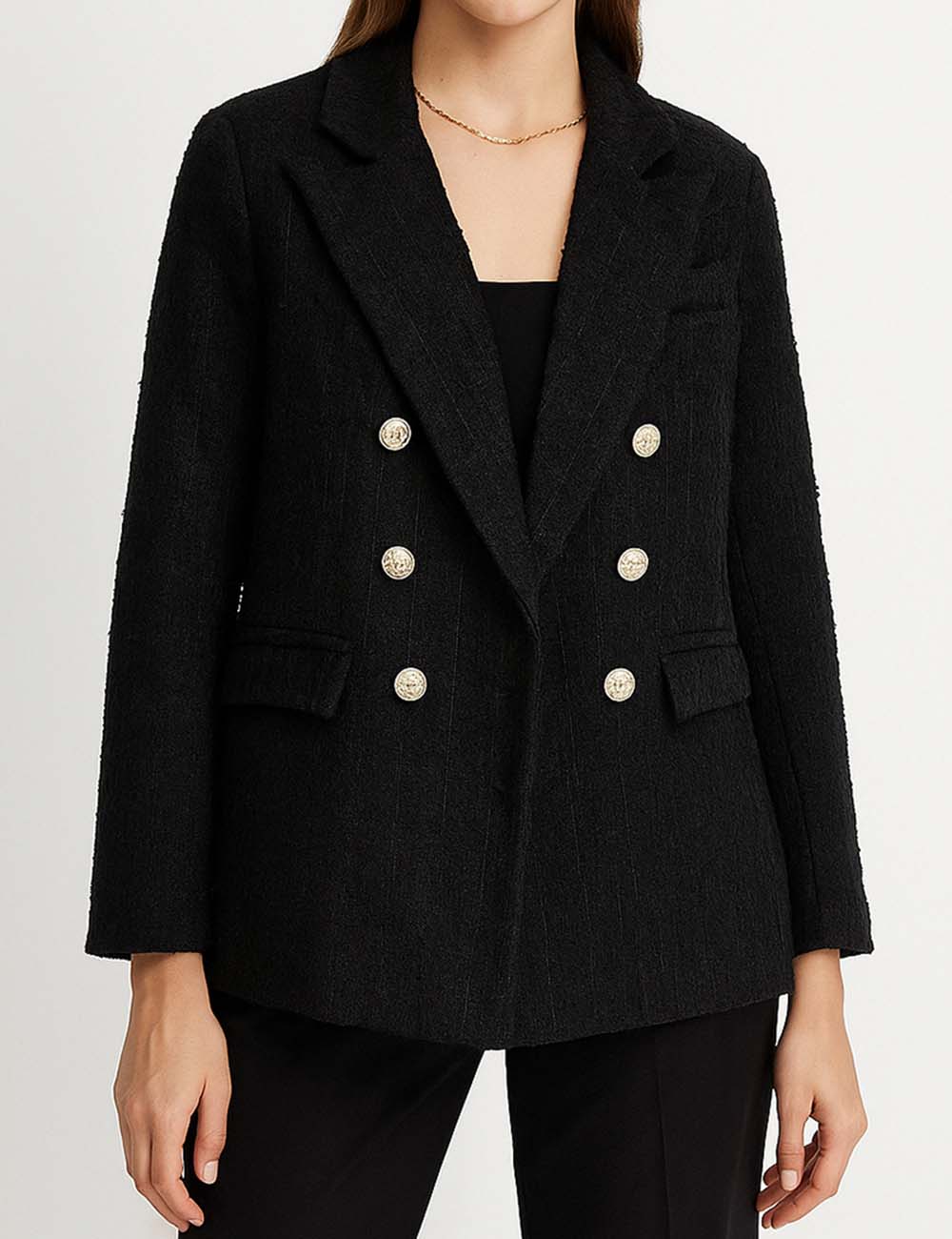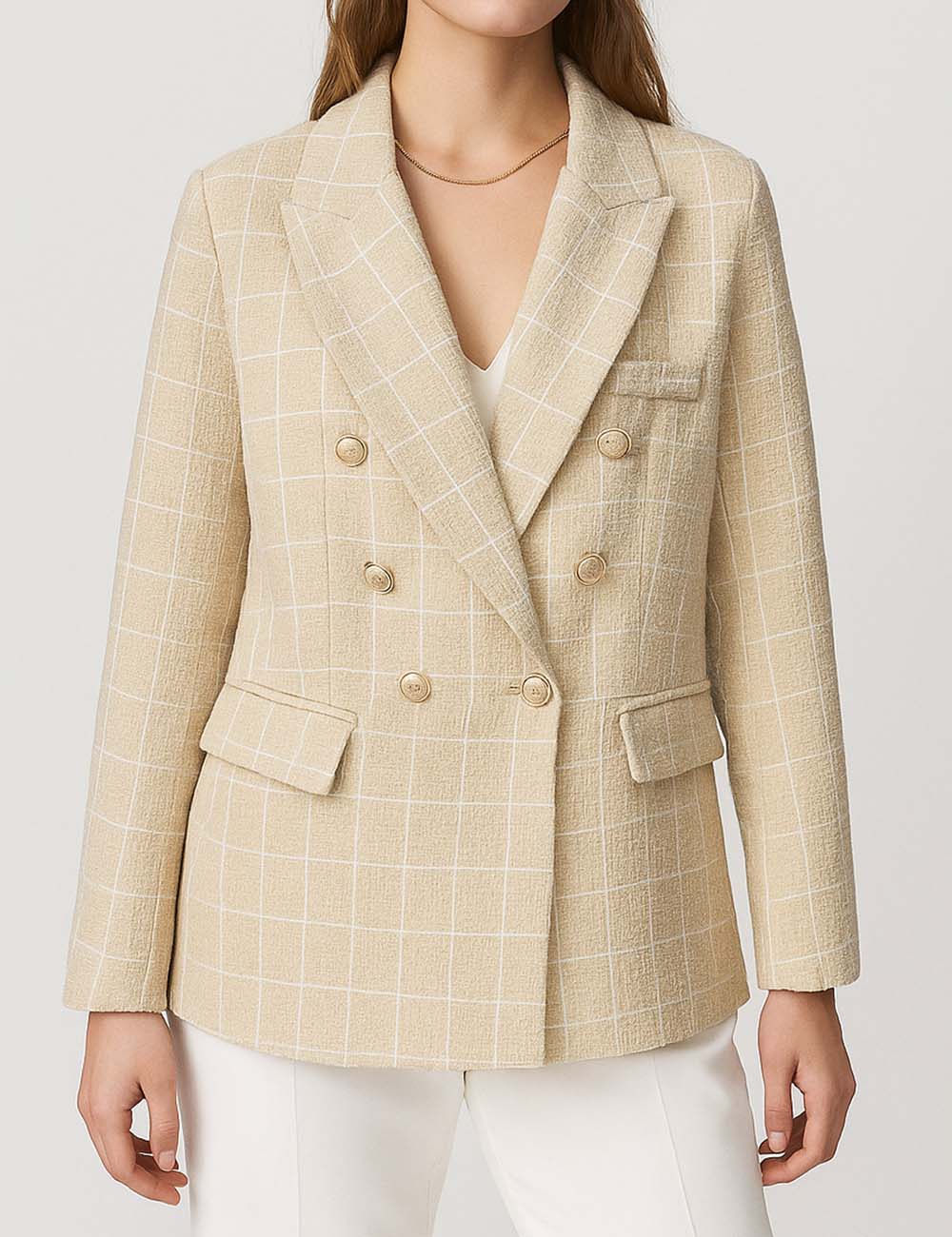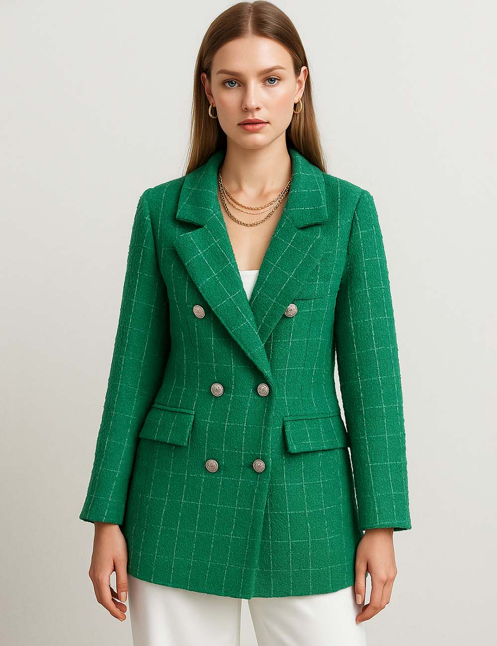 Ladies Tweed Blazers Turndown Collar Suit Coat K2
