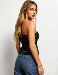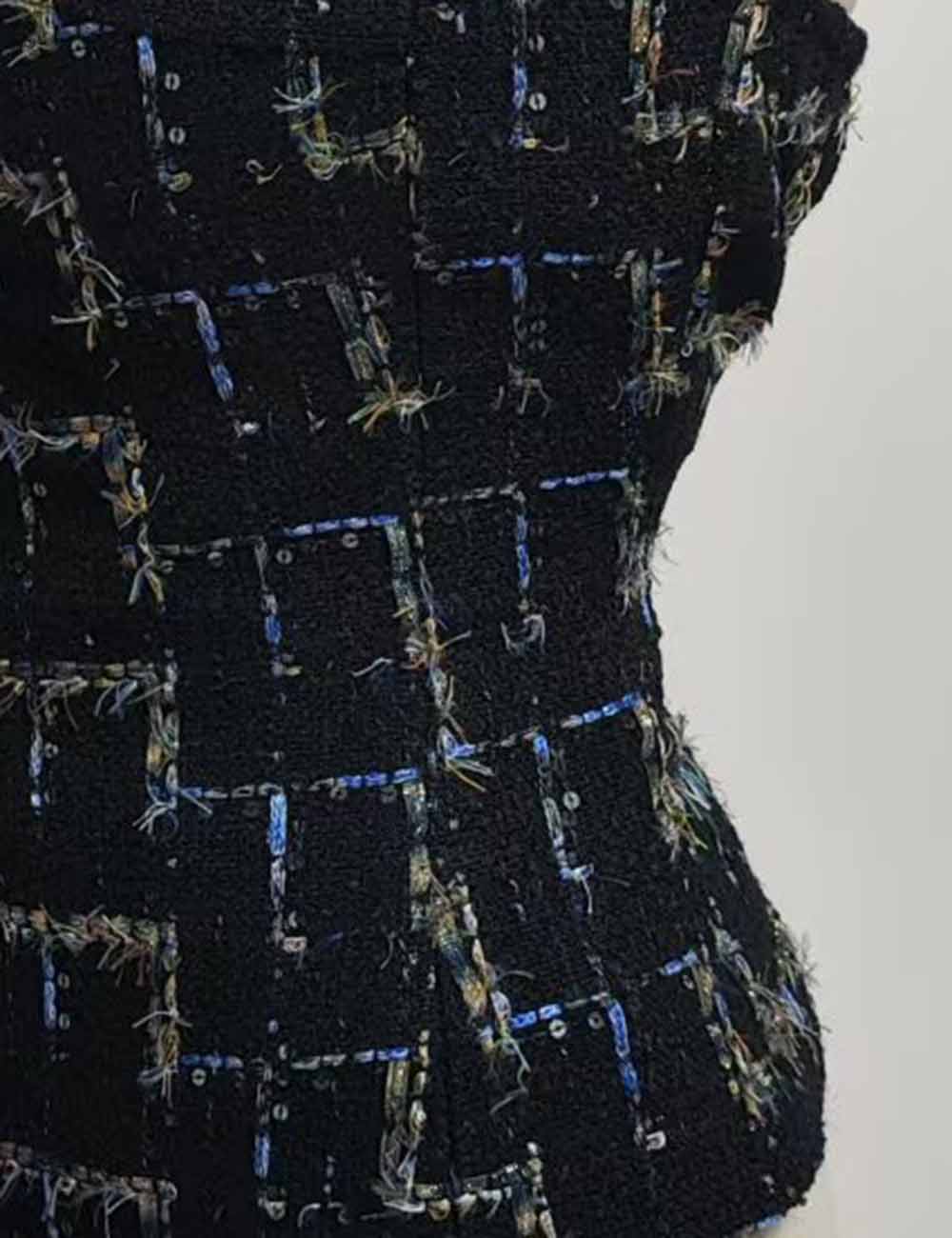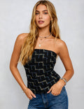 Ladies Tweed Checked Pattern Color Block Tube Top