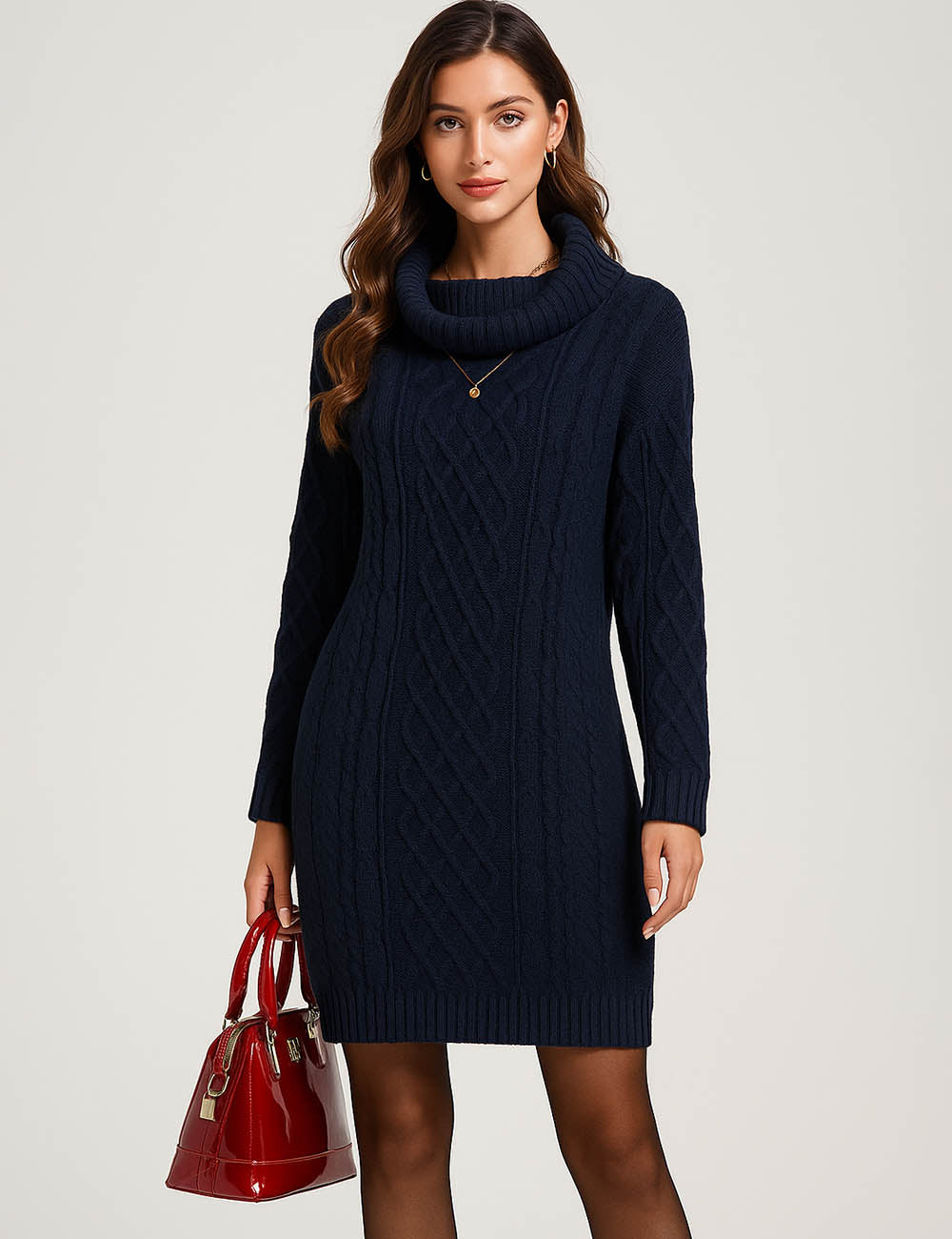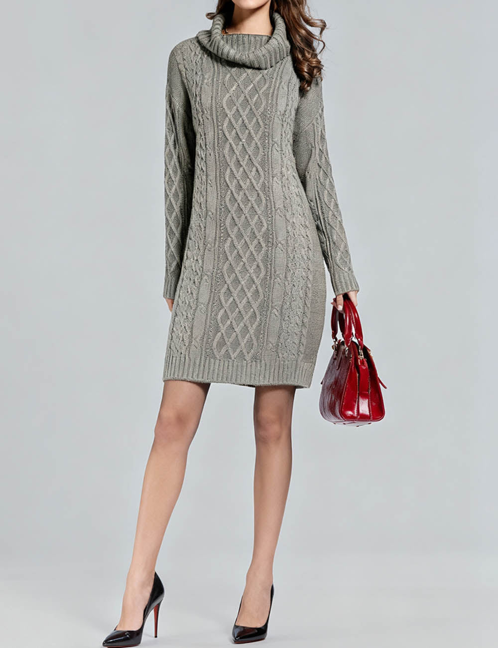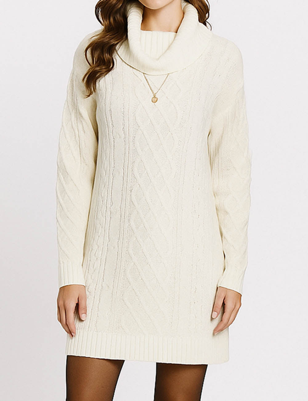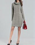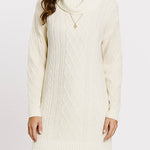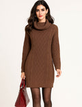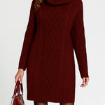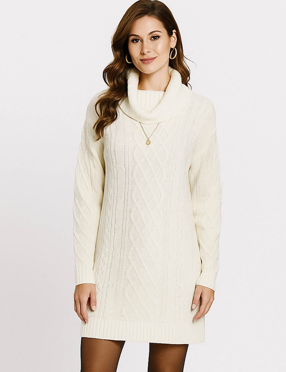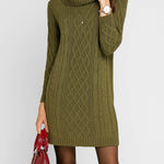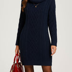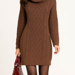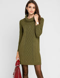 Ladies Twisted Cabel Knit Cowl Neck Sweater Mini Dress