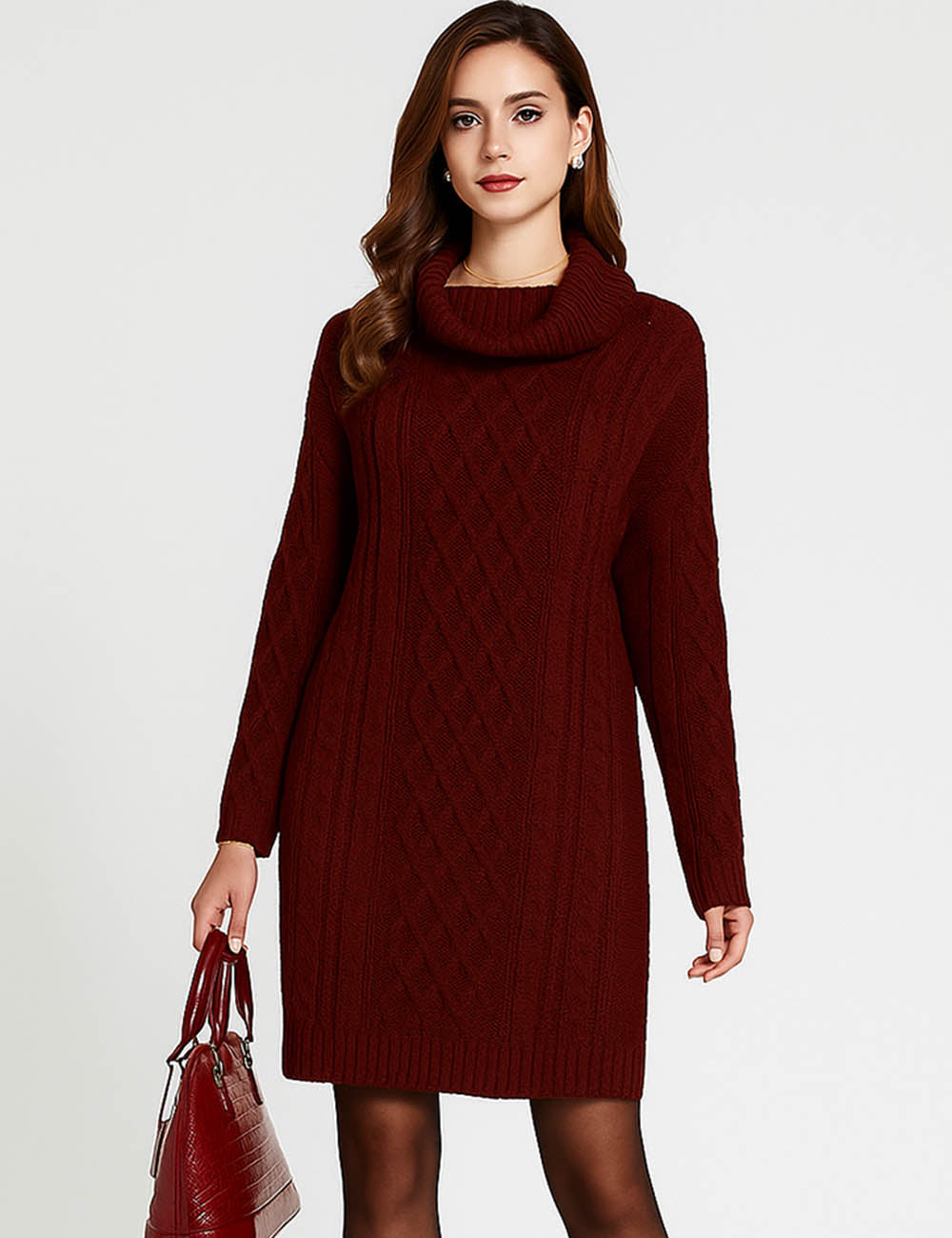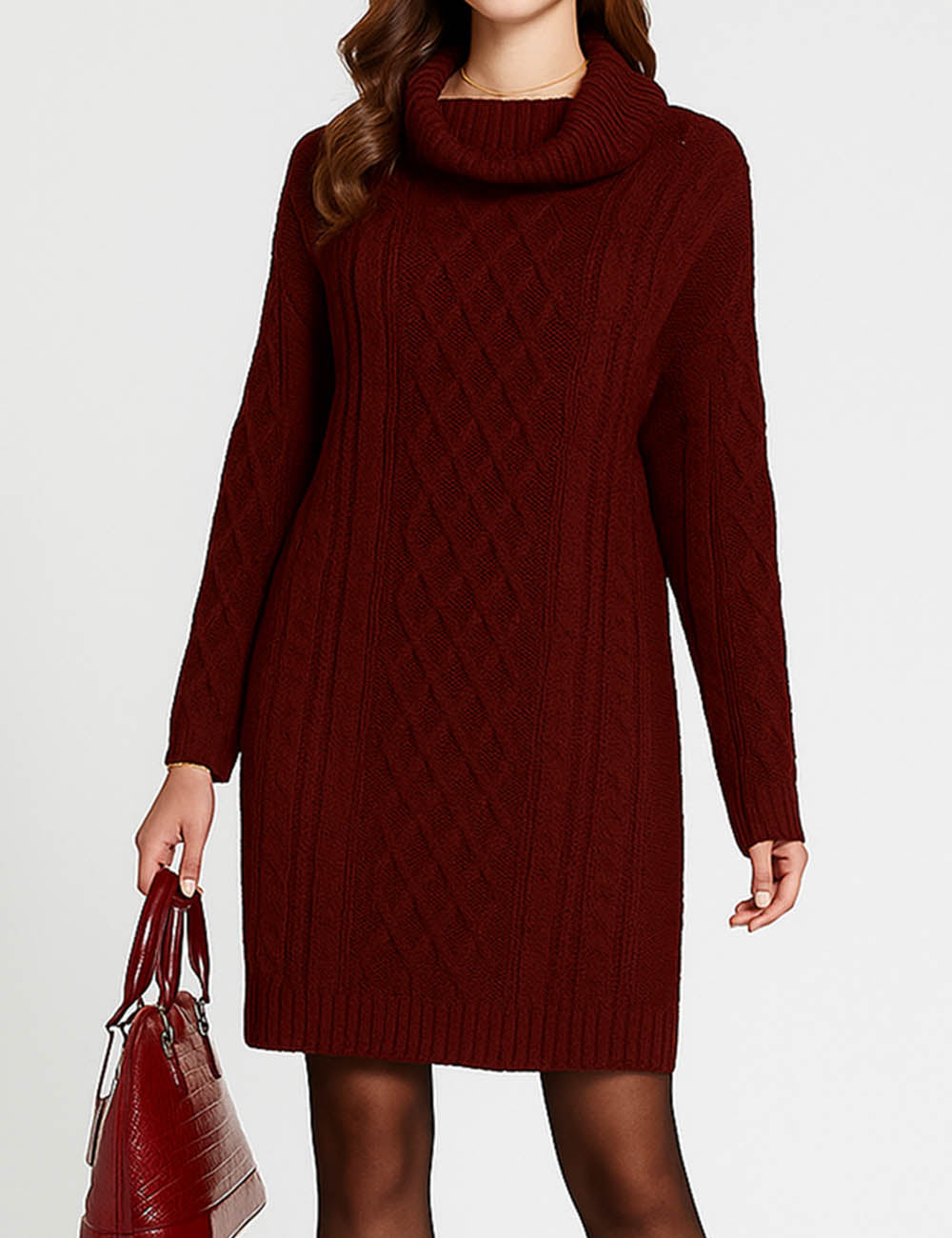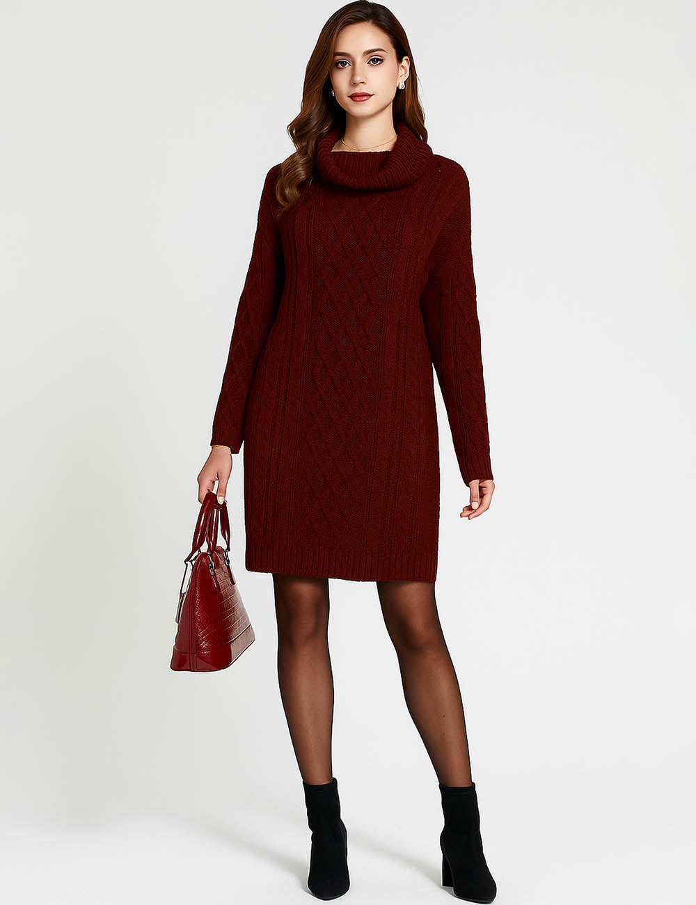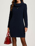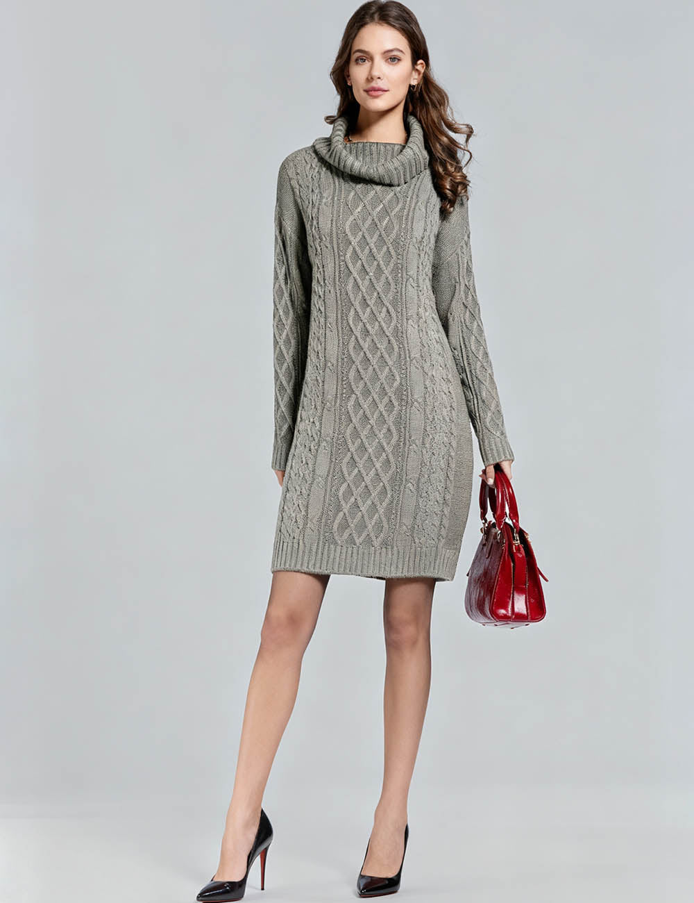 Ladies Twisted Cabel Knit Cowl Neck Sweater Mini Dress