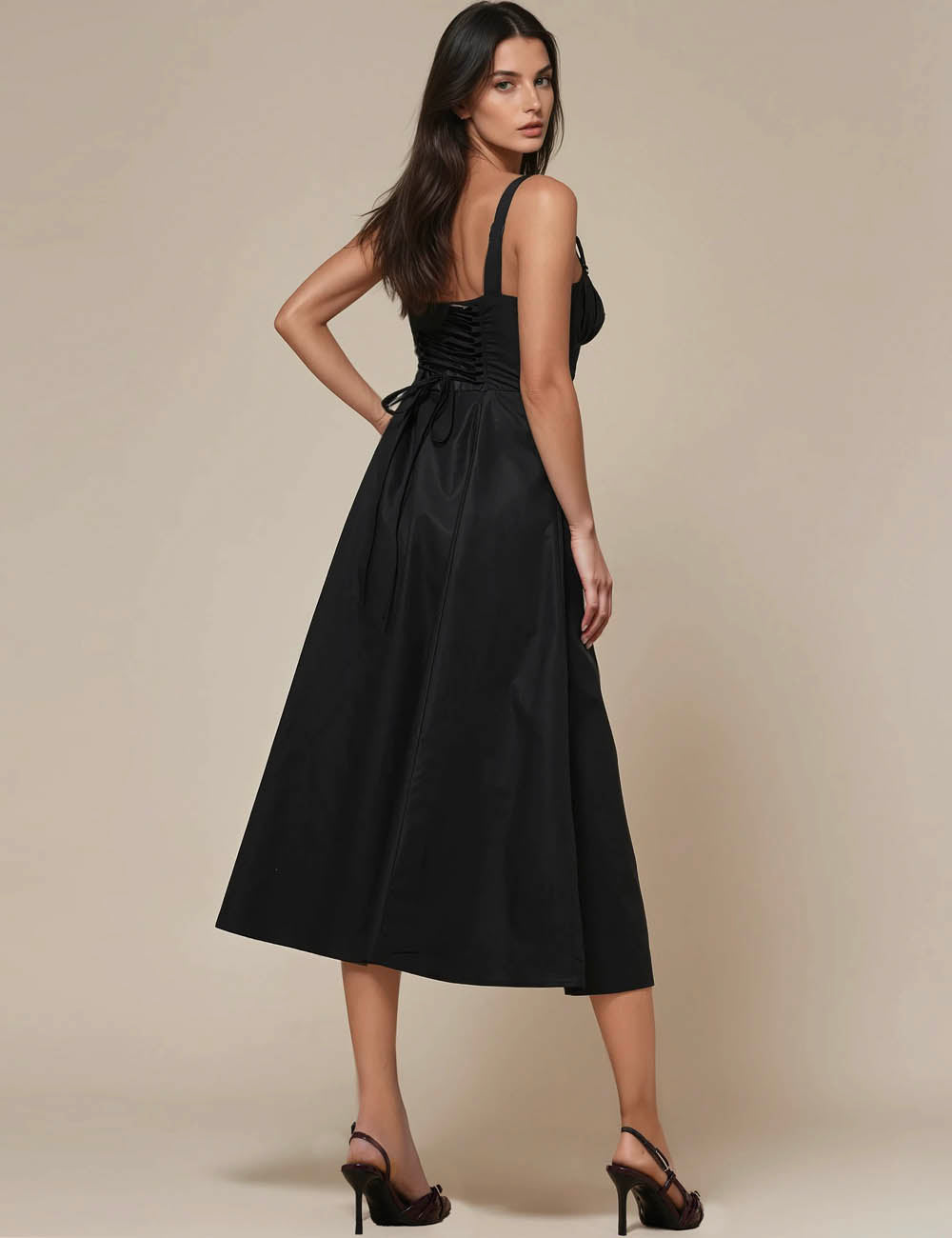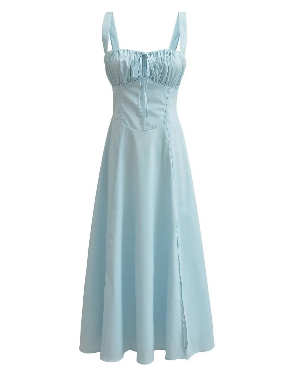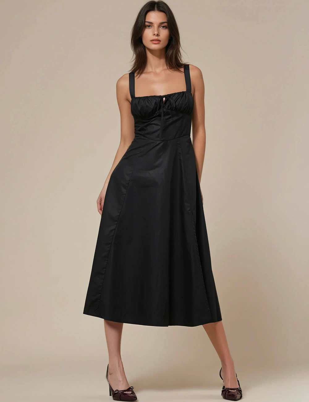 Ladies Two Shoulder Solid Color Daily Midi Dress SKD50243