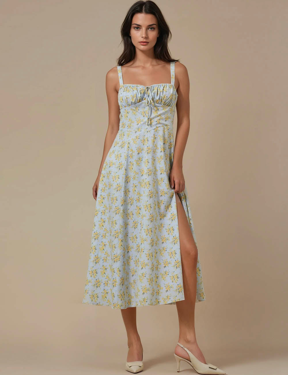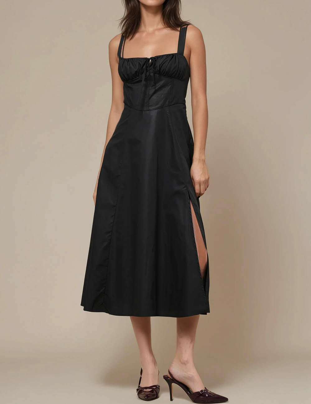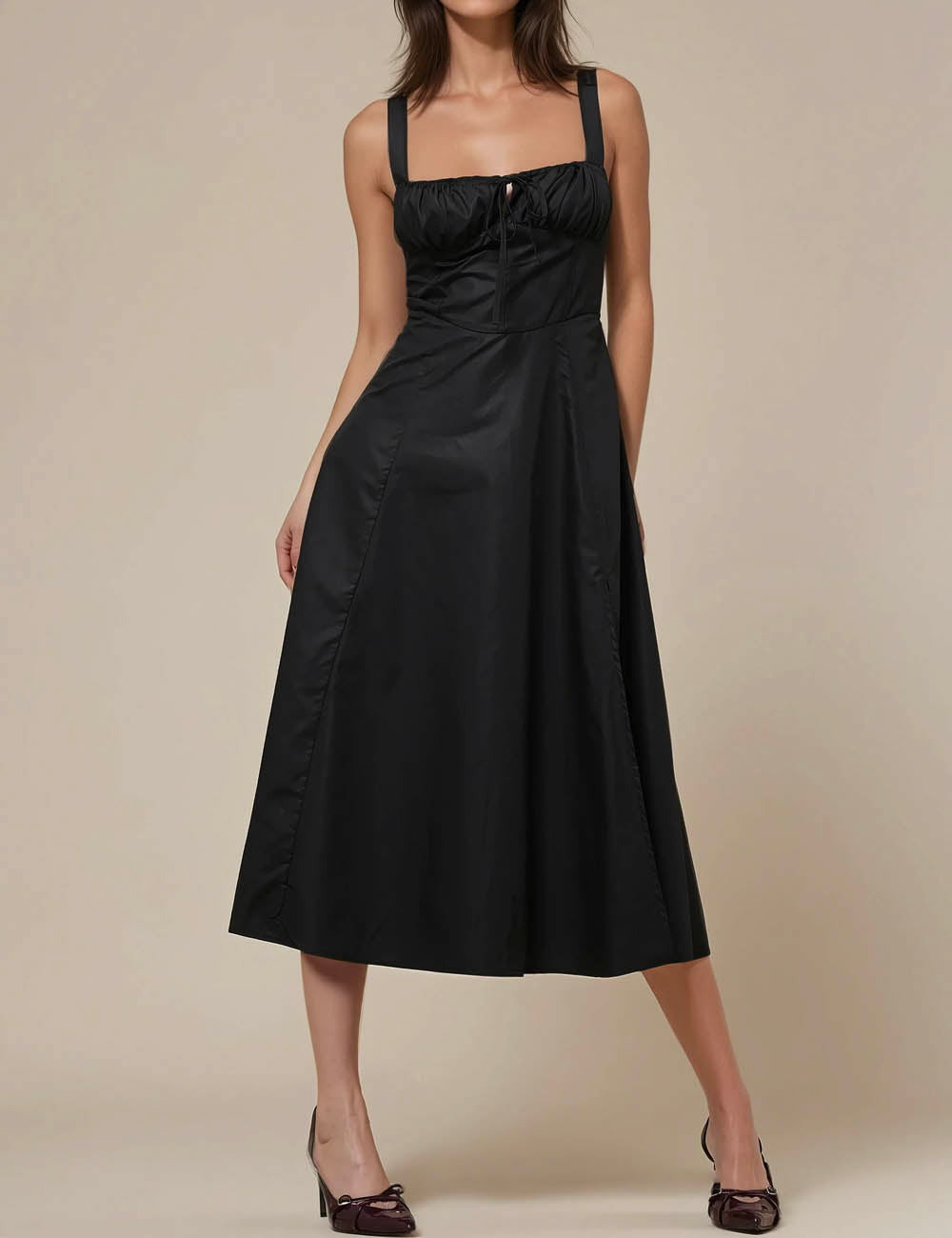 Ladies Two Shoulder Solid Color Daily Midi Dress SKD50243
