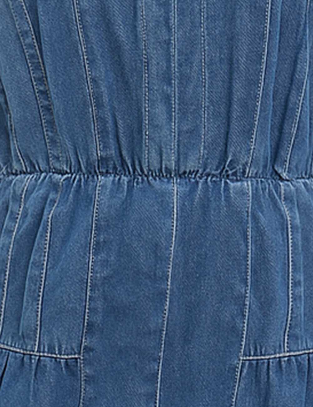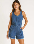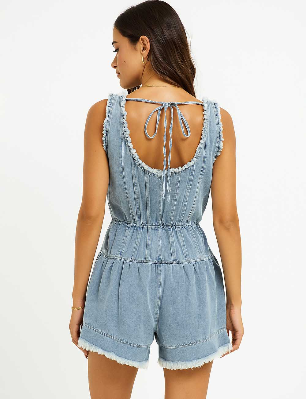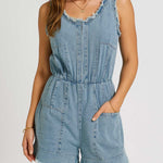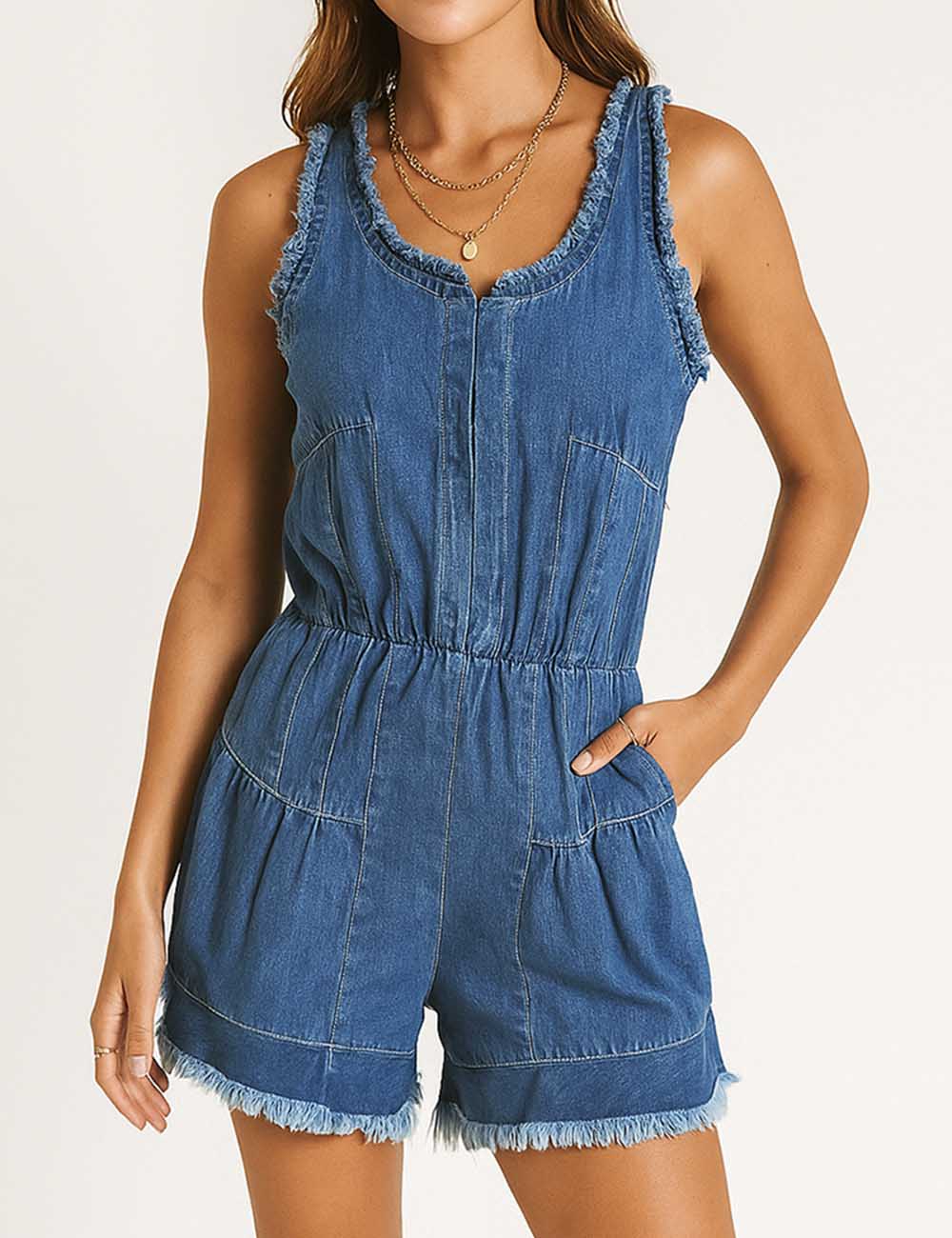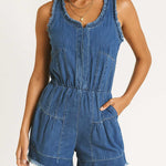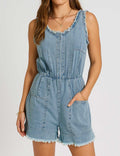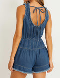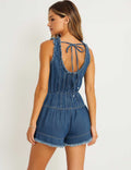 Ladies U-Neck Pleated Sleeveless Denim Romper SKJ5KC50