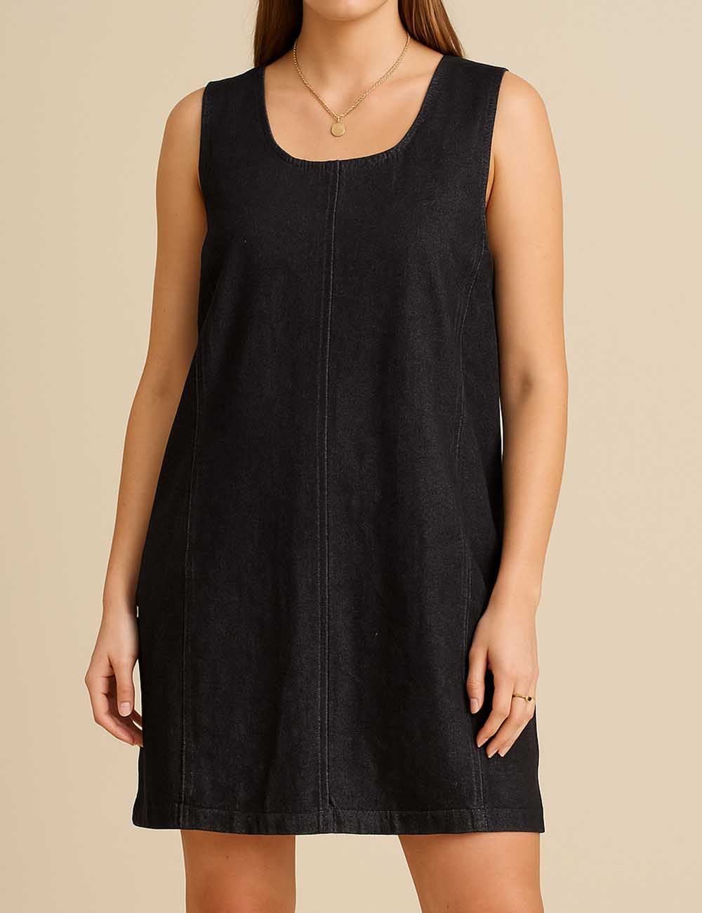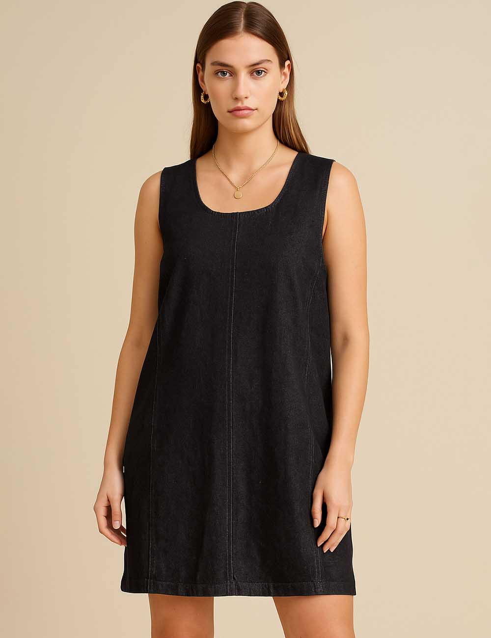Ladies U-Neck Zipper Back Sleeveless Denim Mini Dress