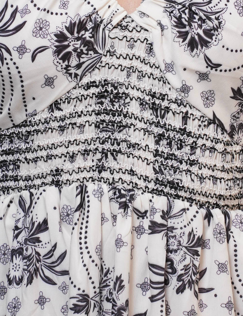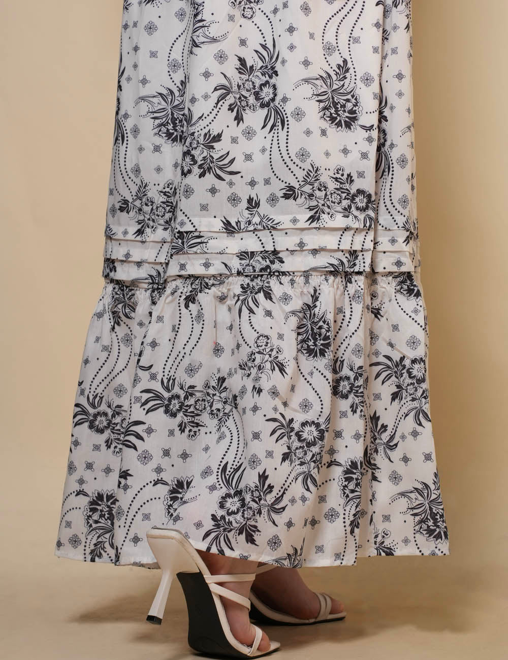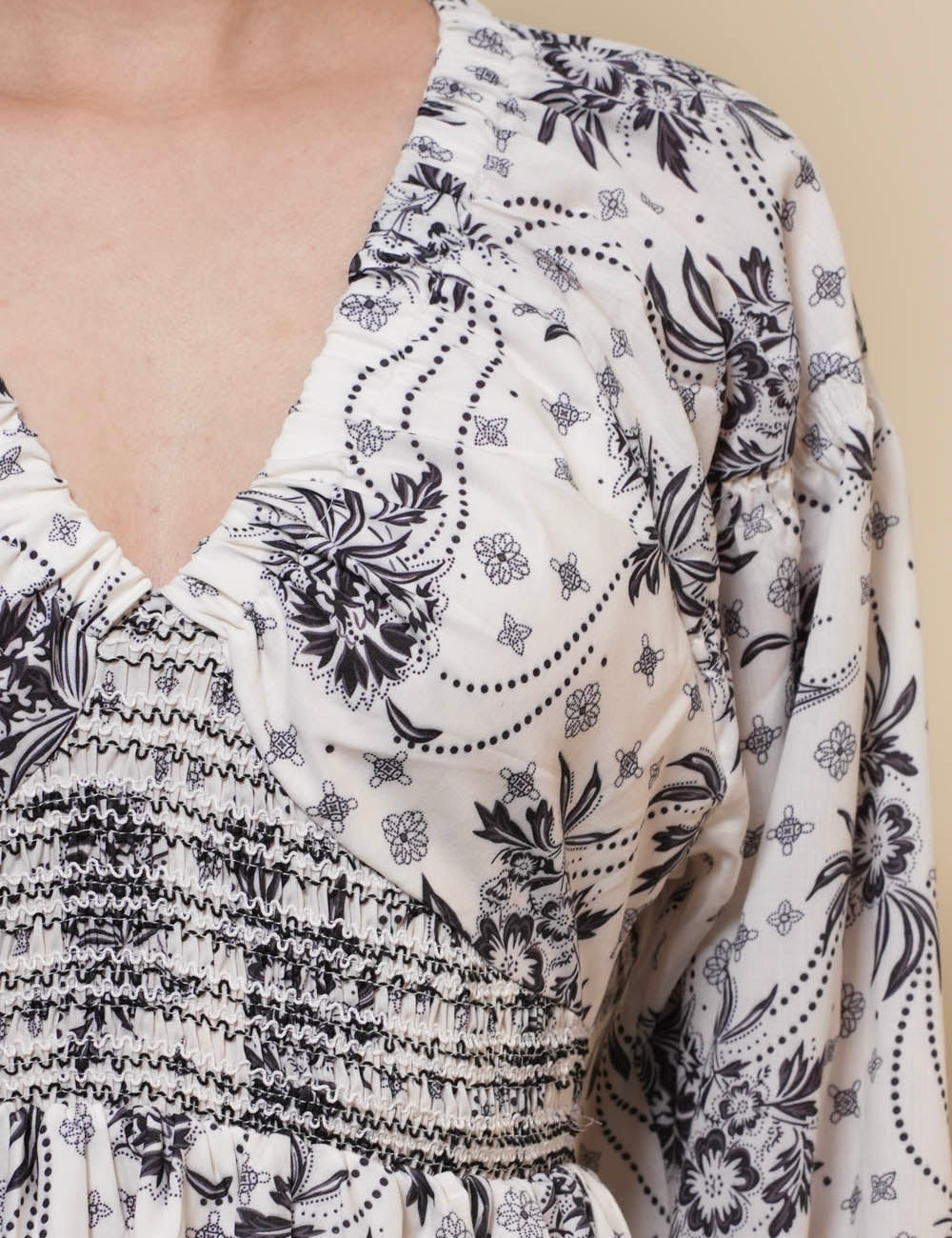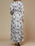 Ladies V-Neck Bubble Sleeves Floral Maxi Dress SKD50414
