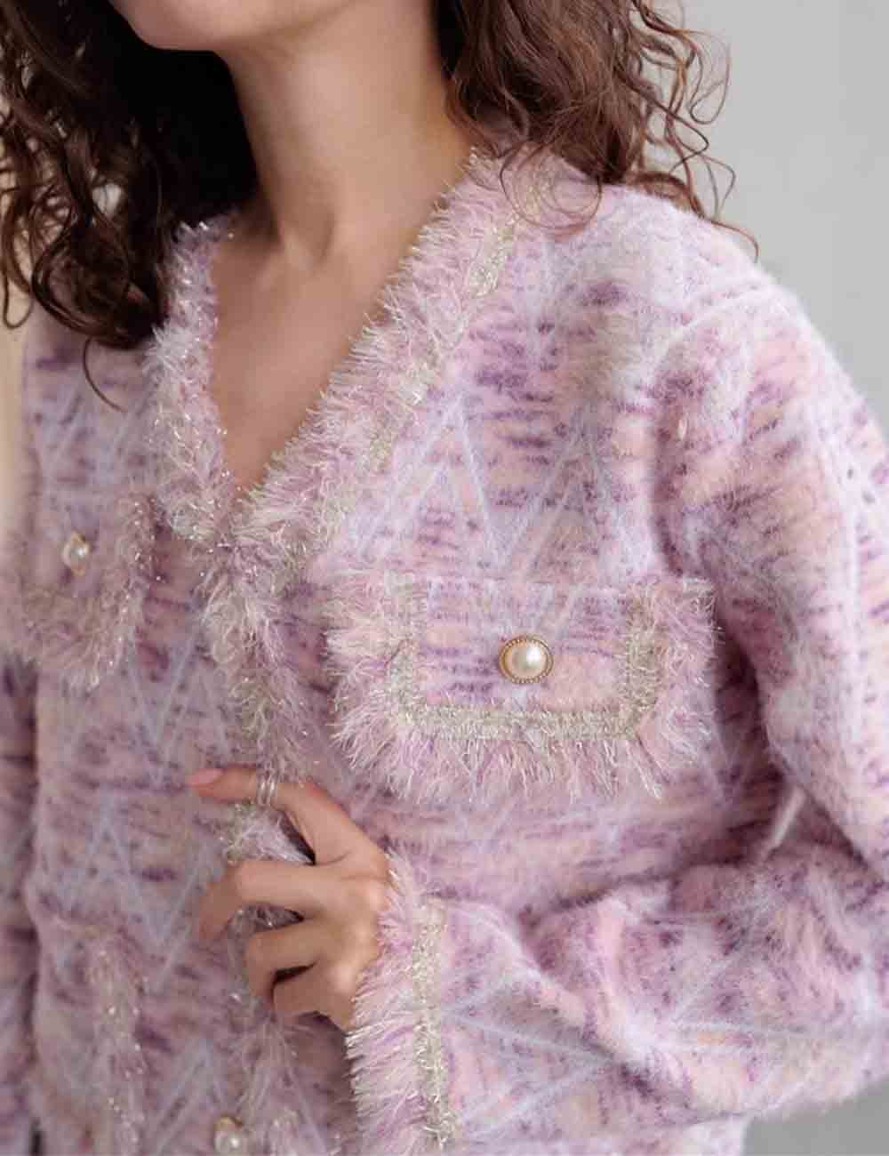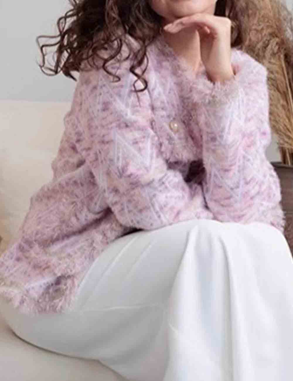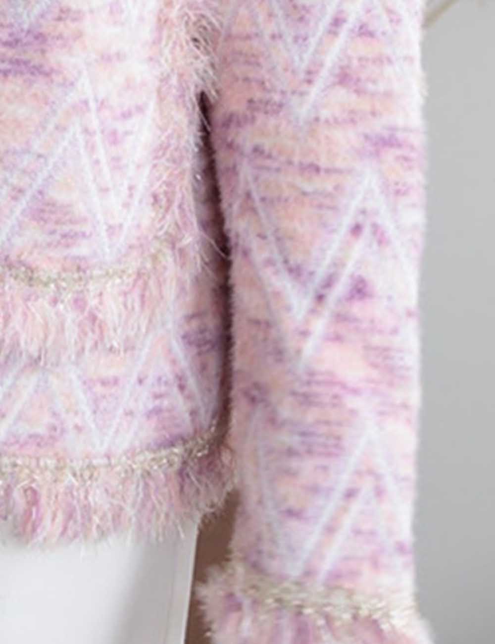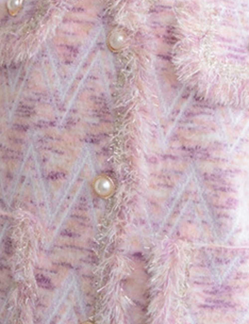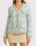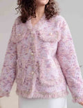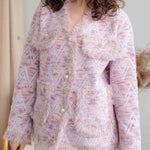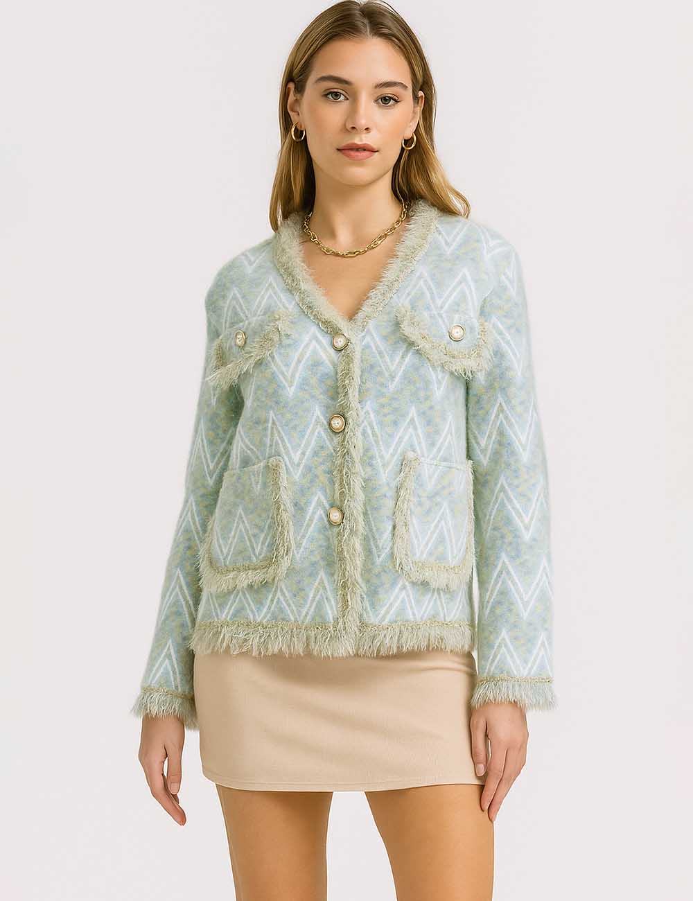 Ladies V-Neck Button Pocket Fringe Sweater Blazer Coat