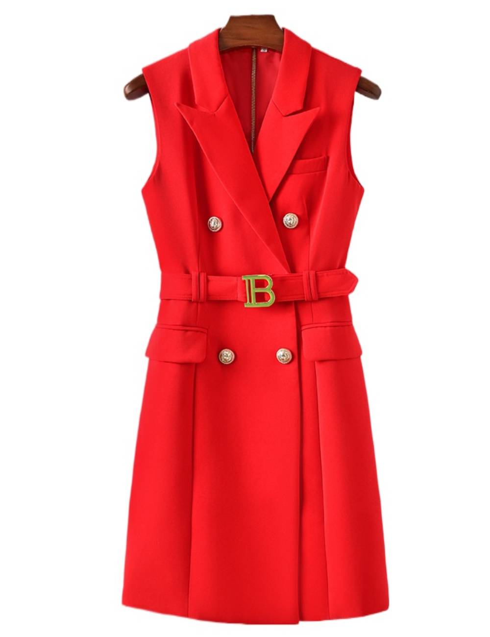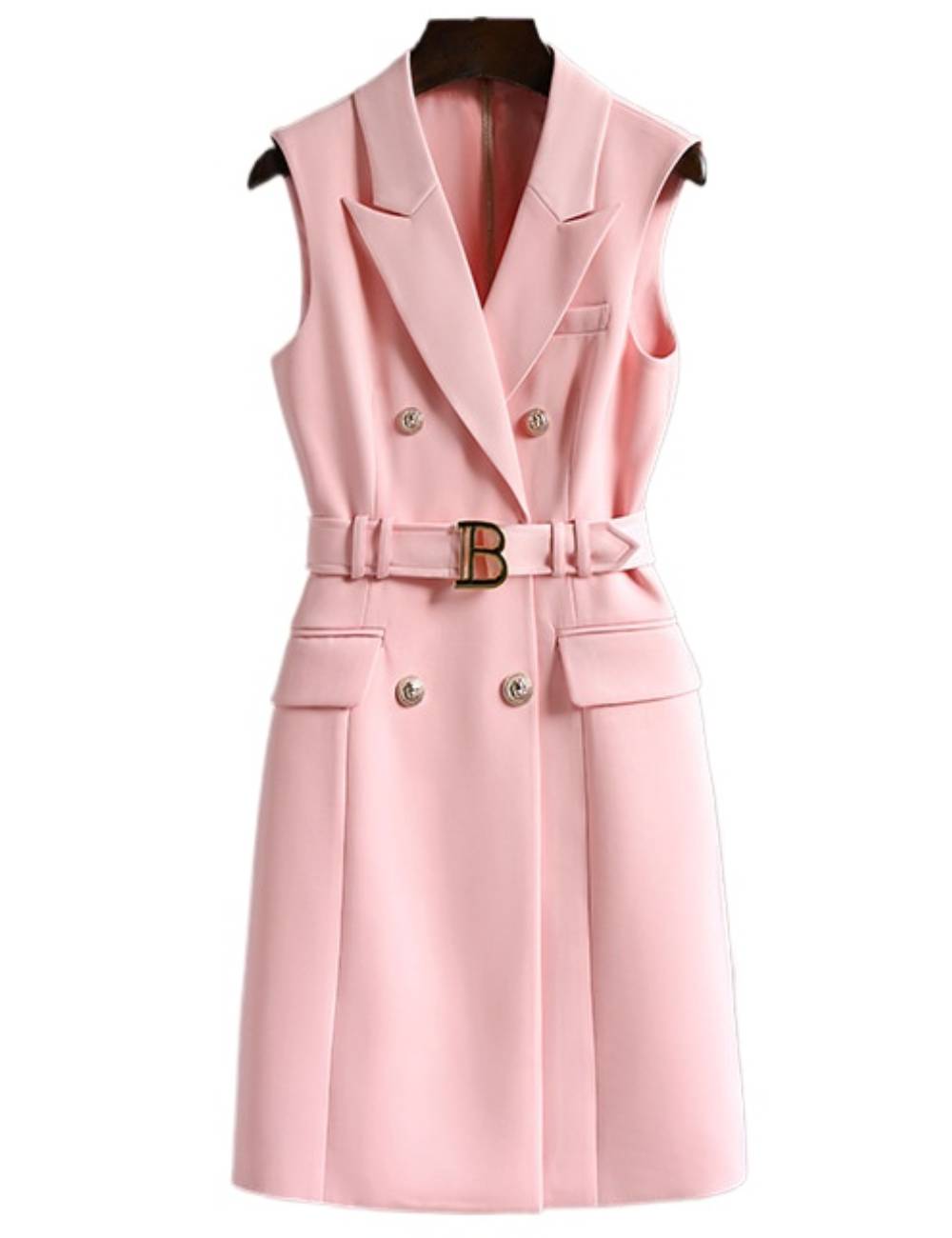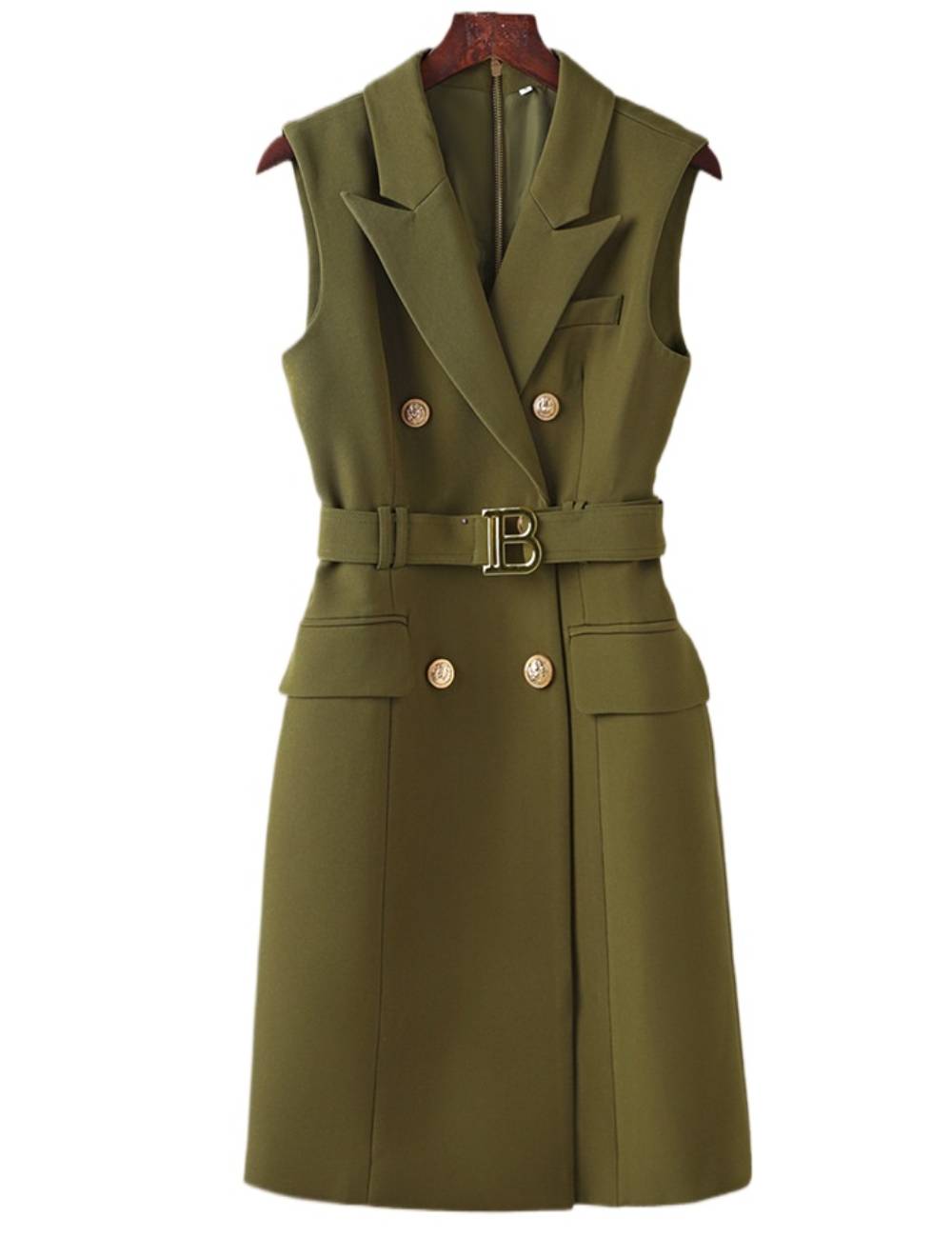 Ladies V-Neck Button Sleeveless Trench Coat SKD50434