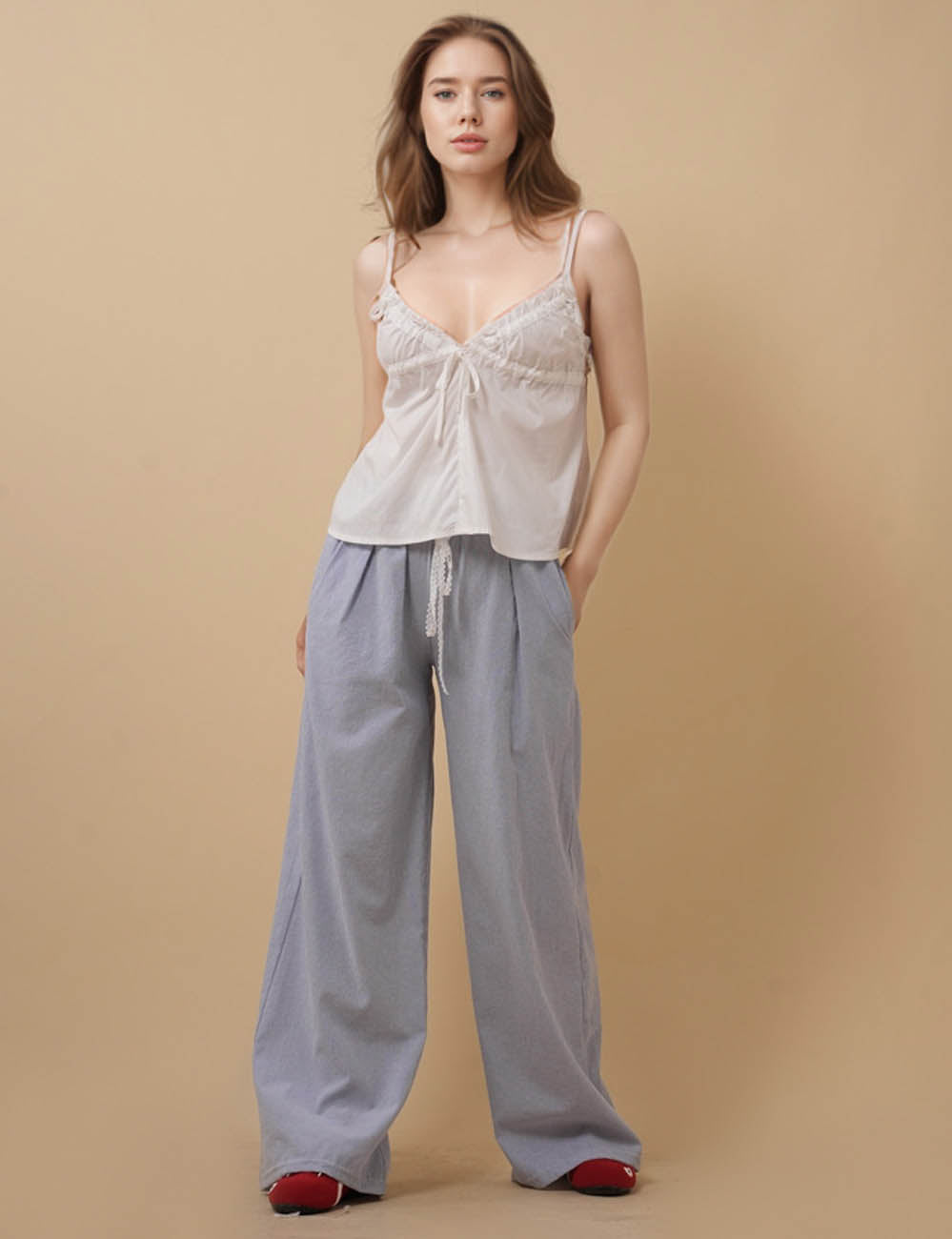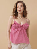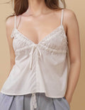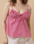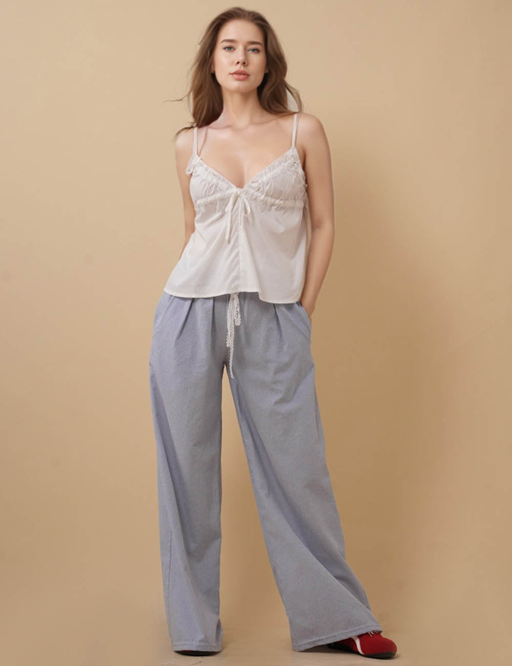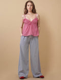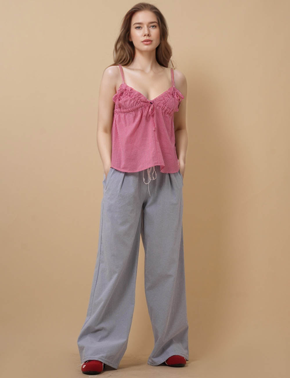 Ladies V-Neck Check Ruffle Bow Drawstring Cami Top 8SKT51337