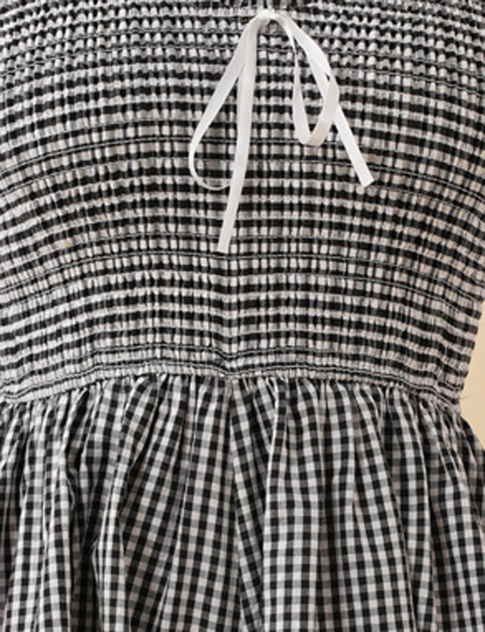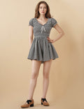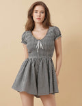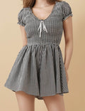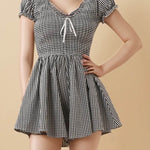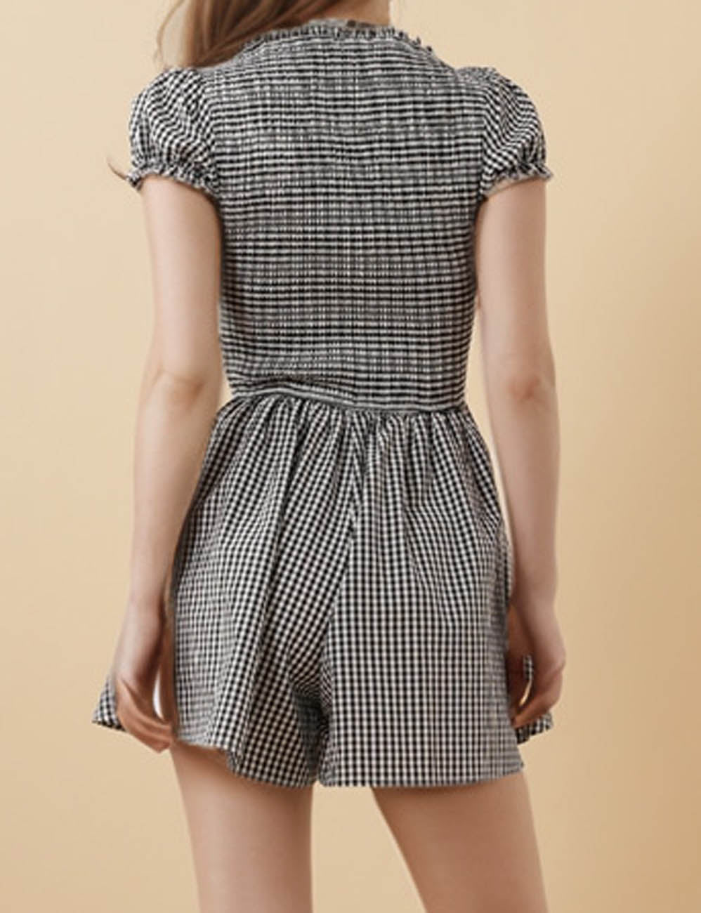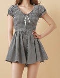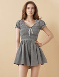 Ladies V-Neck Checked Short Sleeves Smocked Romper 8SKD5M82
