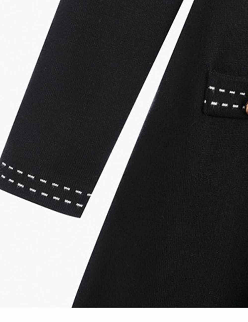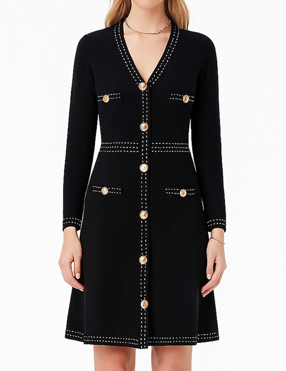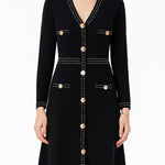 Ladies V-Neck Contrast Stitching Knit Midi Dress