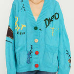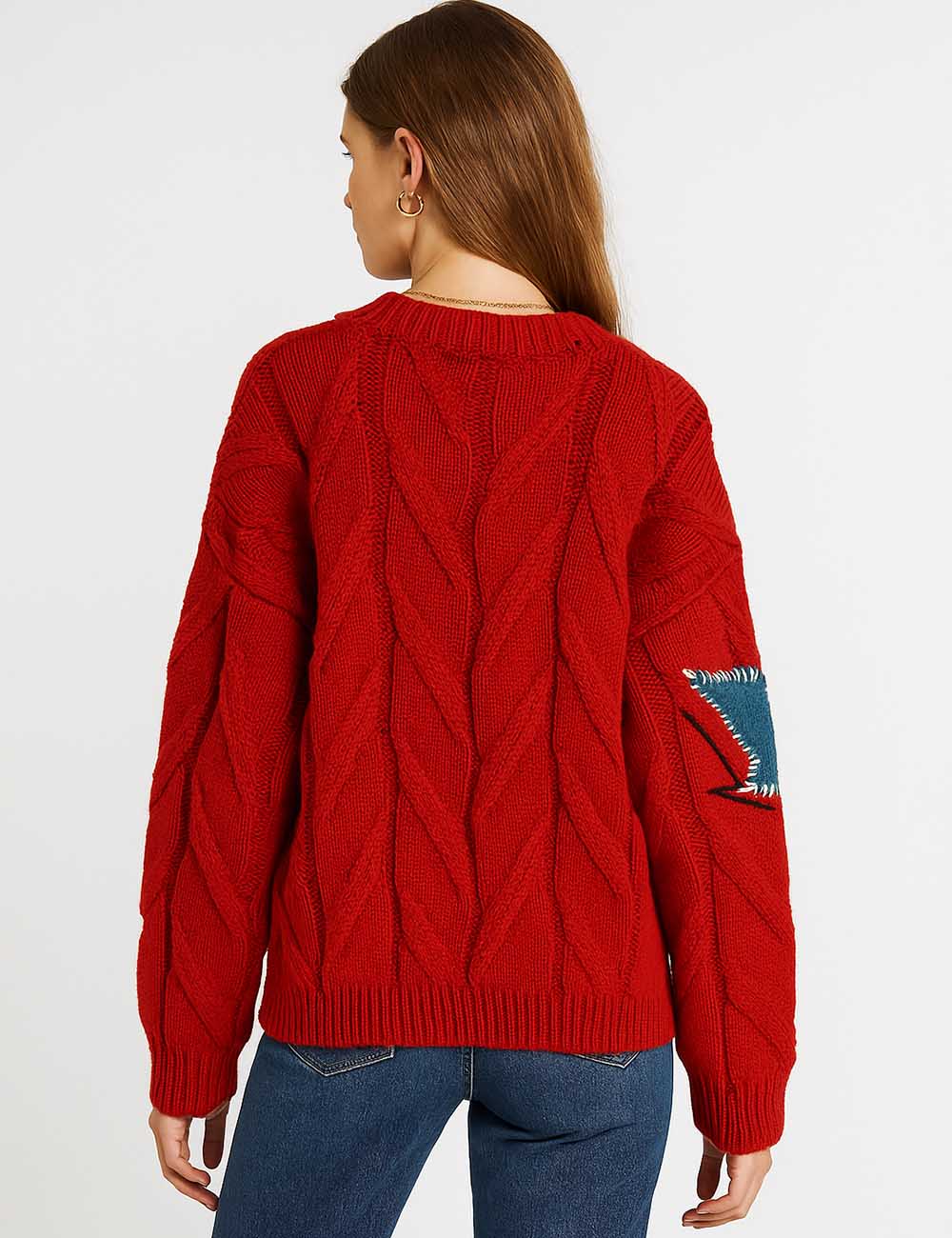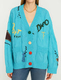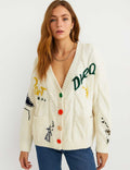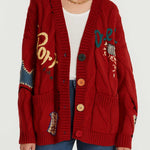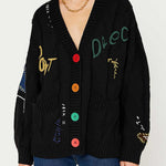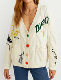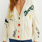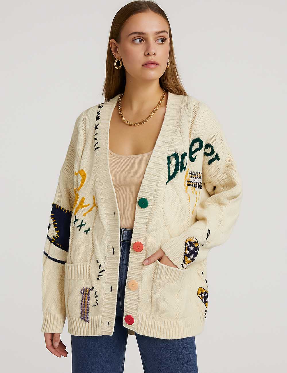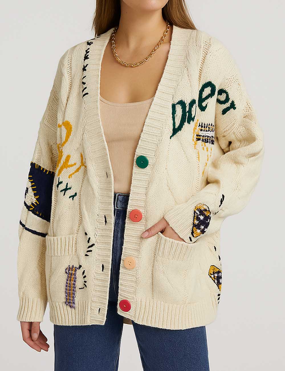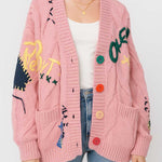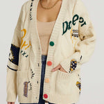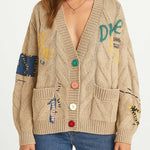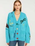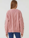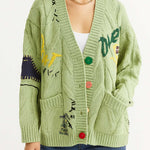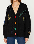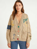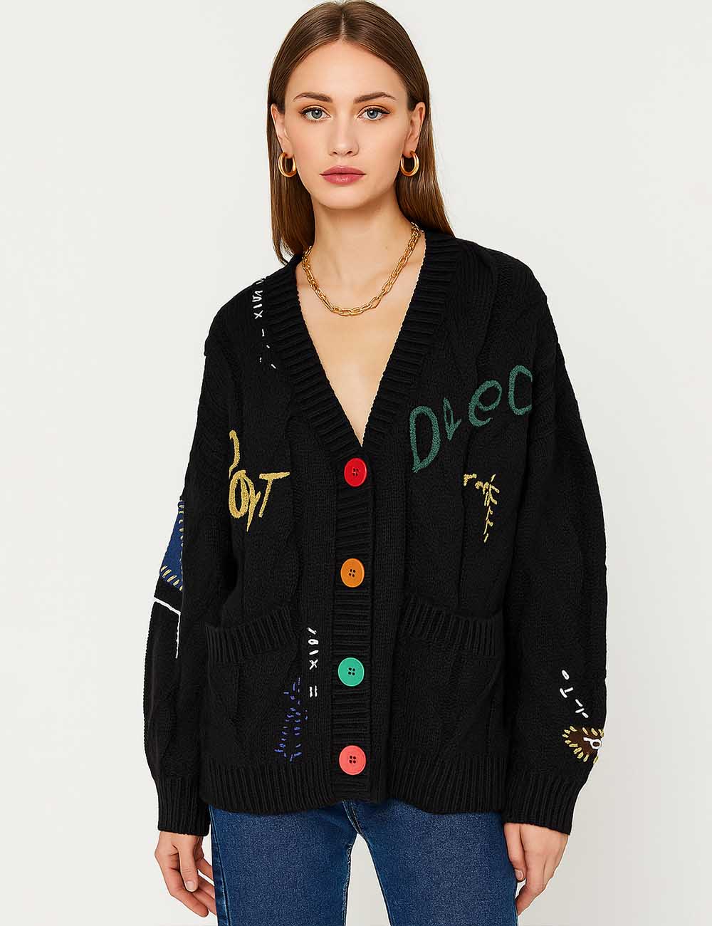 Ladies V-Neck Embroidery Sweater Button Long Sleeves Cable Knit Cardigan