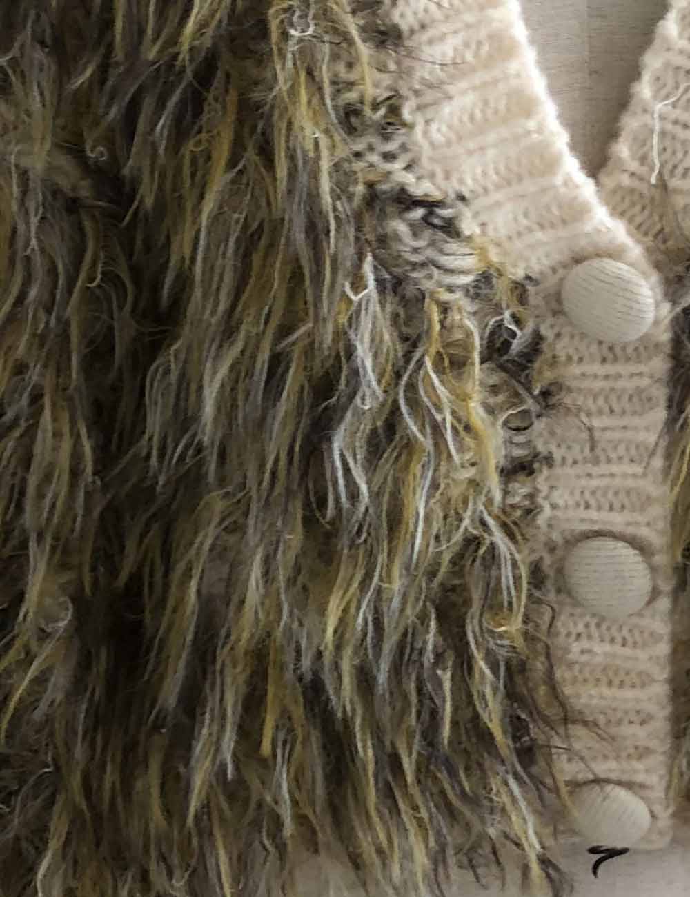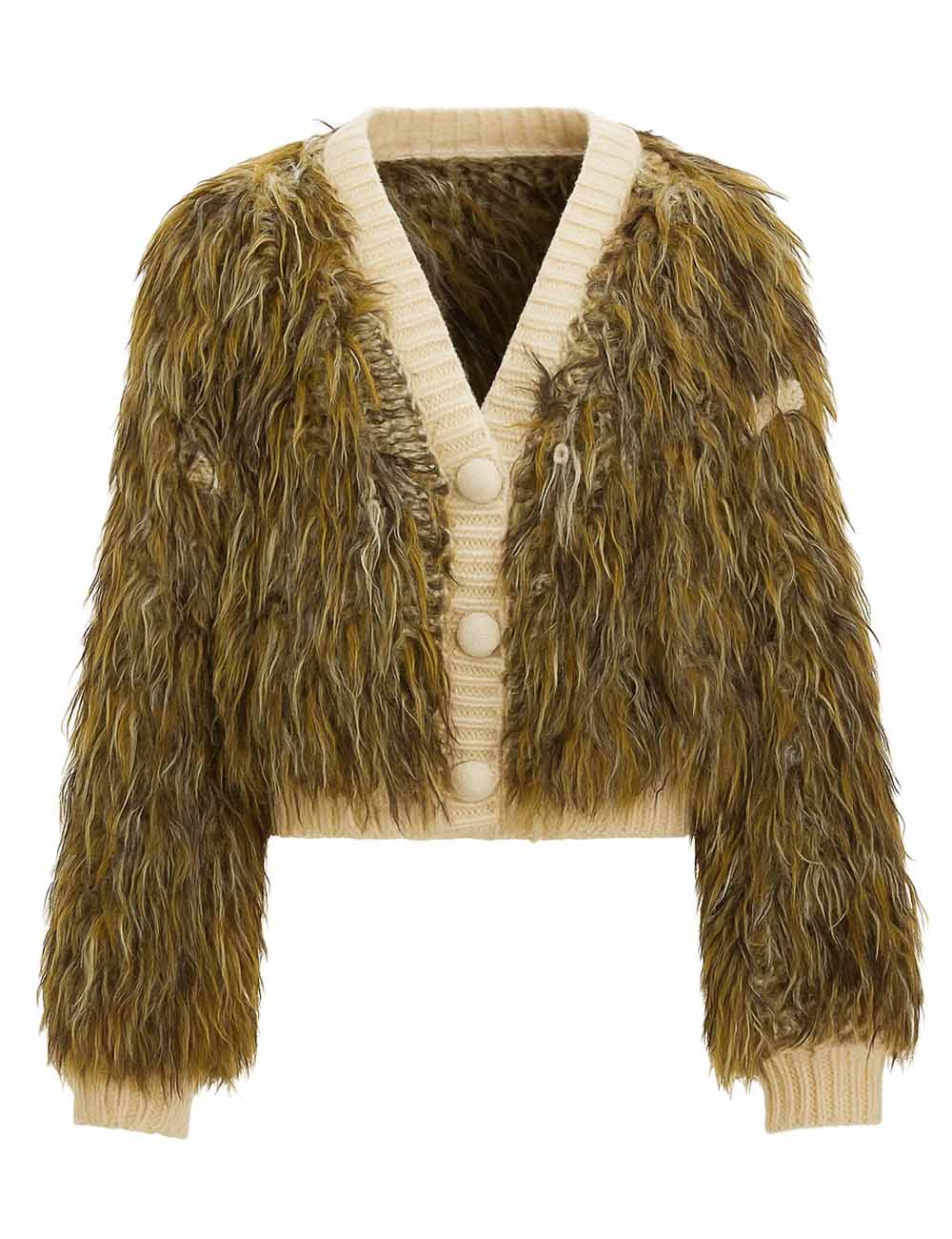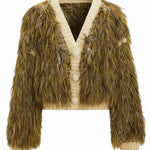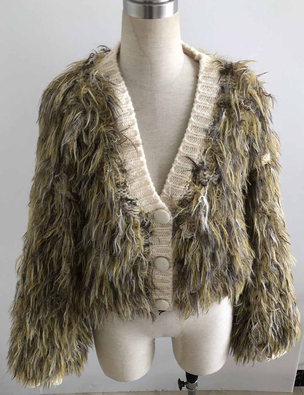 Ladies V-Neck Faux Fur Shaggy Knit Cardigan