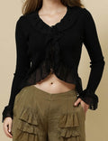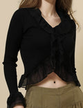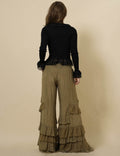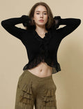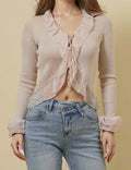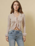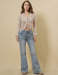 Ladies V-Neck Flare Sleeves String Tie Blouse SKT50165