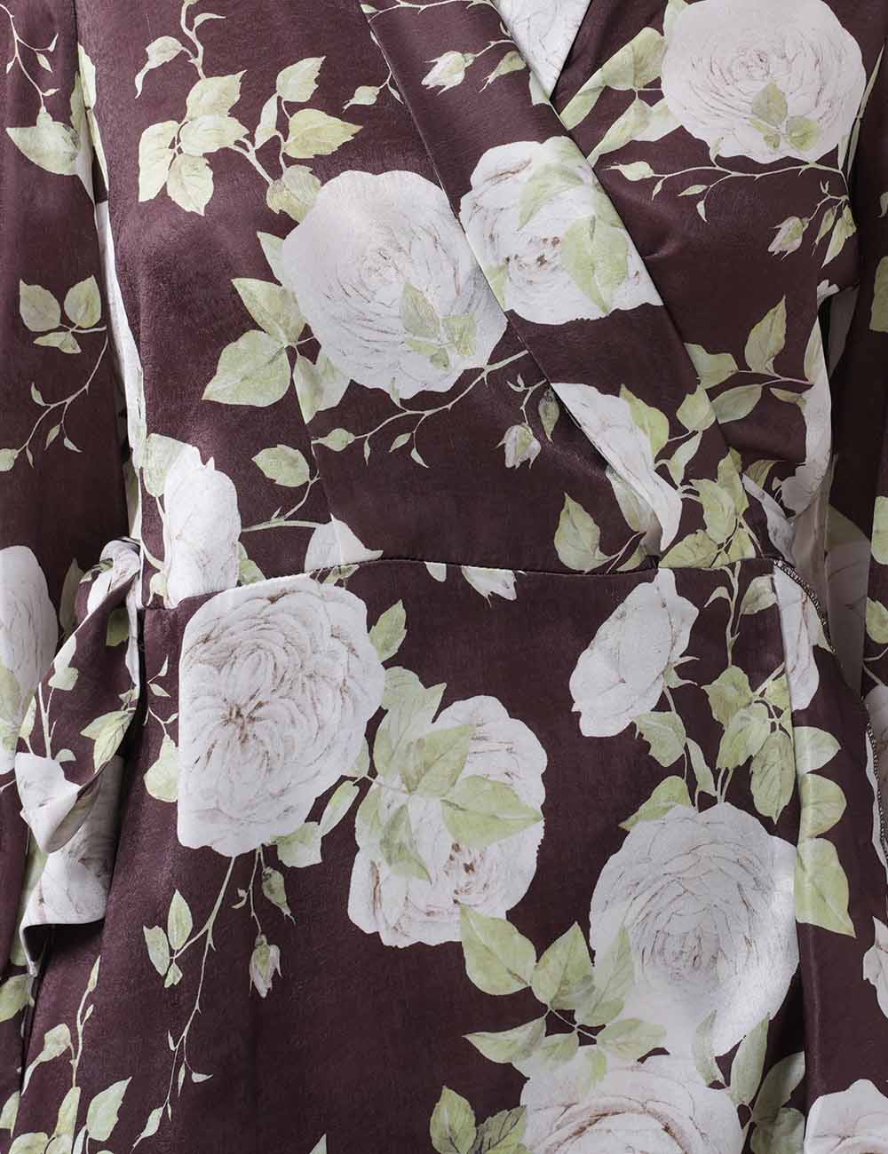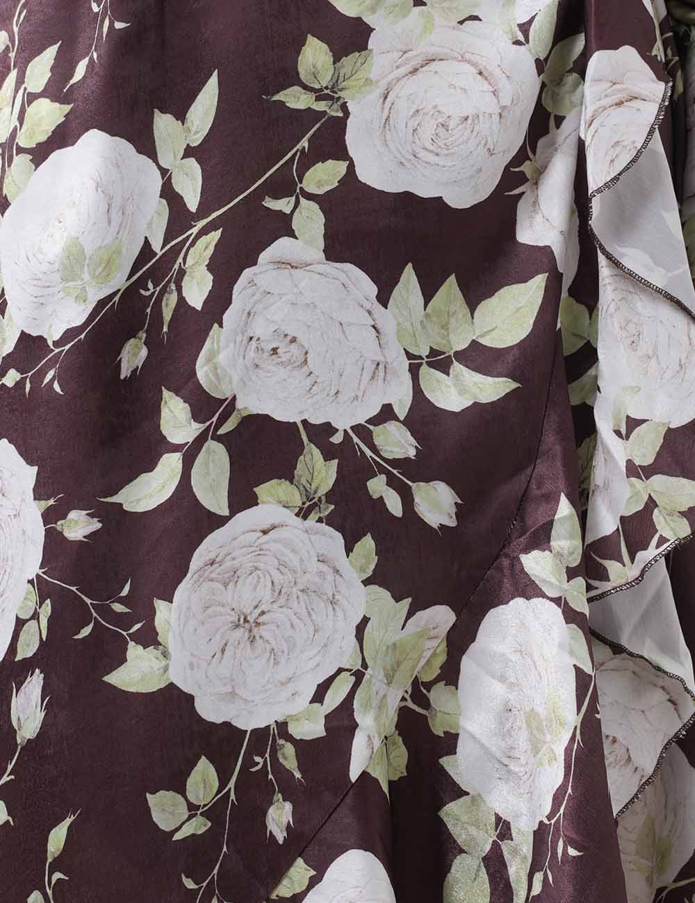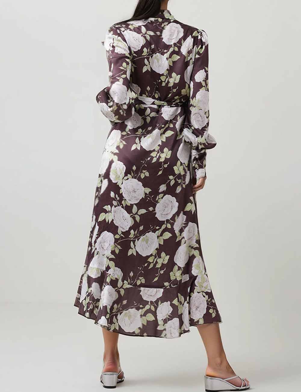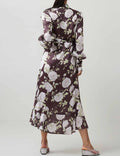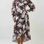 Ladies V-Neck Floral Print Ruffle Wrap Maxi Dress