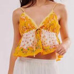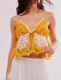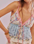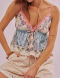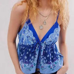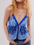 Ladies V-Neck Floral Print String Shoulder Cami Top