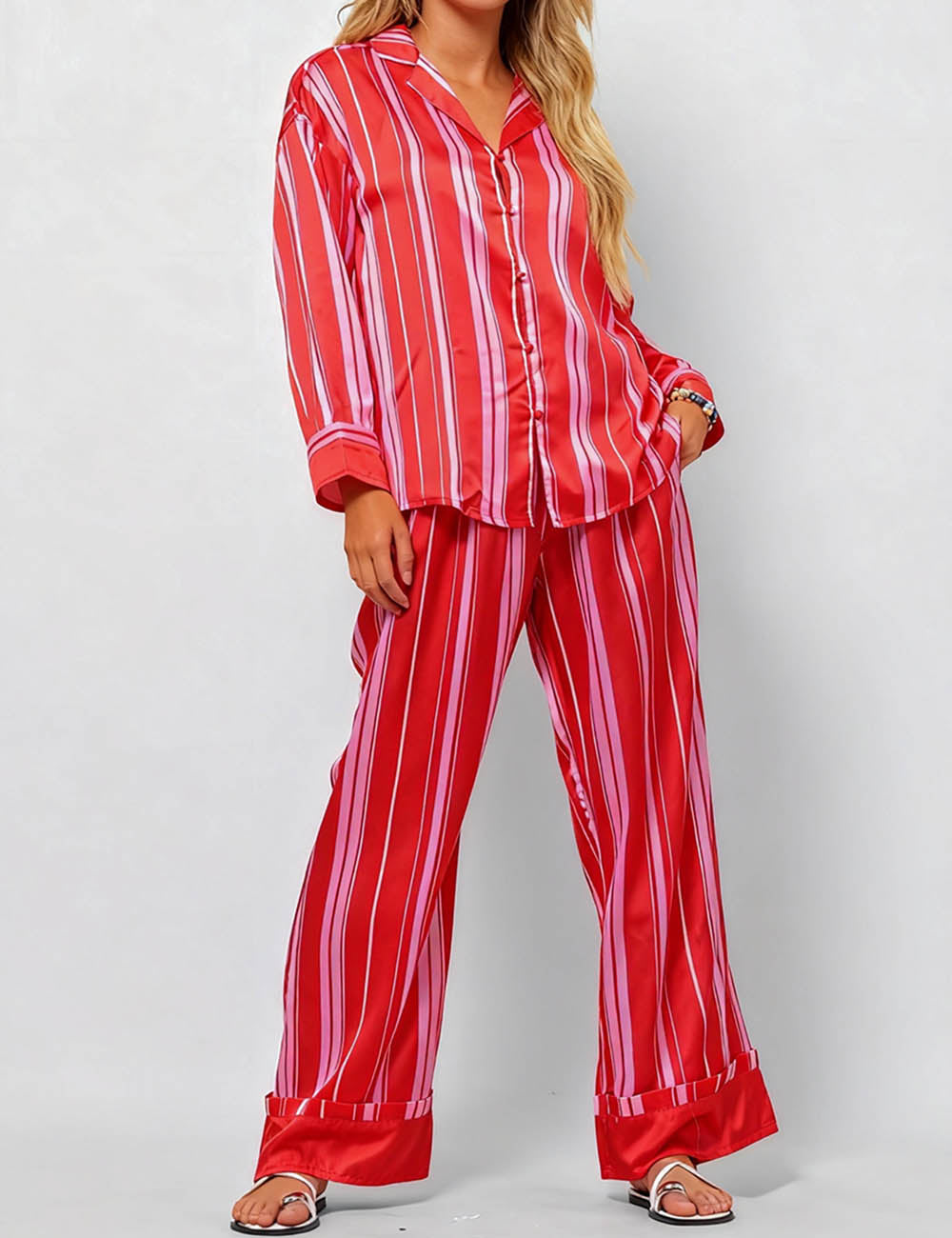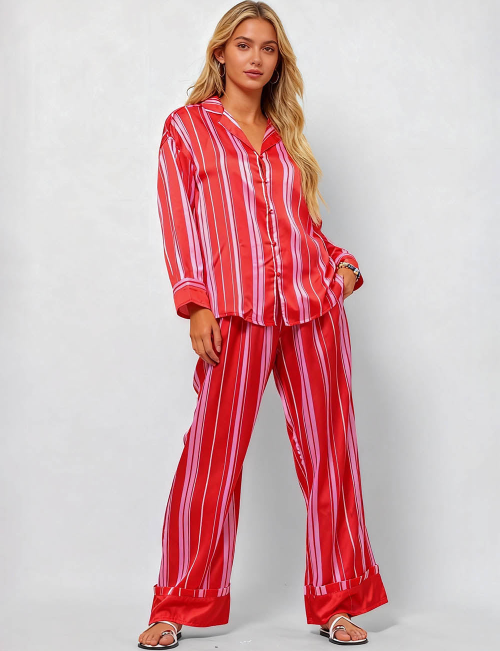 * Model wearing S size in apricot floral and red stripe