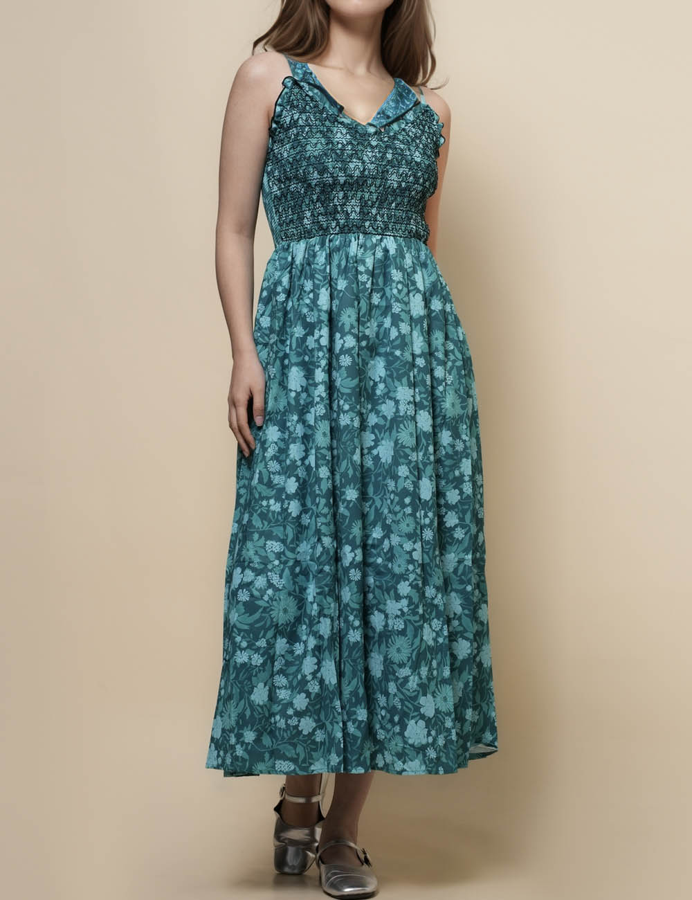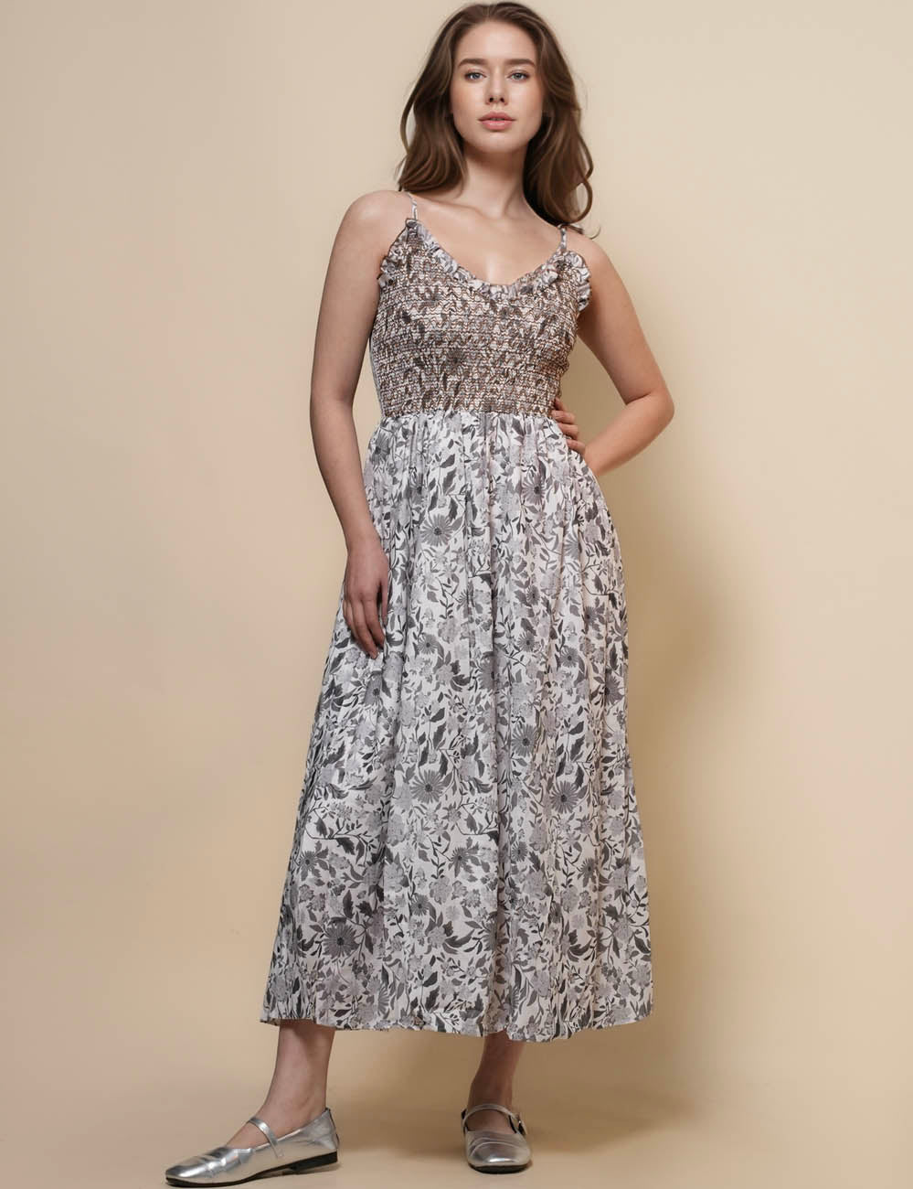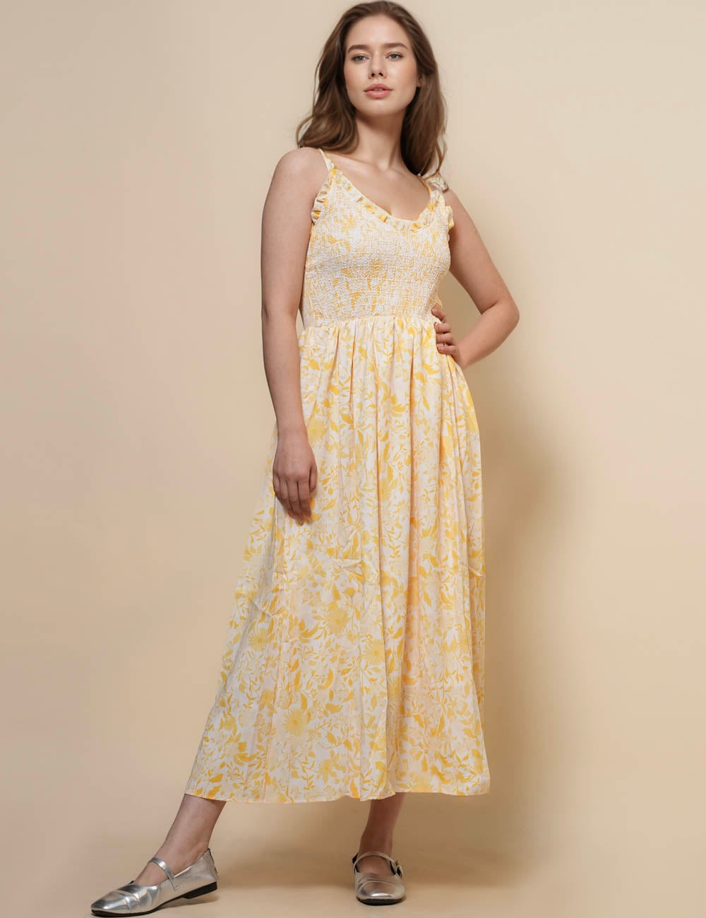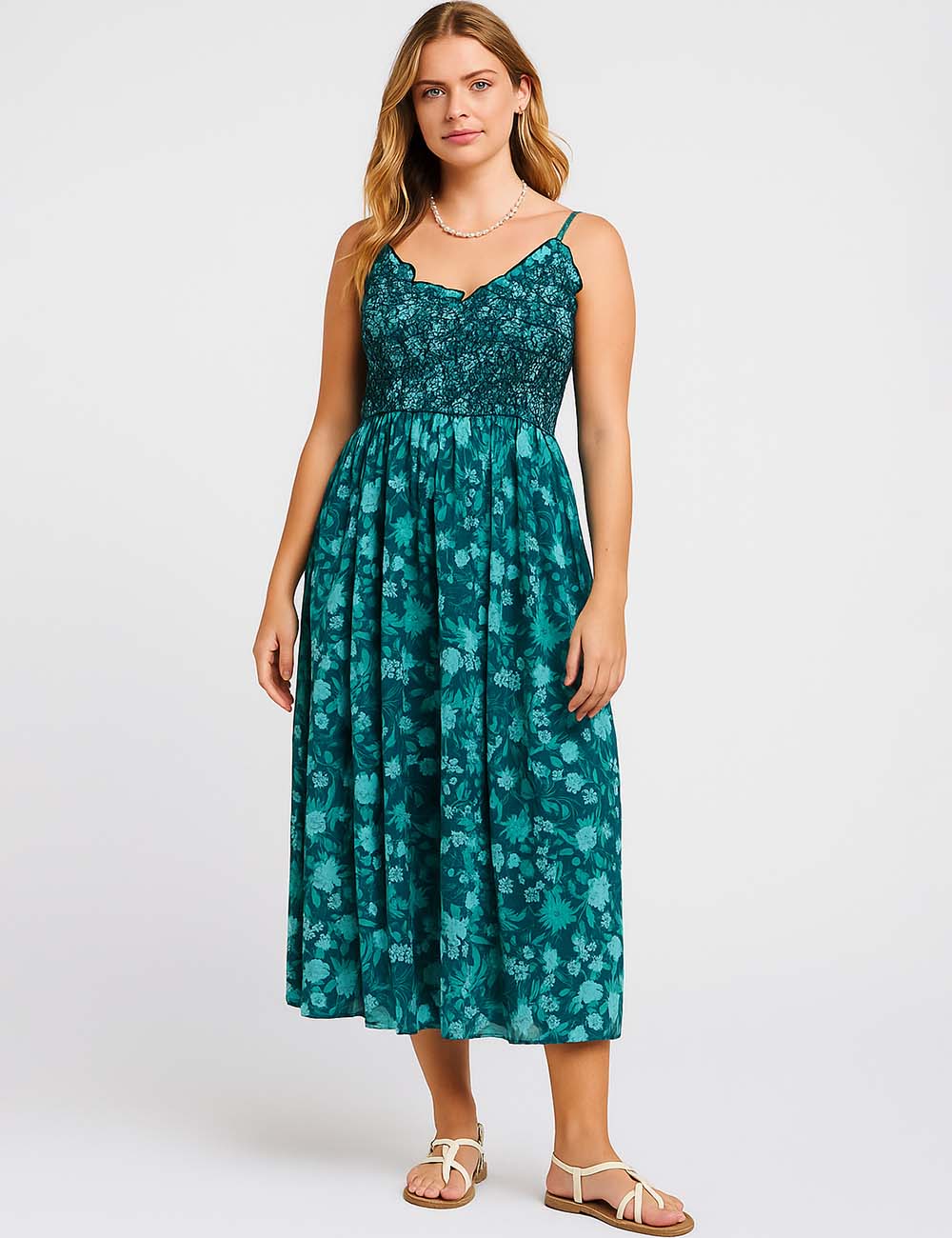 Ladies V-Neck Floral String Shoulder Maxi Dress SKD50415