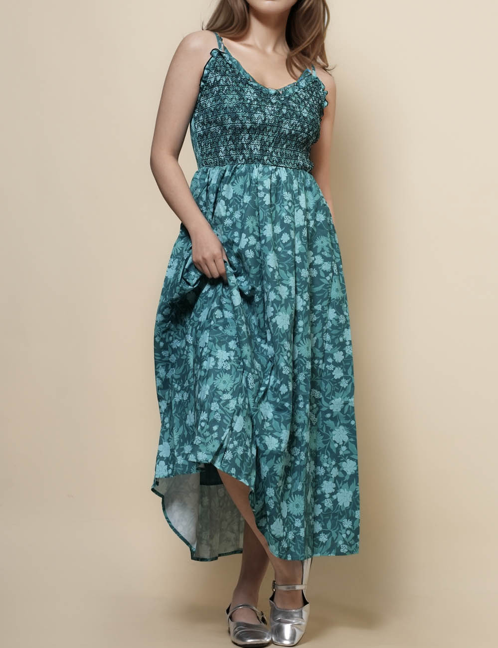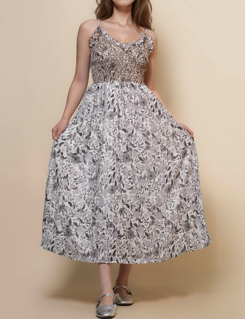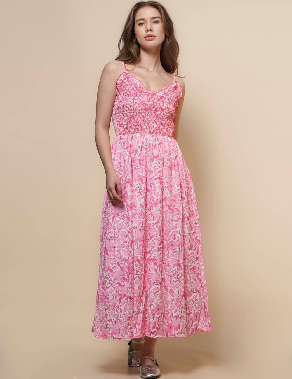 Ladies V-Neck Floral String Shoulder Maxi Dress SKD50415