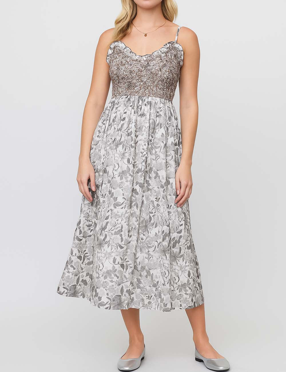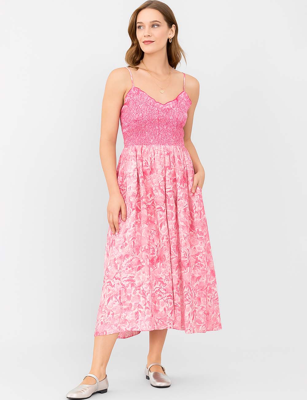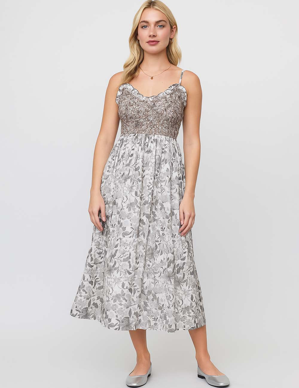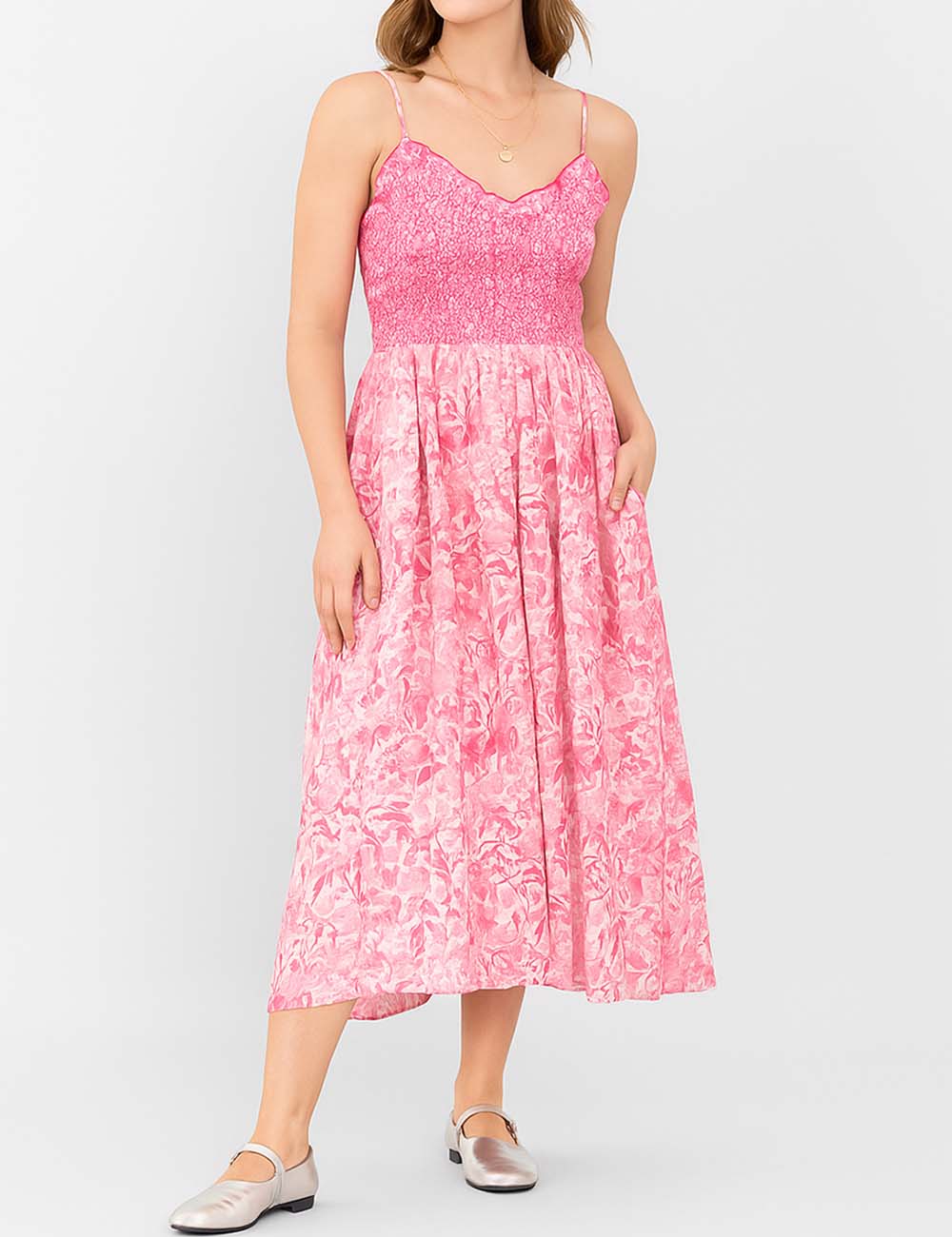 Ladies V-Neck Floral String Shoulder Maxi Dress SKD50415