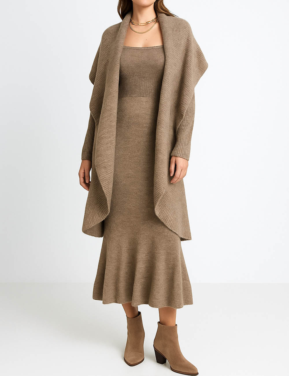 Ladies V-Neck Knit Cami Midi Dress & Crop Cardigan Set