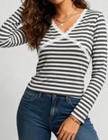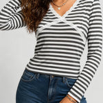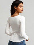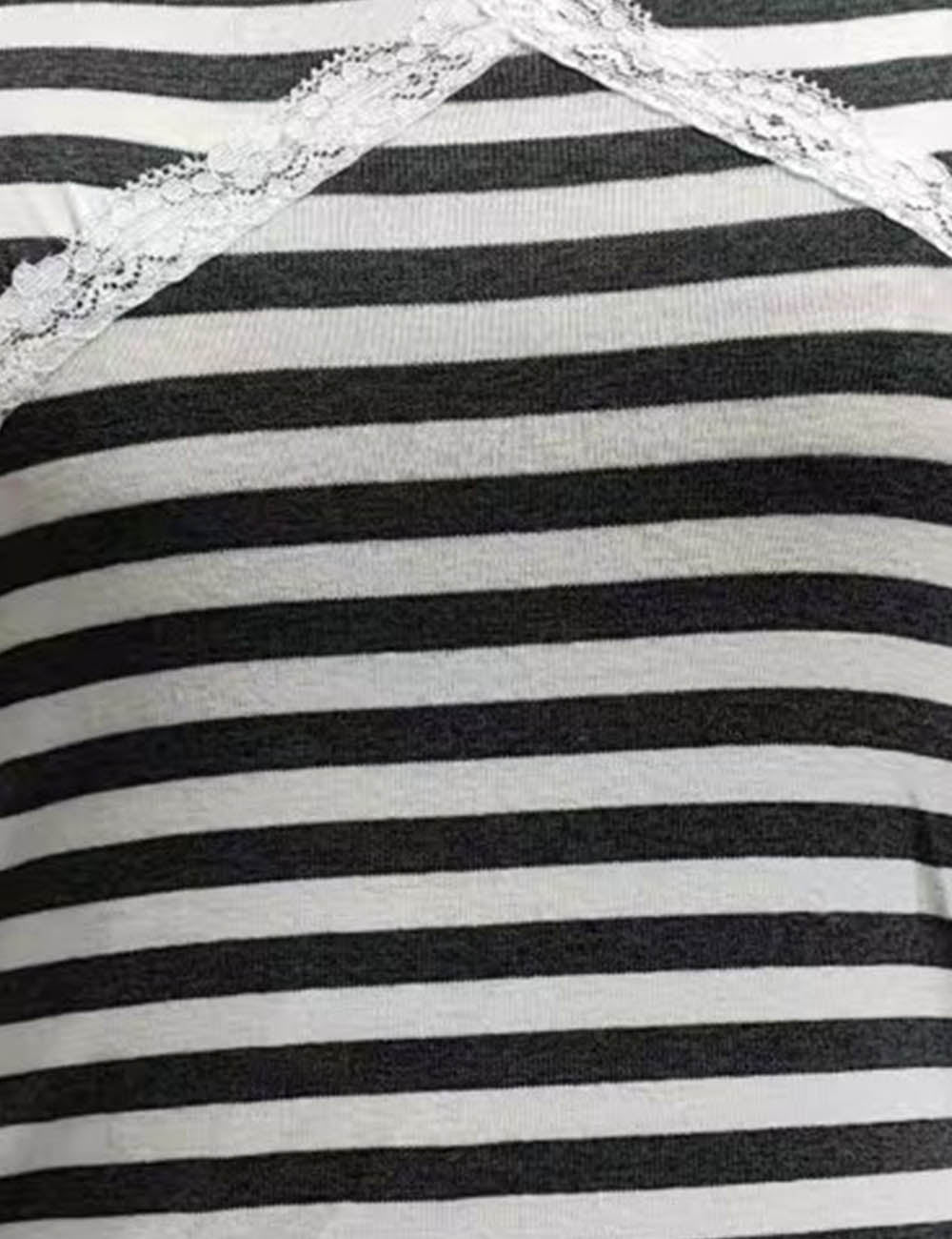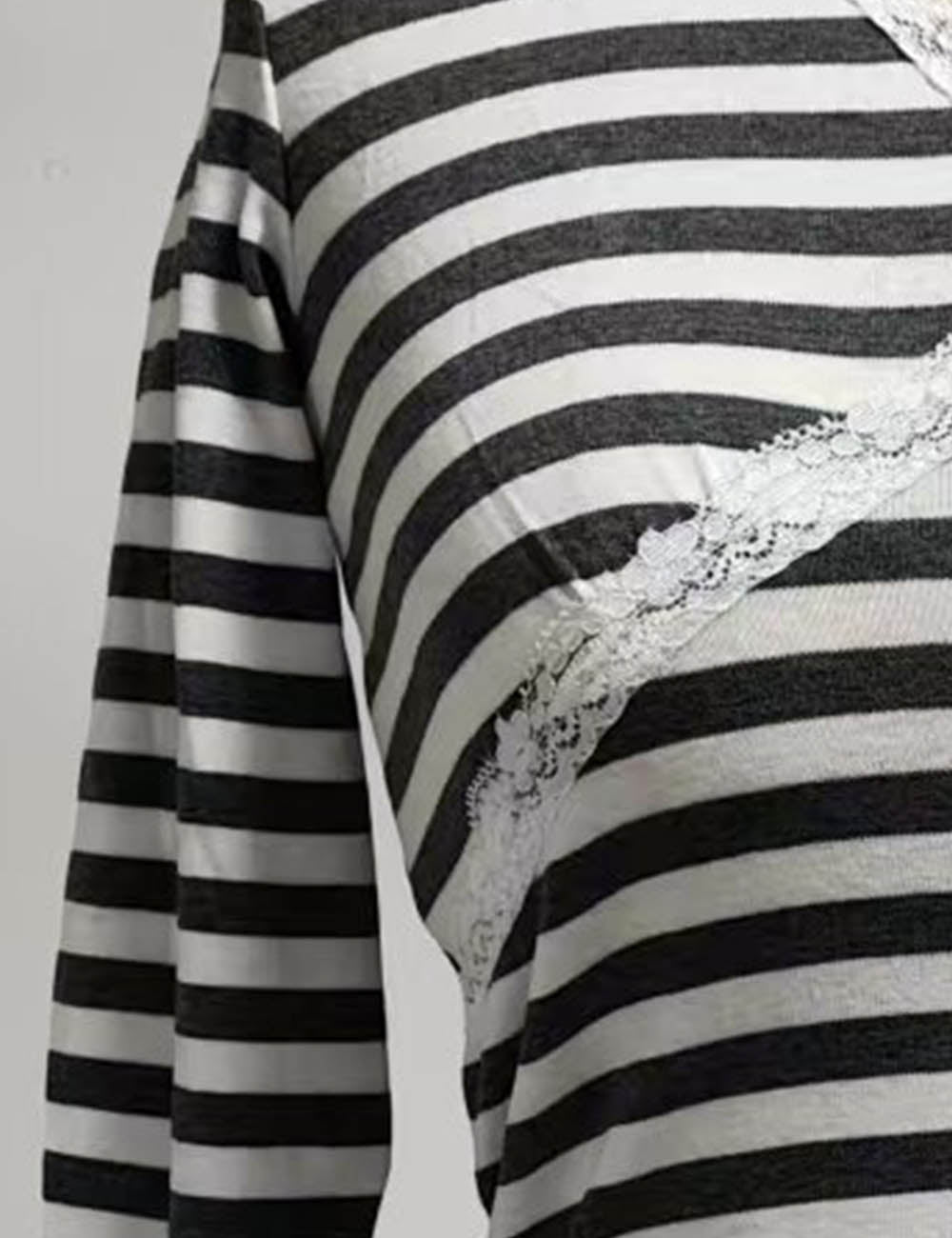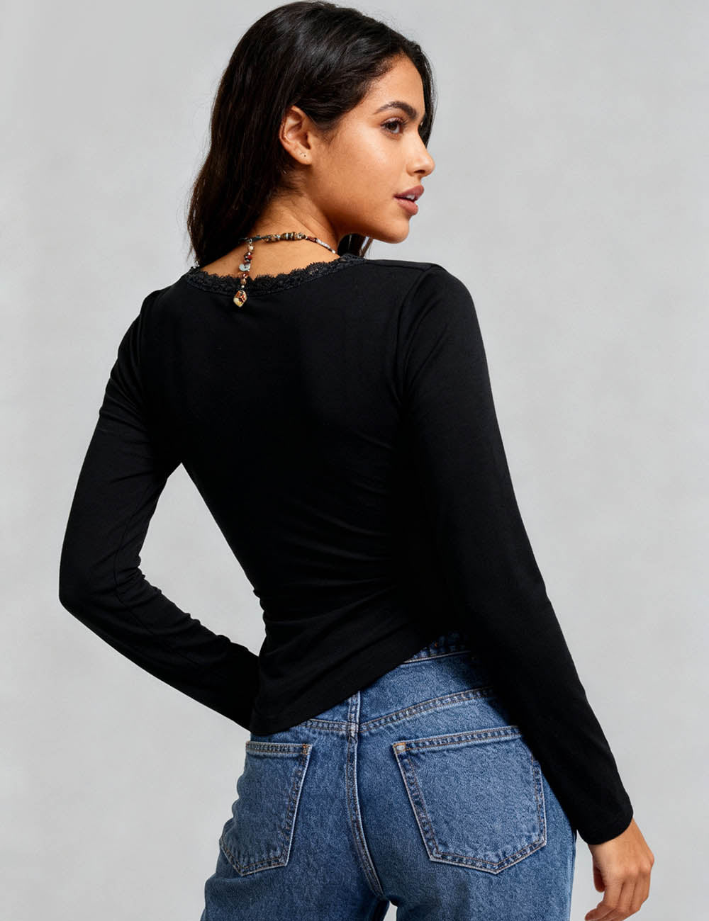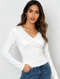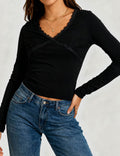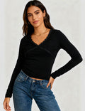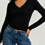 Ladies V-Neck Lace Trim Long Sleeves Top