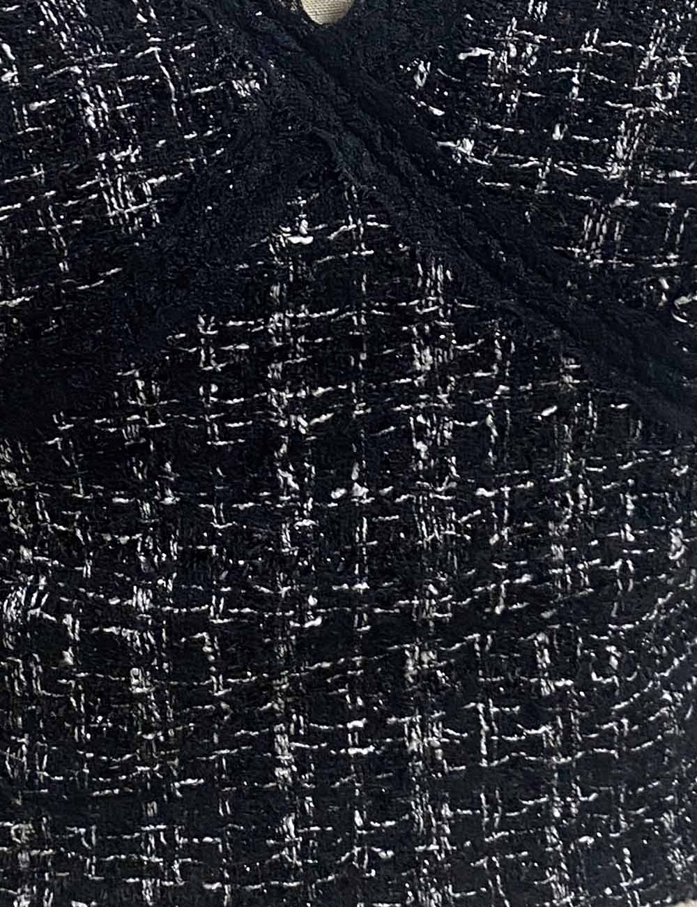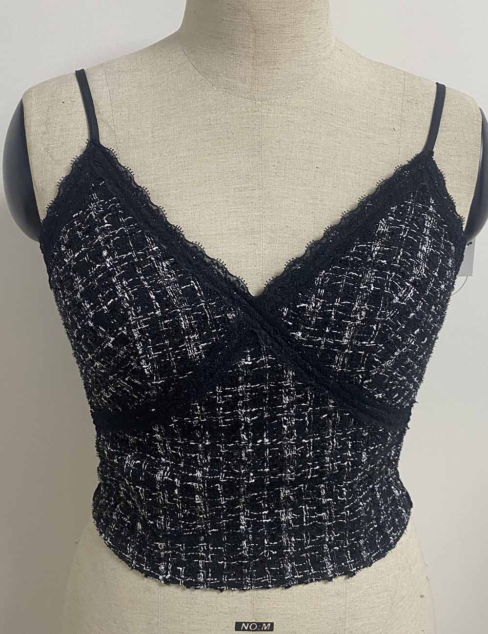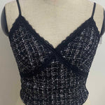 Ladies V-Neck Lace Trim Tweed String Shoulder Corset Top