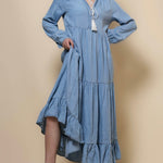 Ladies V-Neck Long Sleeeves Denim Midi Dress SKD50033