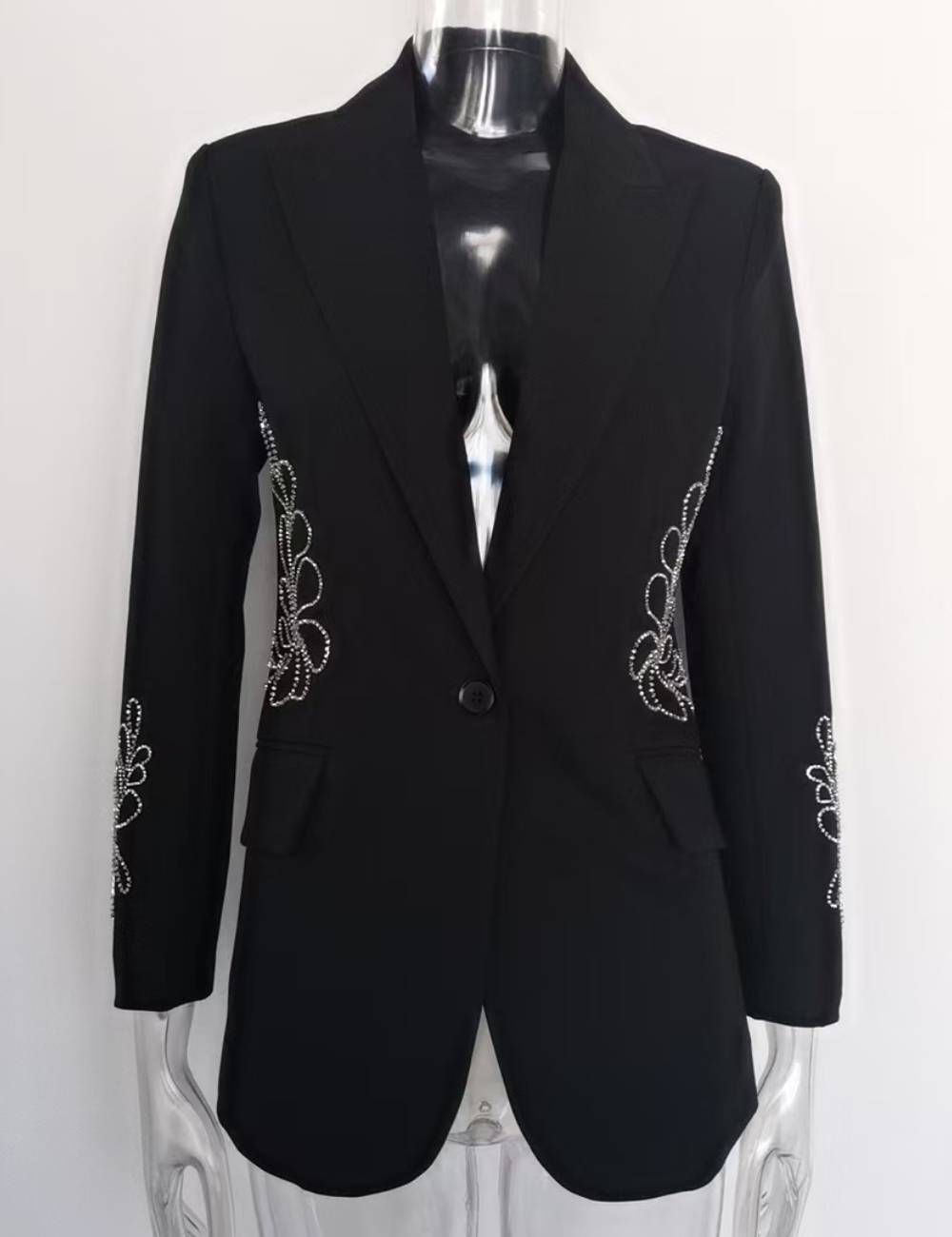 Ladies V-Neck Long Sleeves Beads Blazer SKT51046
