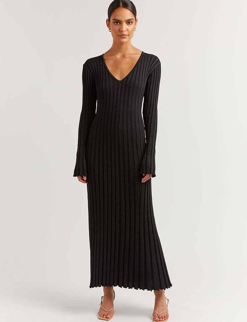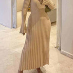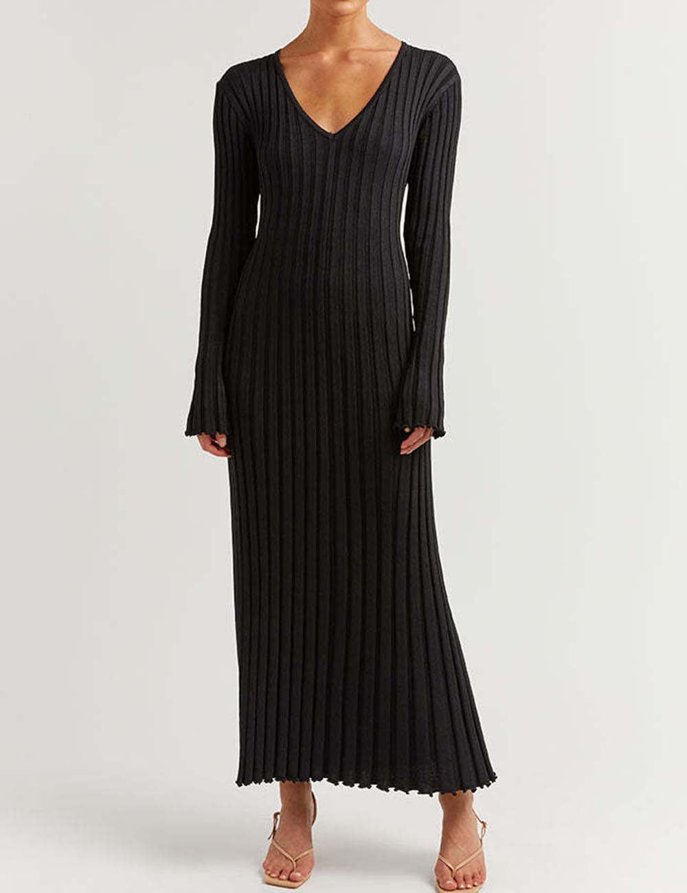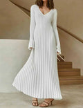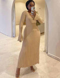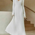 Ladies V-Neck Long Sleeves Large Hem Knit Dress 0728-1#