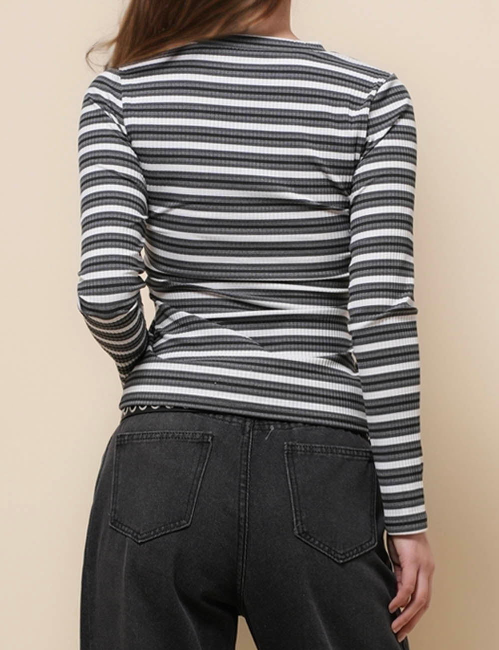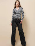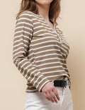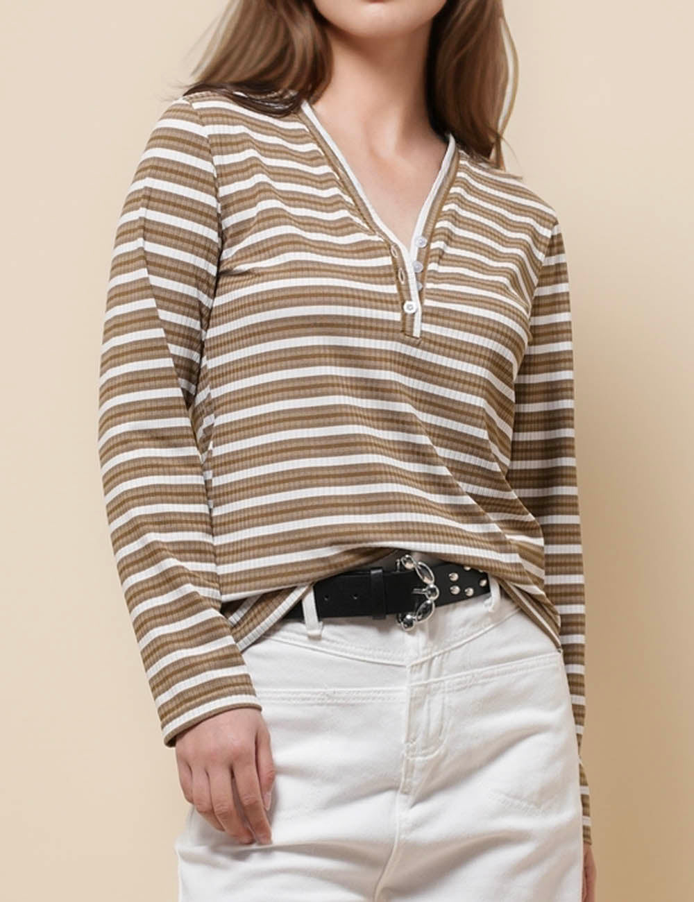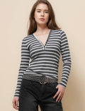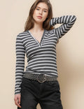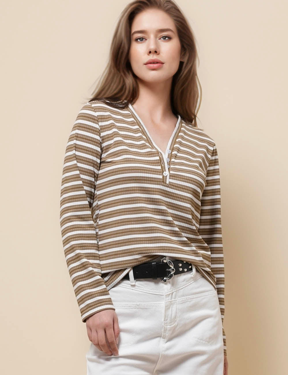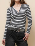 Ladies V-Neck Long Sleeves Striped Blouse SKT51294