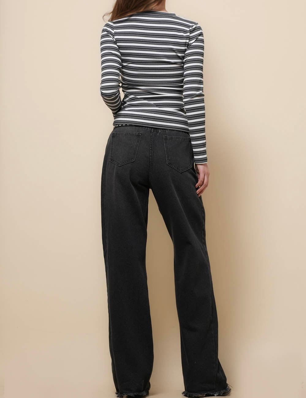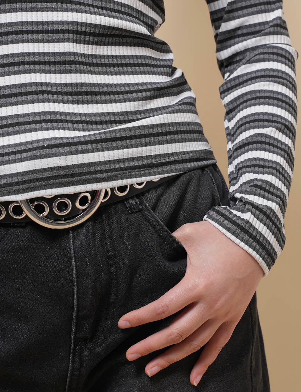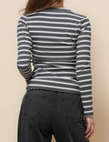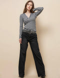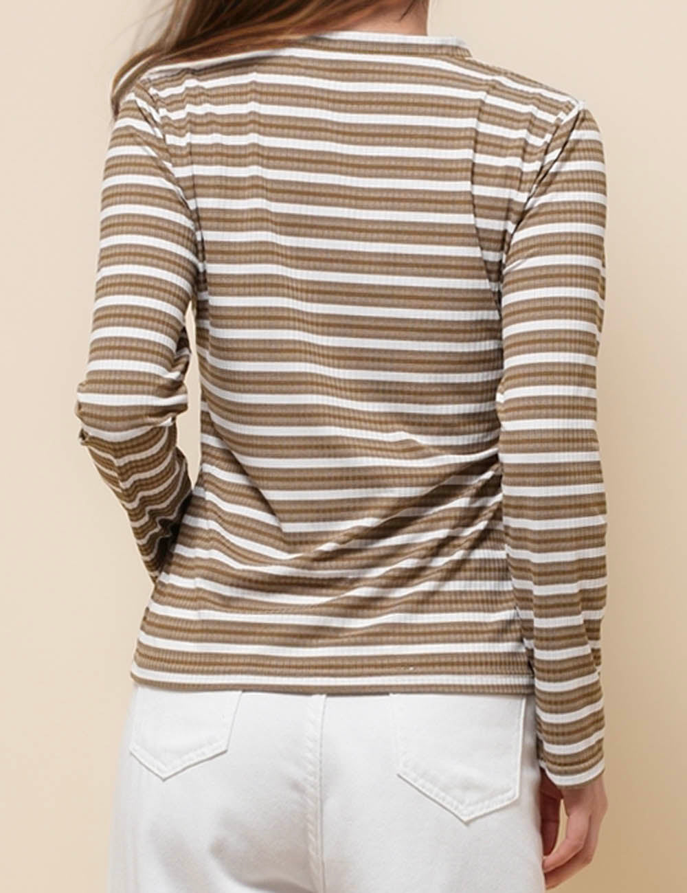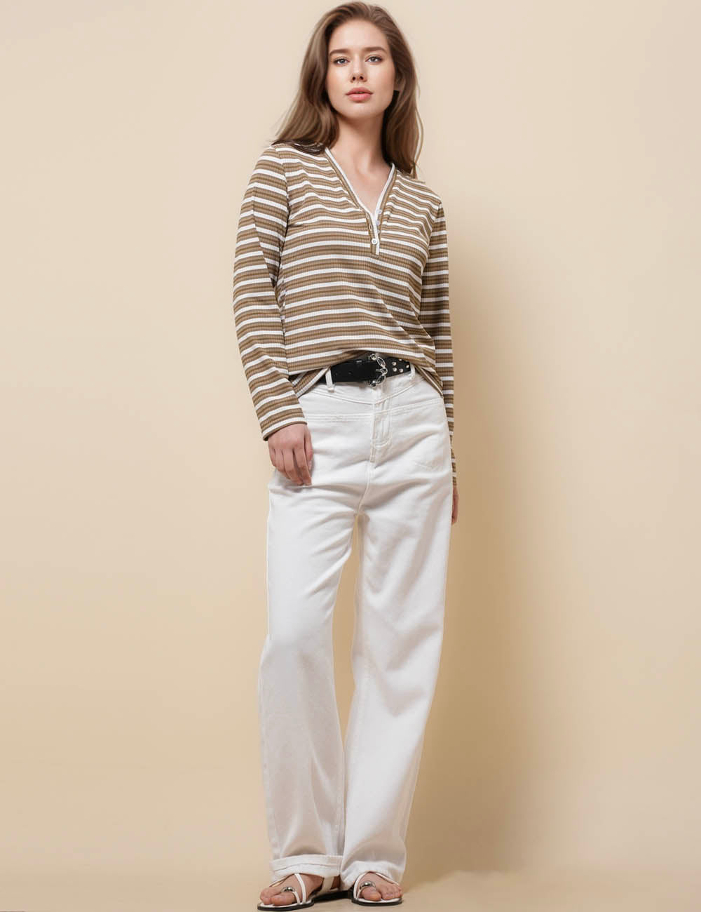 Ladies V-Neck Long Sleeves Striped Blouse SKT51294