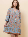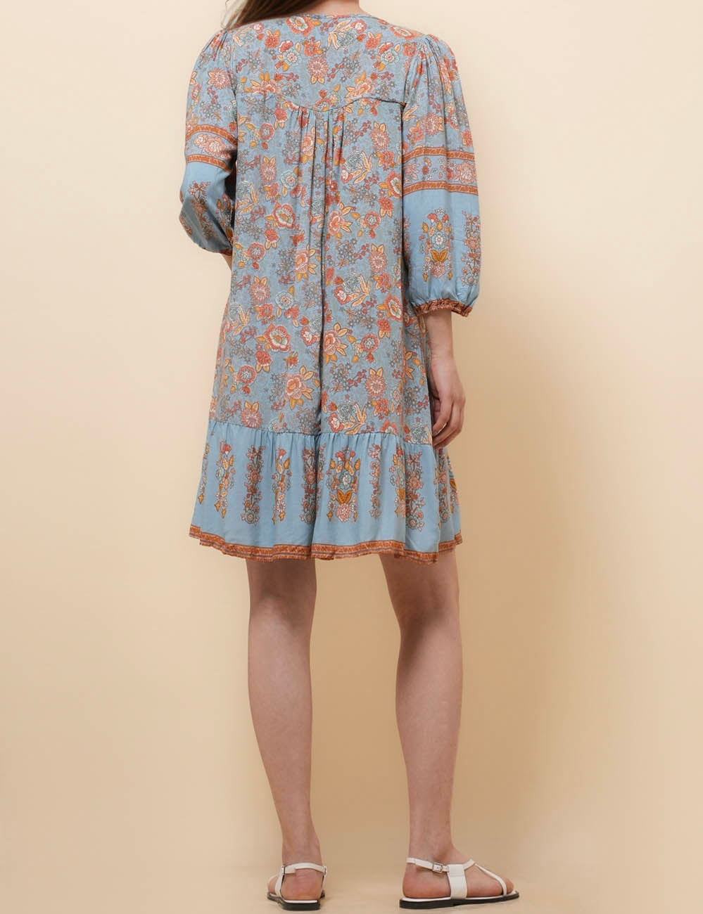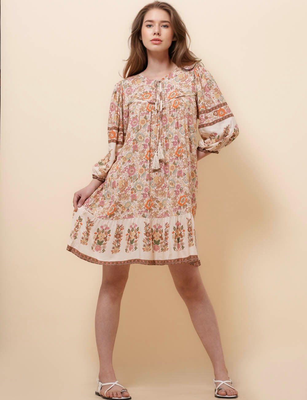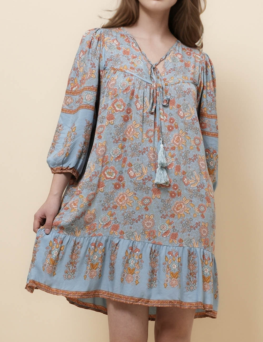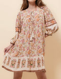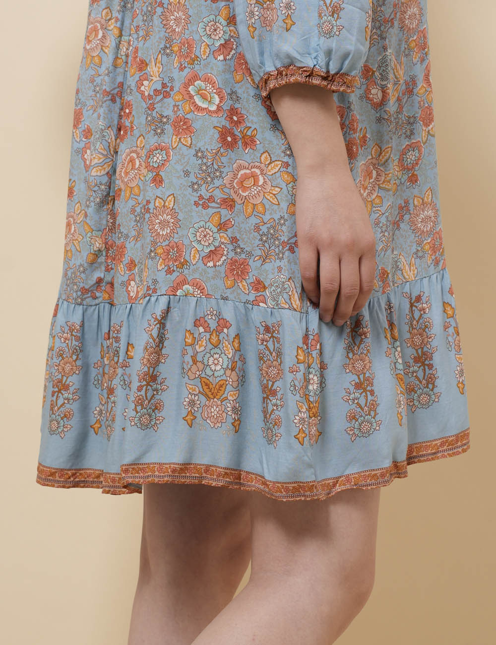 Ladies V-Neck Midi Sleeves Floral Print Mini Dress SKD51093