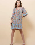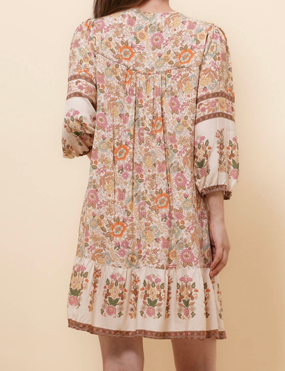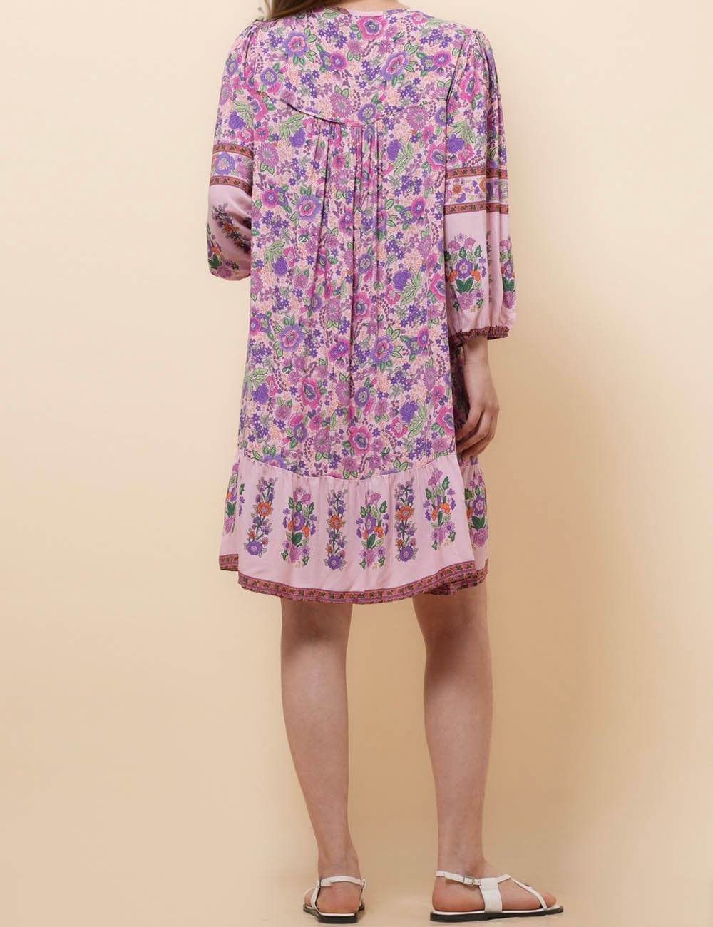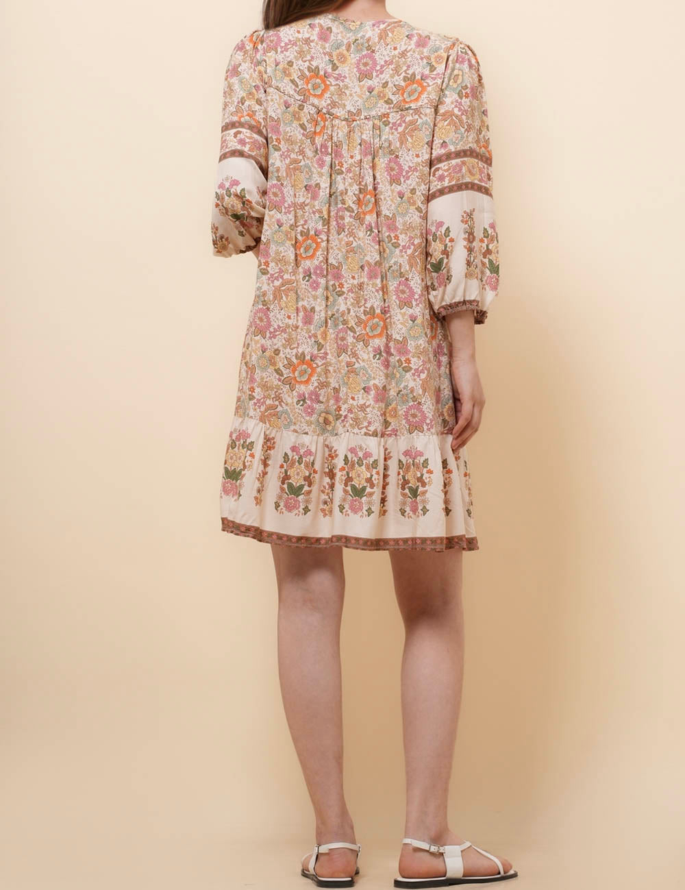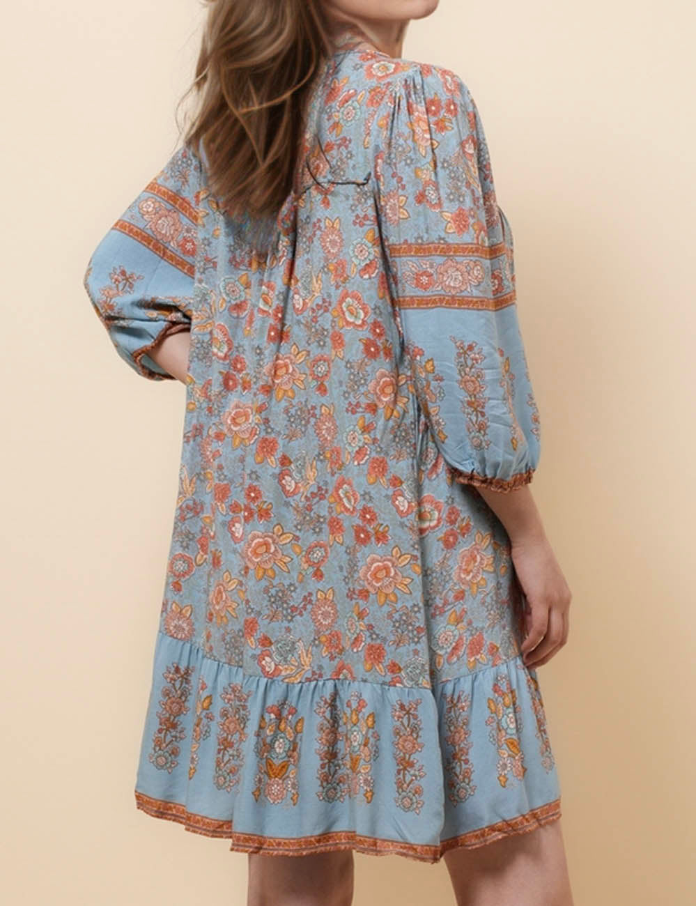Ladies V-Neck Midi Sleeves Floral Print Mini Dress SKD51093