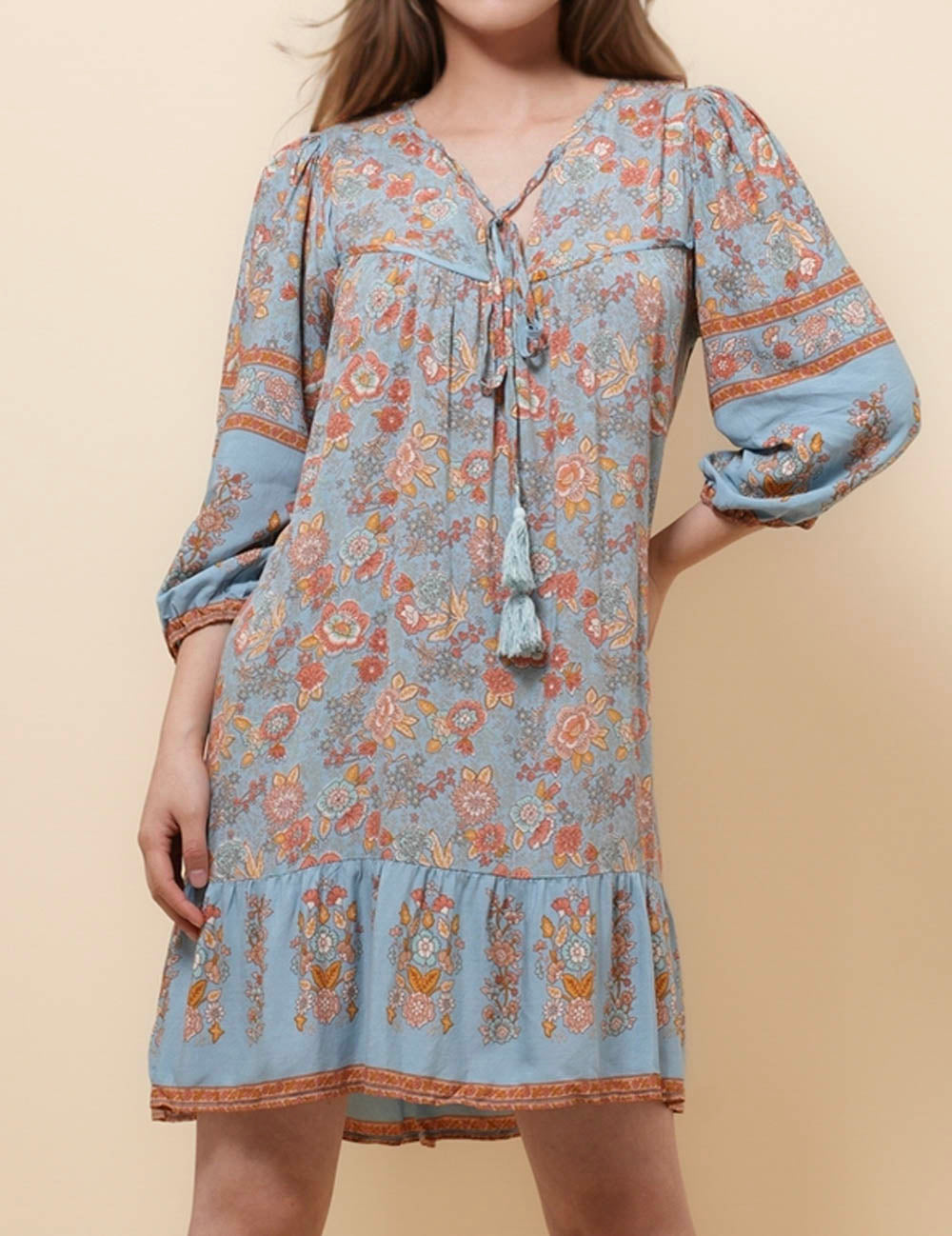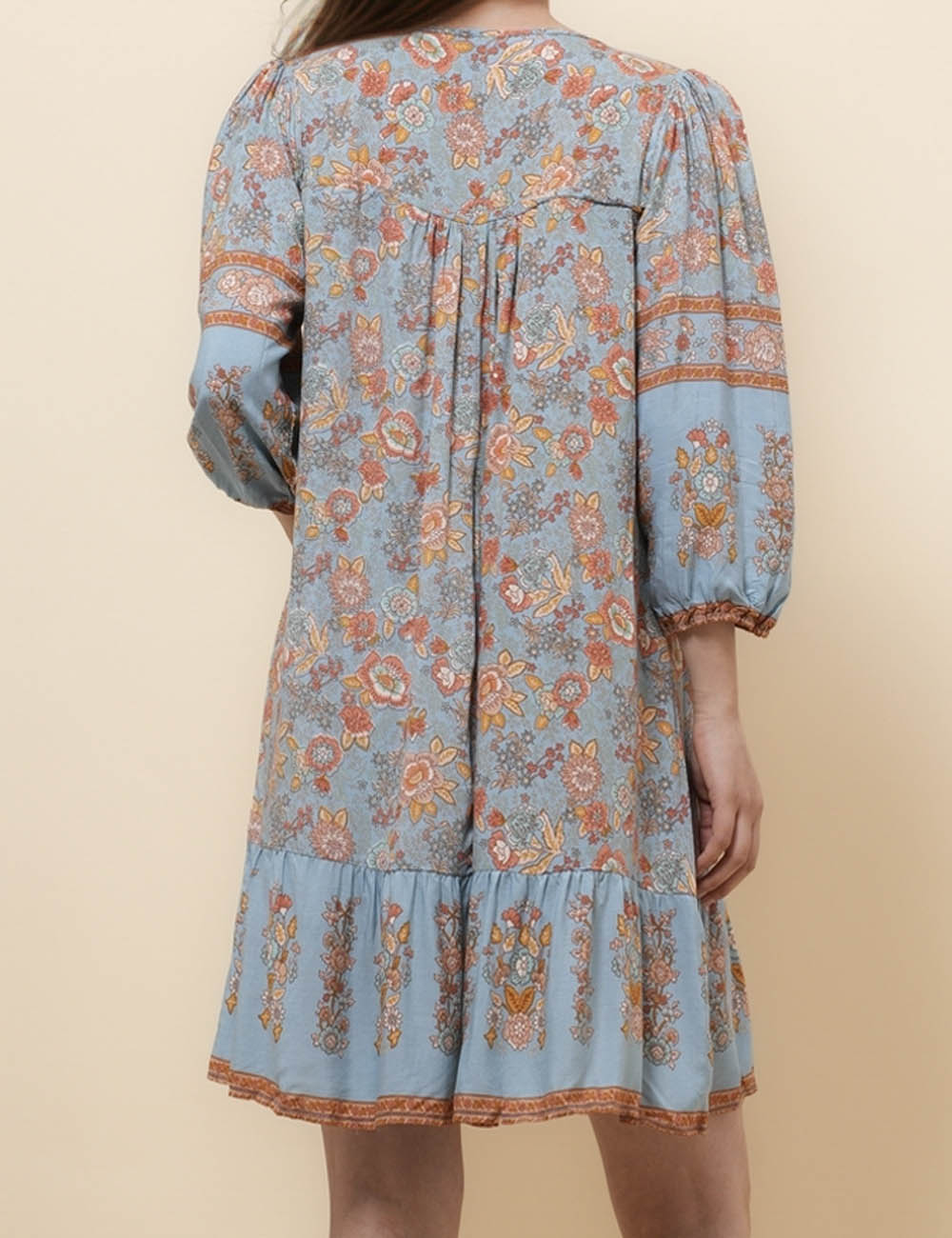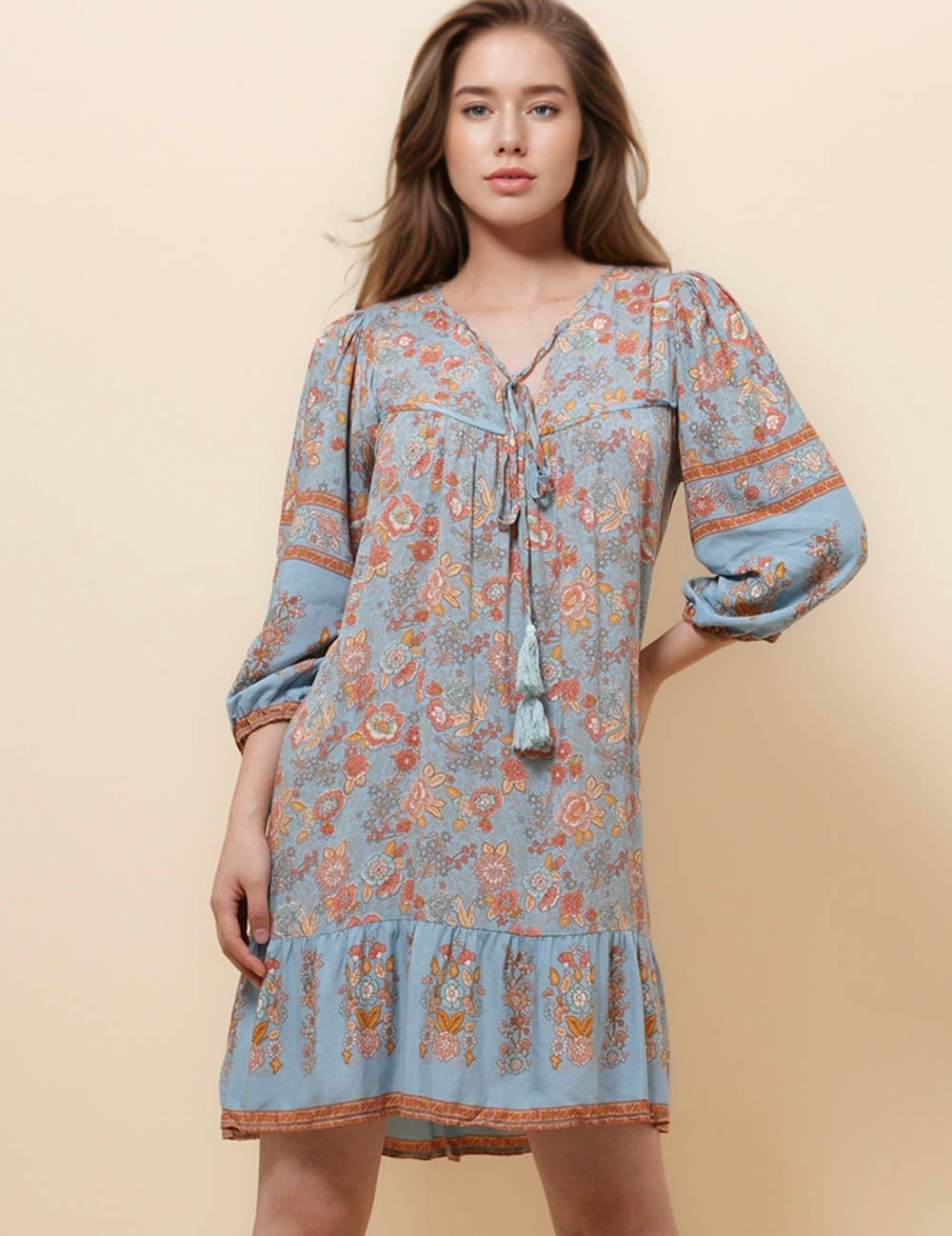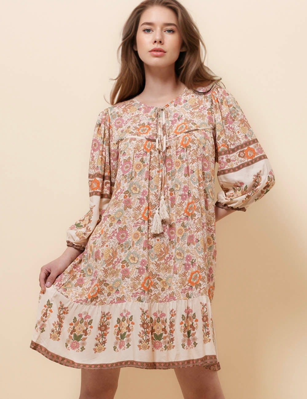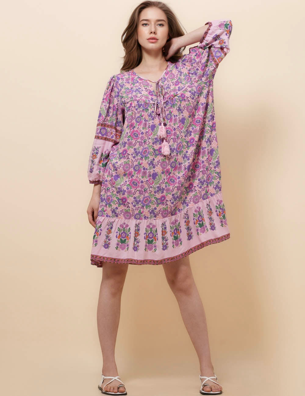 Ladies V-Neck Midi Sleeves Floral Print Mini Dress SKD51093