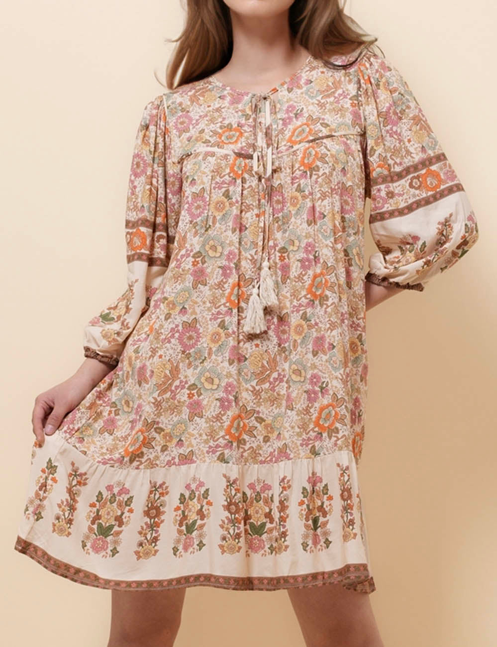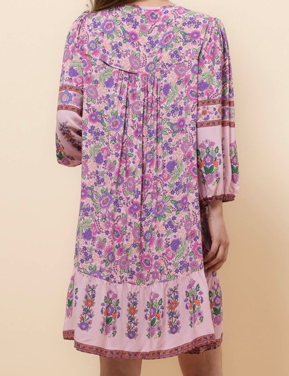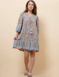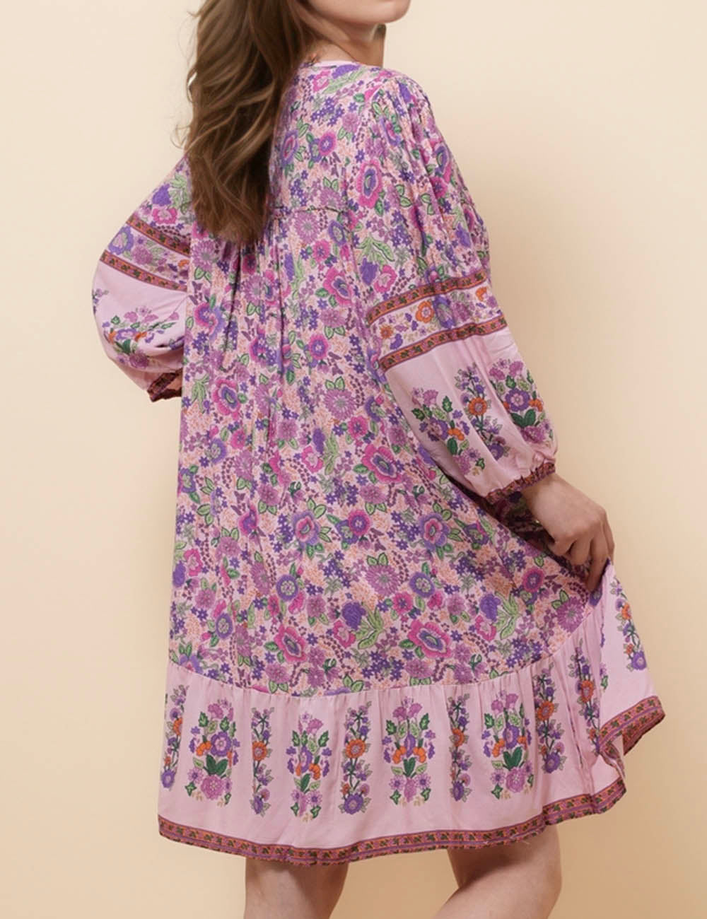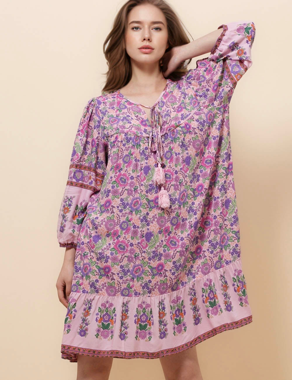 Ladies V-Neck Midi Sleeves Floral Print Mini Dress SKD51093