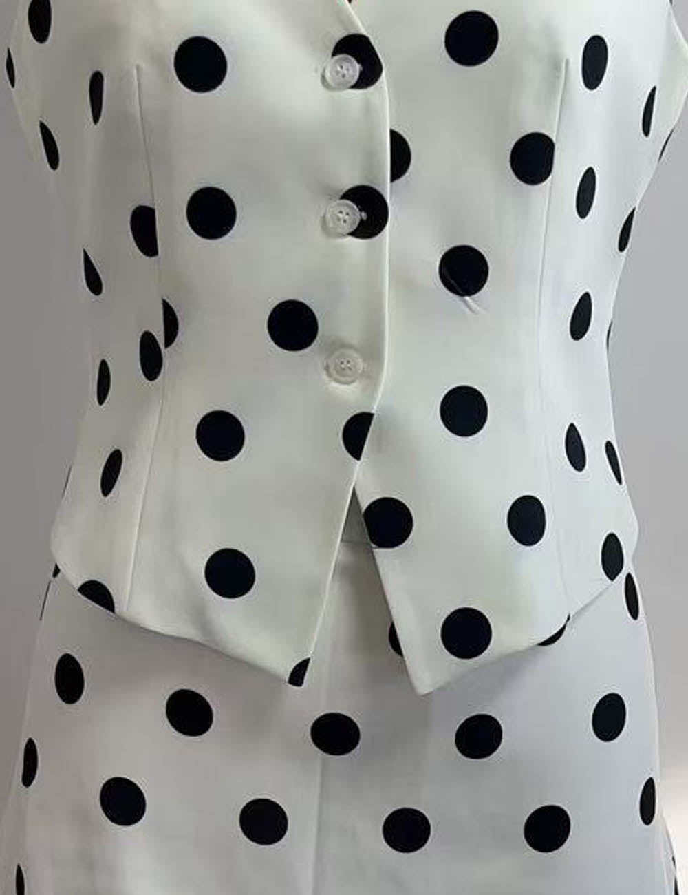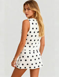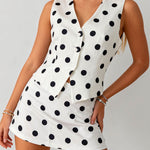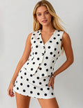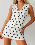 Ladies V-Neck Polka Dot Button Front Sleeveless Vest